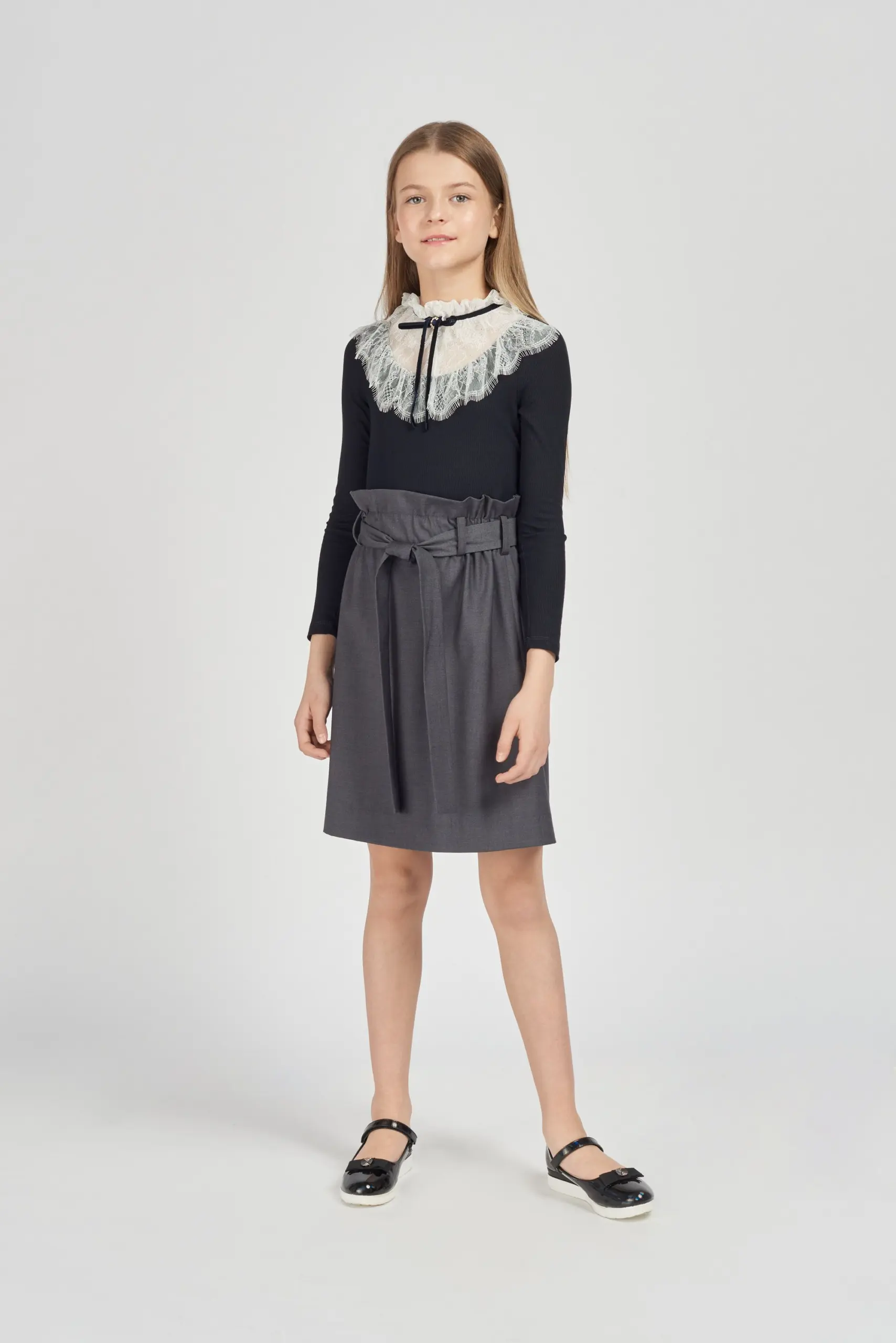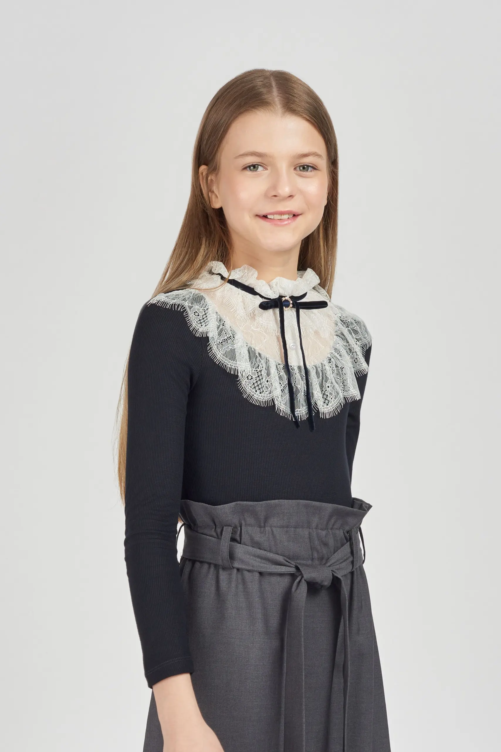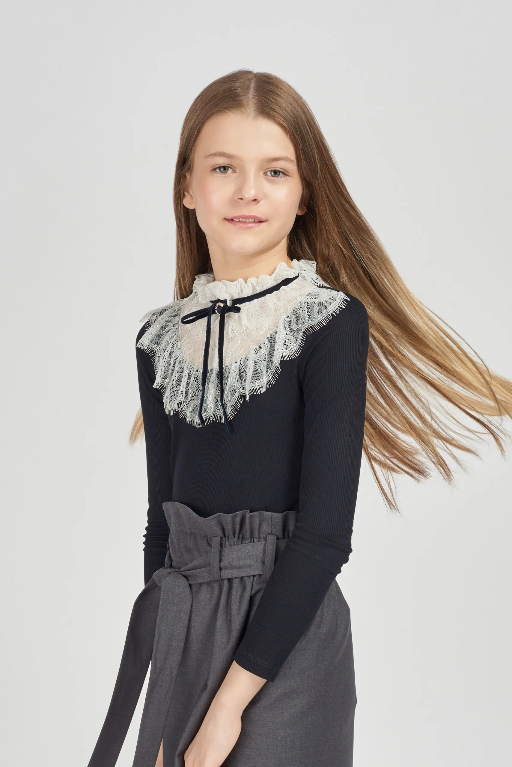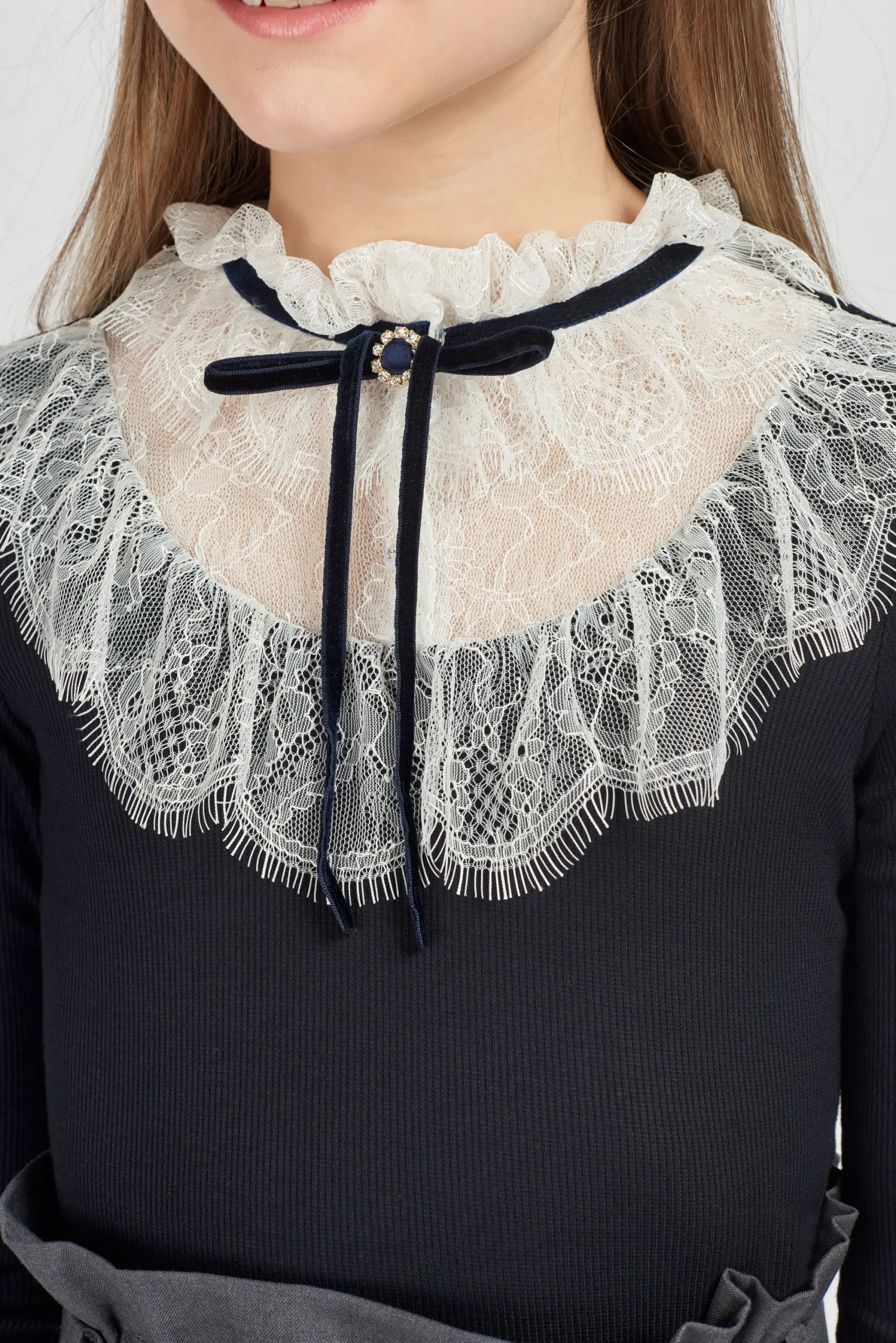 Элегантная трикотажная блузка для девочки. Подобные вещи должны присутствовать в гардеробе каждой модницы! Школьная сорочка может быть не только белой − если строгих требований нет, допустимы ... любые оттенки. Но предпочтительнее все же классические расцветки, это не будет утомлять или раздражать ребёнка. Красивая и практичная вещь. Комбинированная модель синего цвета с кружевной отделкой сочетается с различными юбками и брюками.