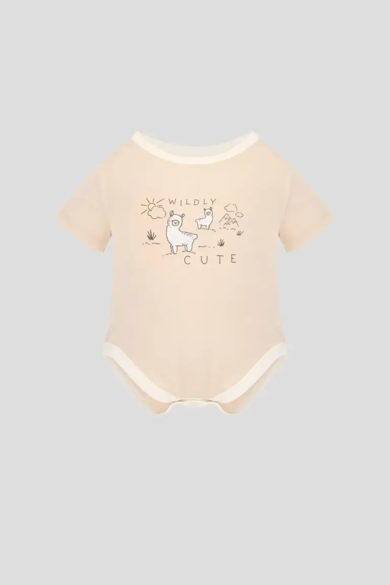 Боди из мягкого трикотажа базового цвета экрю украшено милым сюжетным принтом с изображением милых альпак. Модель с круглым вырезом горловины и короткими рукавами. Боди комфортно для ... малыша облегает тело, не сковывает движения. Для удобства надевания между ножек предусмотрена застежка на кнопки. На плечах такая же застежка. Натуральный хлопок пропускает воздух, что обеспечивает ребенку отличную терморегуляцию.