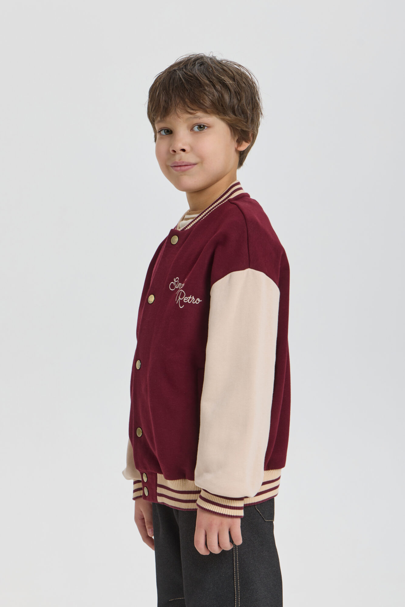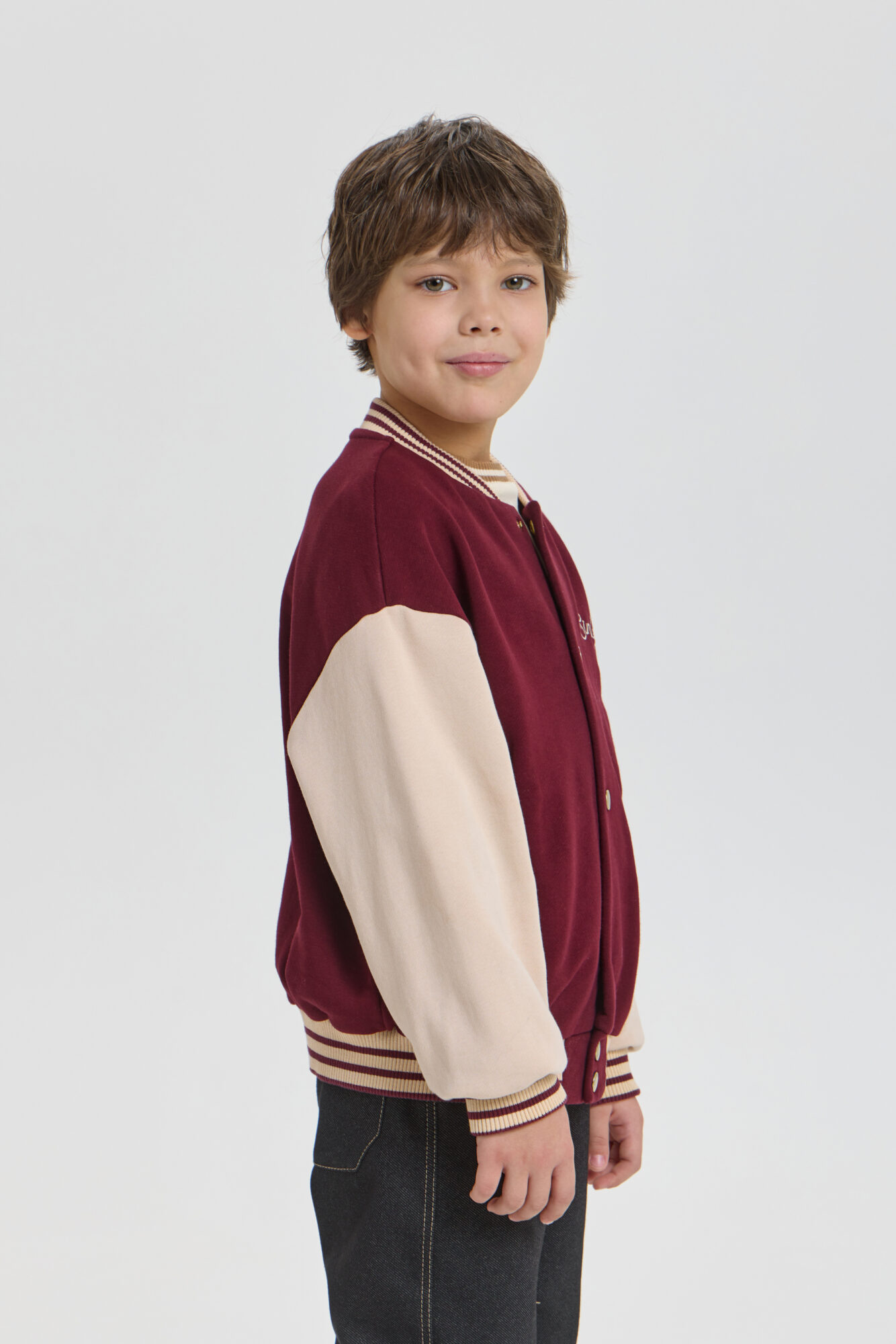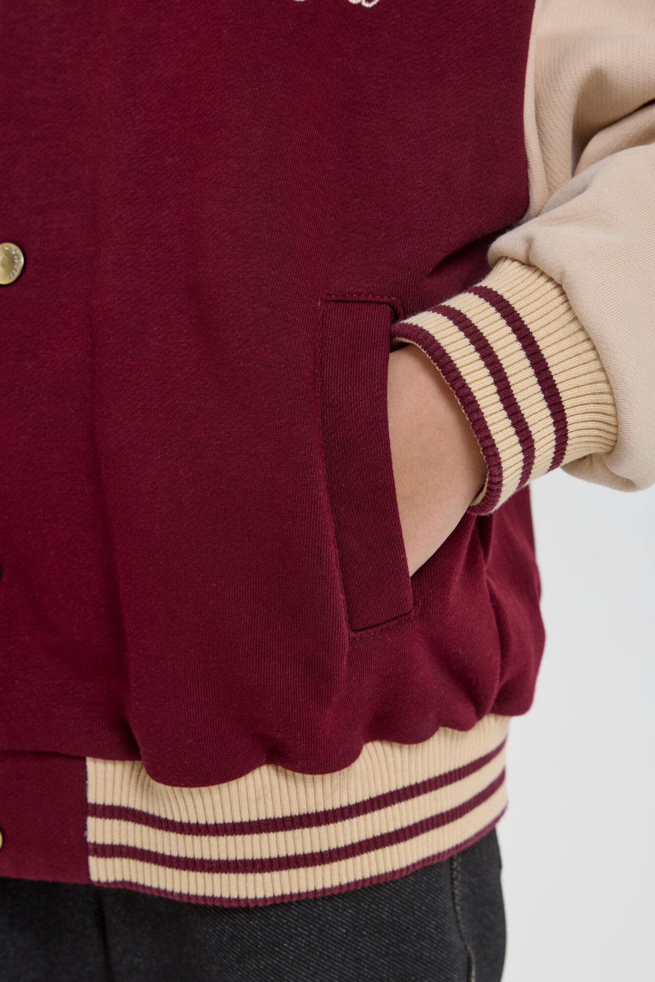 Бомбер, сочетающий в себе актуальные тренды – превосходное решение для юных ценителей стиля. Модель свободного кроя изготовлена из высококачественных смесовых материалов с большим содержанием хлопка, гарантирует уют ... и защиту в прохладную погоду. Оригинальный внешний вид и эксклюзивная вышивка помогут ребенку выразить свою уникальность. Аккуратные кнопки и практичные карманы делают эту модель не только стильной, но и максимально удобной. Воротник-стойка и эластичные резинки на поясе и рукавах обеспечивают оптимальную посадку по фигуре. Благодаря модной бежево-бордовой палитре, бомбер легко сочетается с различной одеждой, открывая возможности для создания эффектных и неповторимых ансамблей.