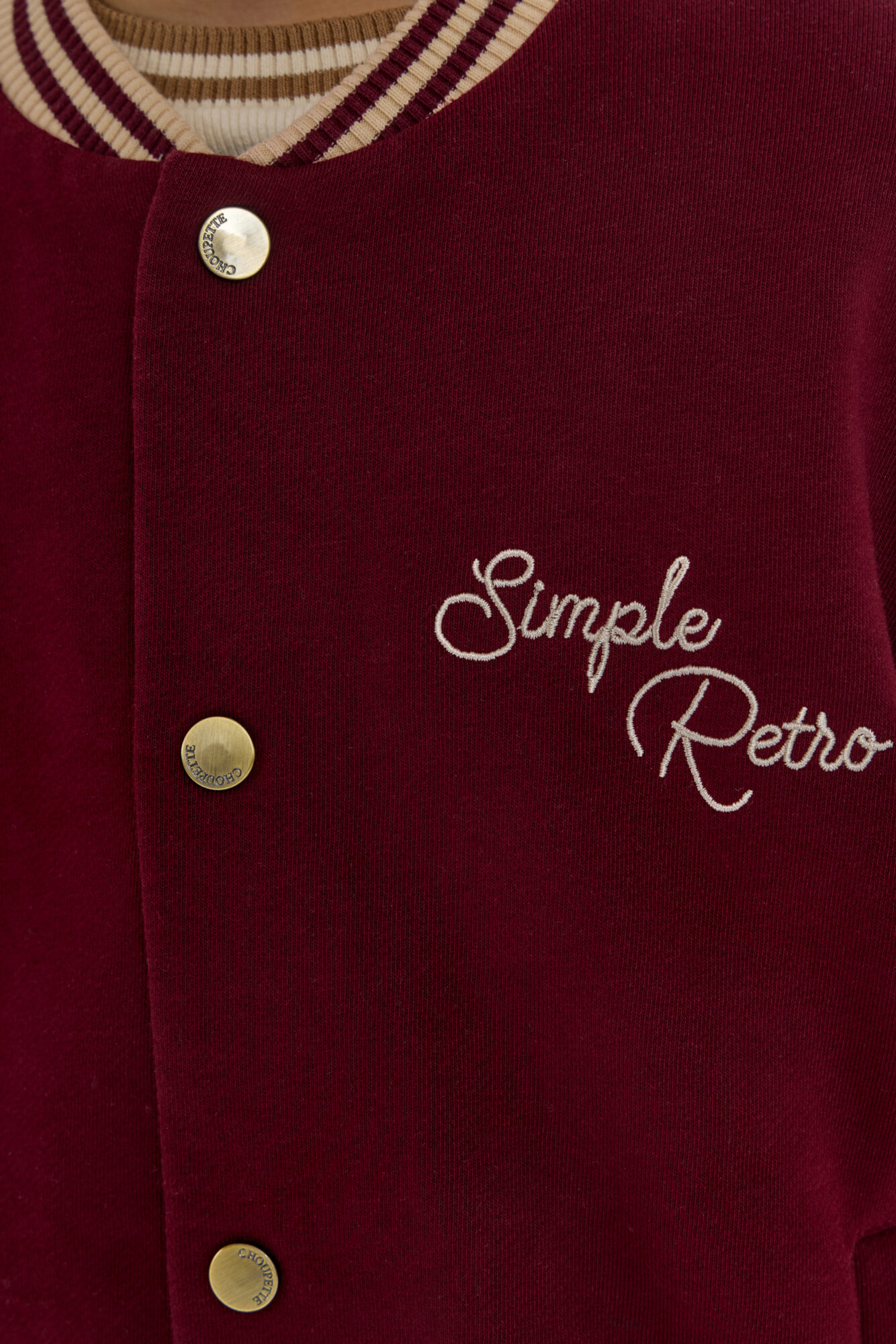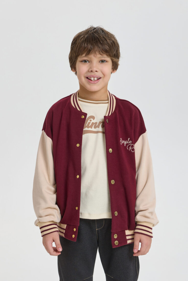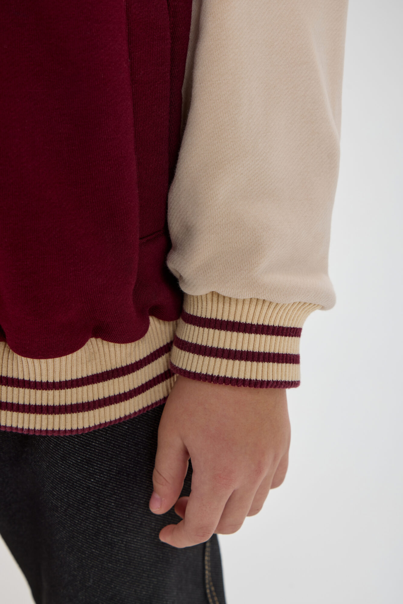 Бомбер, сочетающий в себе актуальные тренды – превосходное решение для юных ценителей стиля. Модель свободного кроя изготовлена из высококачественных смесовых материалов с большим содержанием хлопка, гарантирует уют ... и защиту в прохладную погоду. Оригинальный внешний вид и эксклюзивная вышивка помогут ребенку выразить свою уникальность. Аккуратные кнопки и практичные карманы делают эту модель не только стильной, но и максимально удобной. Воротник-стойка и эластичные резинки на поясе и рукавах обеспечивают оптимальную посадку по фигуре. Благодаря модной бежево-бордовой палитре, бомбер легко сочетается с различной одеждой, открывая возможности для создания эффектных и неповторимых ансамблей.