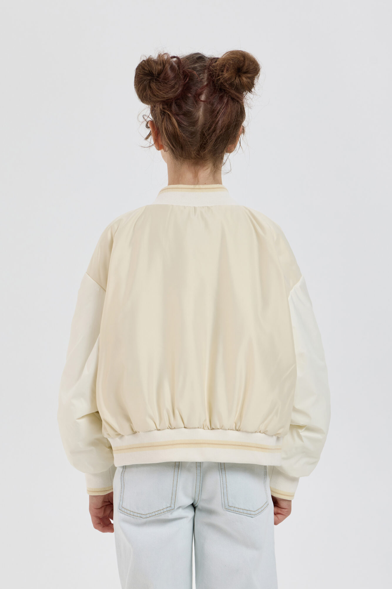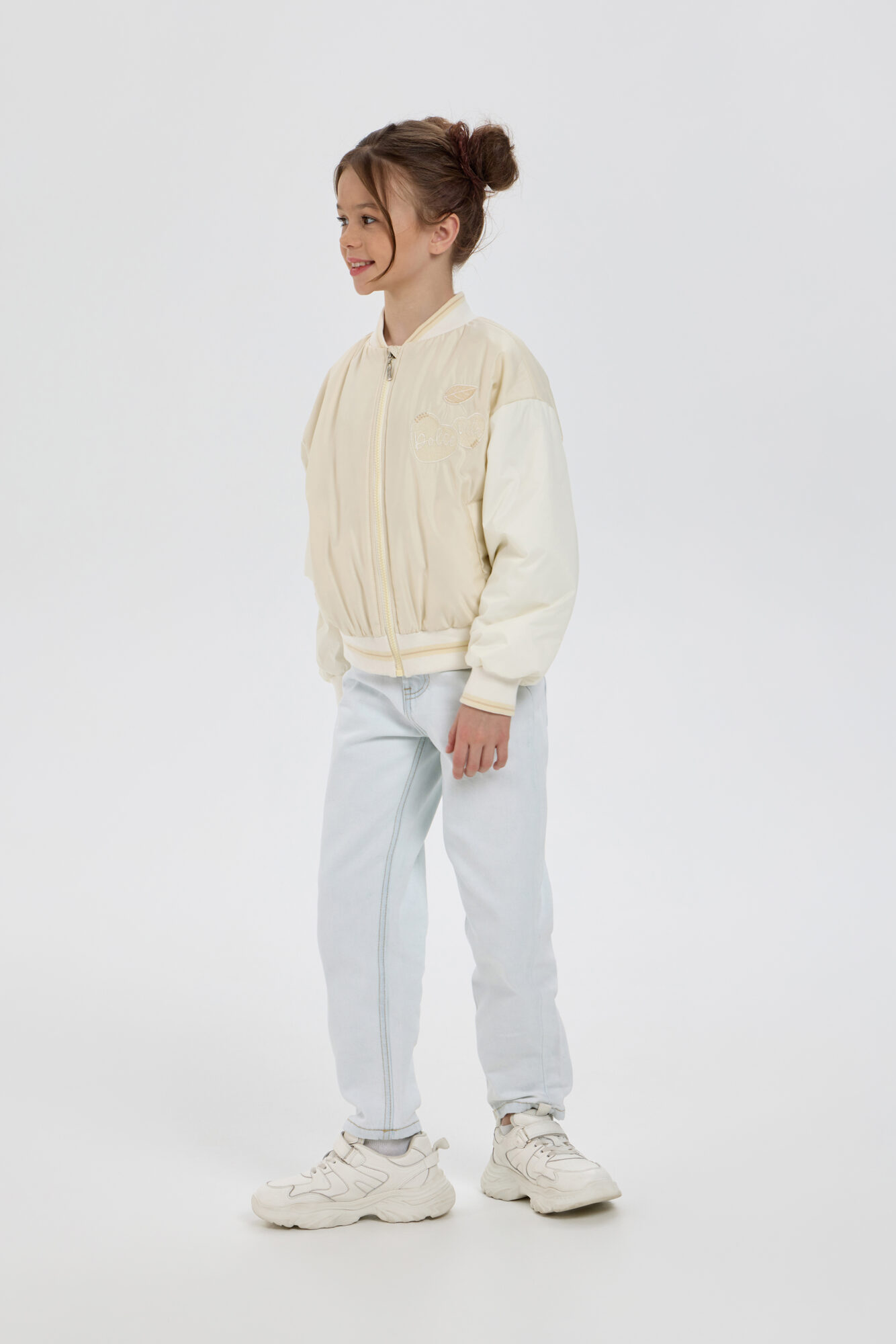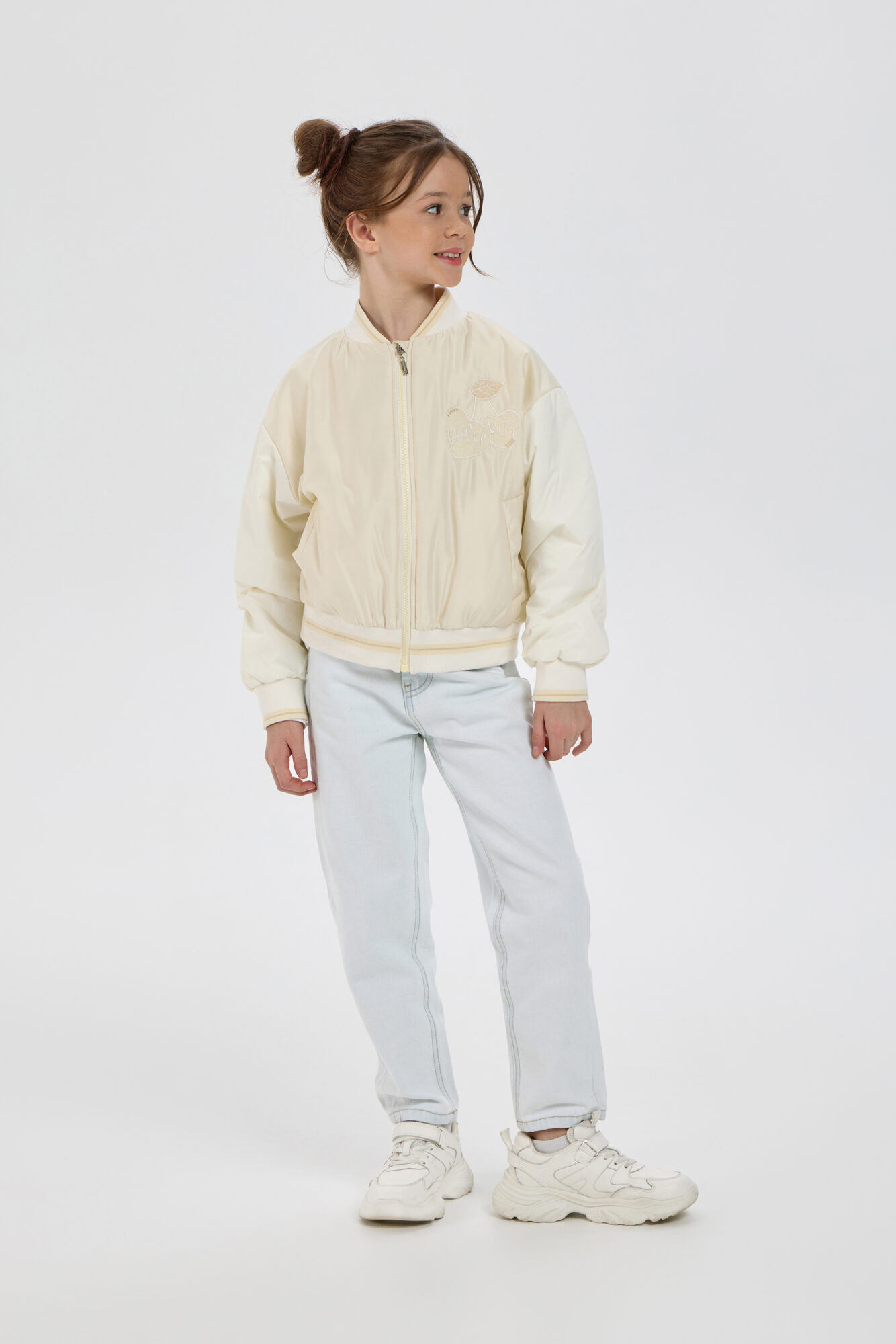 Стильный бомбер для девочек – это универсальное решение для создания современных аутфитов. Трендовый фасон оверсайз со спущенной плечевой линией дает возможность комбинировать эту модель с разнообразной ... одеждой. Невысокий ворот, свободный удлиненный рукав, эластичные манжеты и резинка по низу куртки защищают от прохлады и ветра. Боковые карманы с прорезями добавляют практичности и позволяют всегда держать нужные мелочи под рукой. Застежка-молния делает бомбер еще более удобным и функциональным. Объемная вышивка на передней части куртки формирует интересный акцент и подчеркивает уникальность образа. Контрастные полосы на воротнике, рукавах и нижней части делают этот бомбер ультрамодным в текущем сезоне. В качестве утеплителя используется полиэстер, который обеспечивает тепло в прохладную погоду.