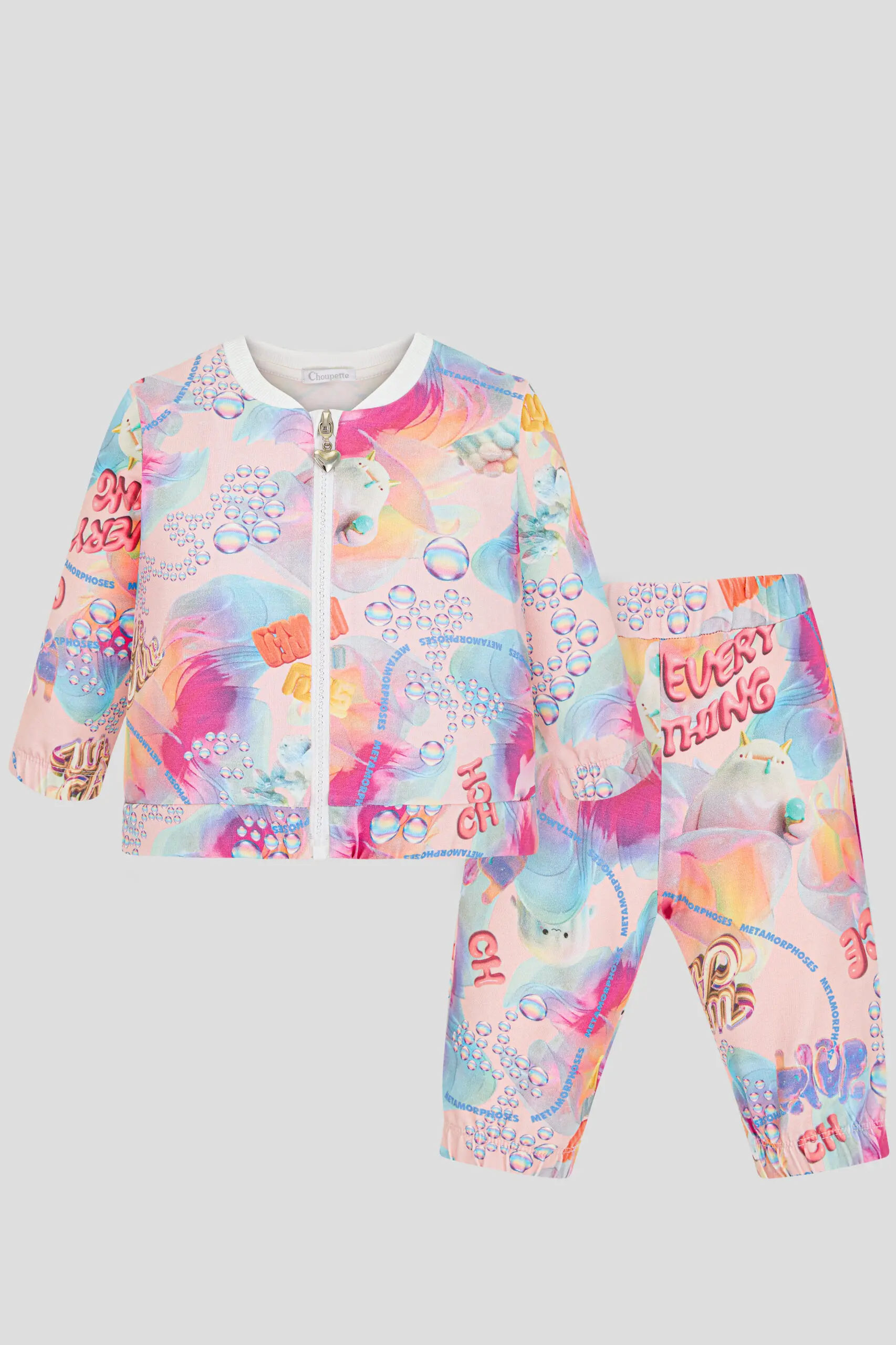 Костюм, состоящий из бомбера и брюк, представляет собой стильный и удобный комплект для ежедневного использования. Бомбер выполнен из мягкого трикотажа и украшен фирменным принтом. Он имеет ... удобную застежку на молнию.