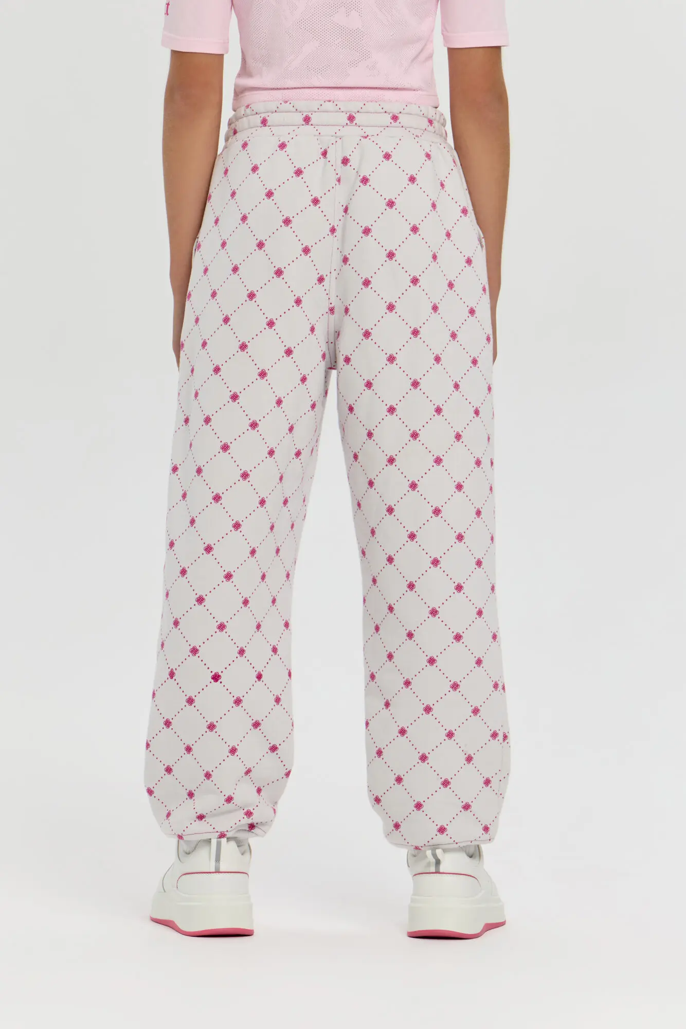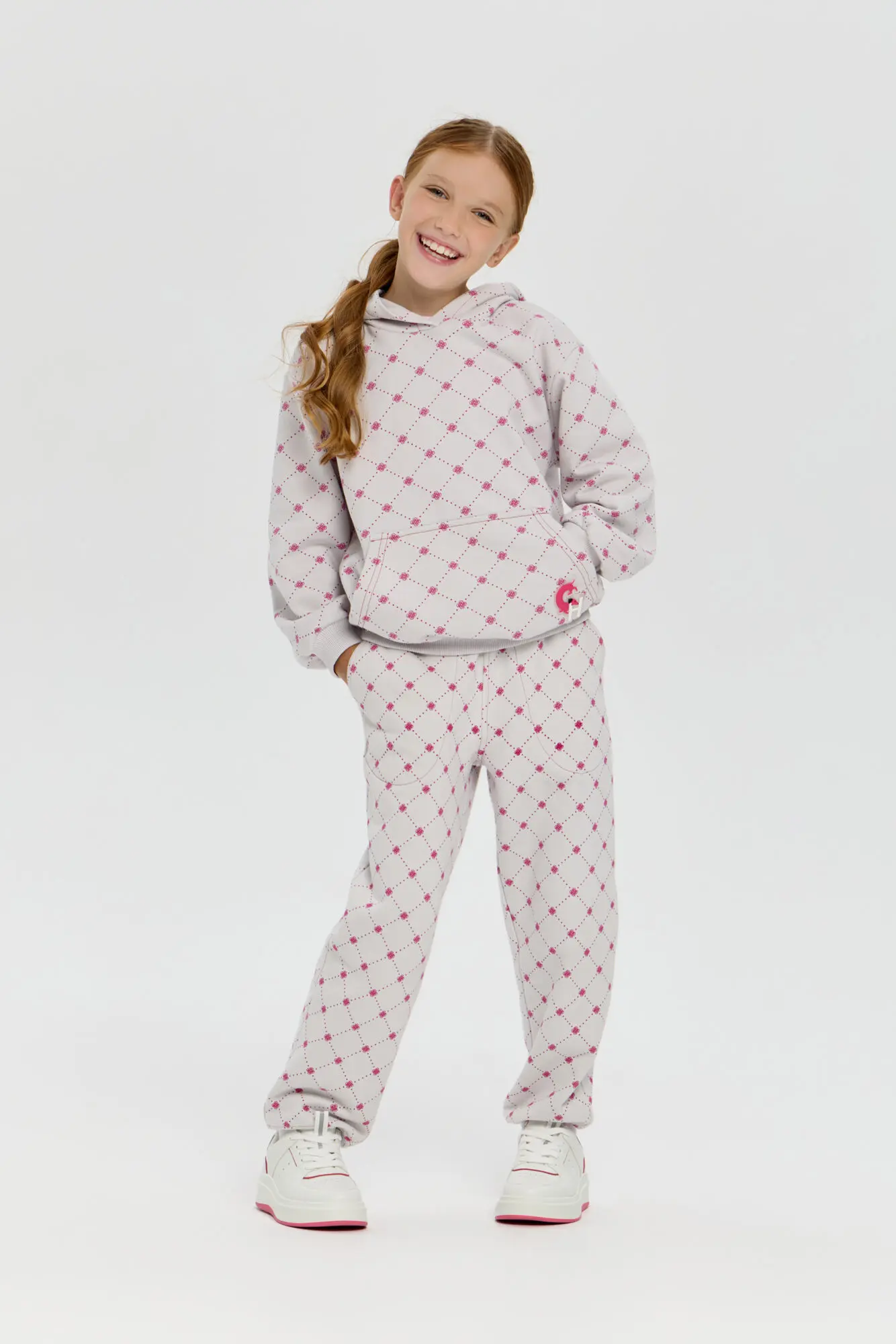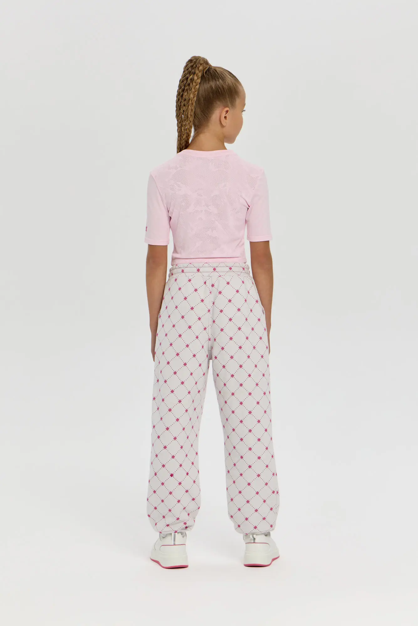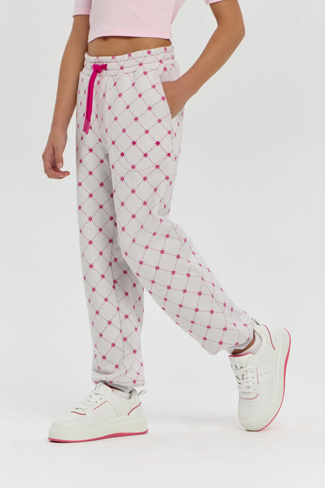 Спортивные брюки с оригинальным графическим рисунком станут отличным дополнением к гардеробу девочки. Нежная хлопковая ткань футер обеспечивает ощущение уюта, легкости и долговечности. Прямой силуэт и эластичная ... резинка с регулируемым шнурком гарантируют идеальную посадку по фигуре ребёнка. В практичные боковые карманы можно без труда поместить мобильный телефон, ключи или прочие небольшие вещи. Запоминающийся брендовый принт добавляет актуальности и отлично гармонирует с однотонными толстовками и куртками-бомберами.