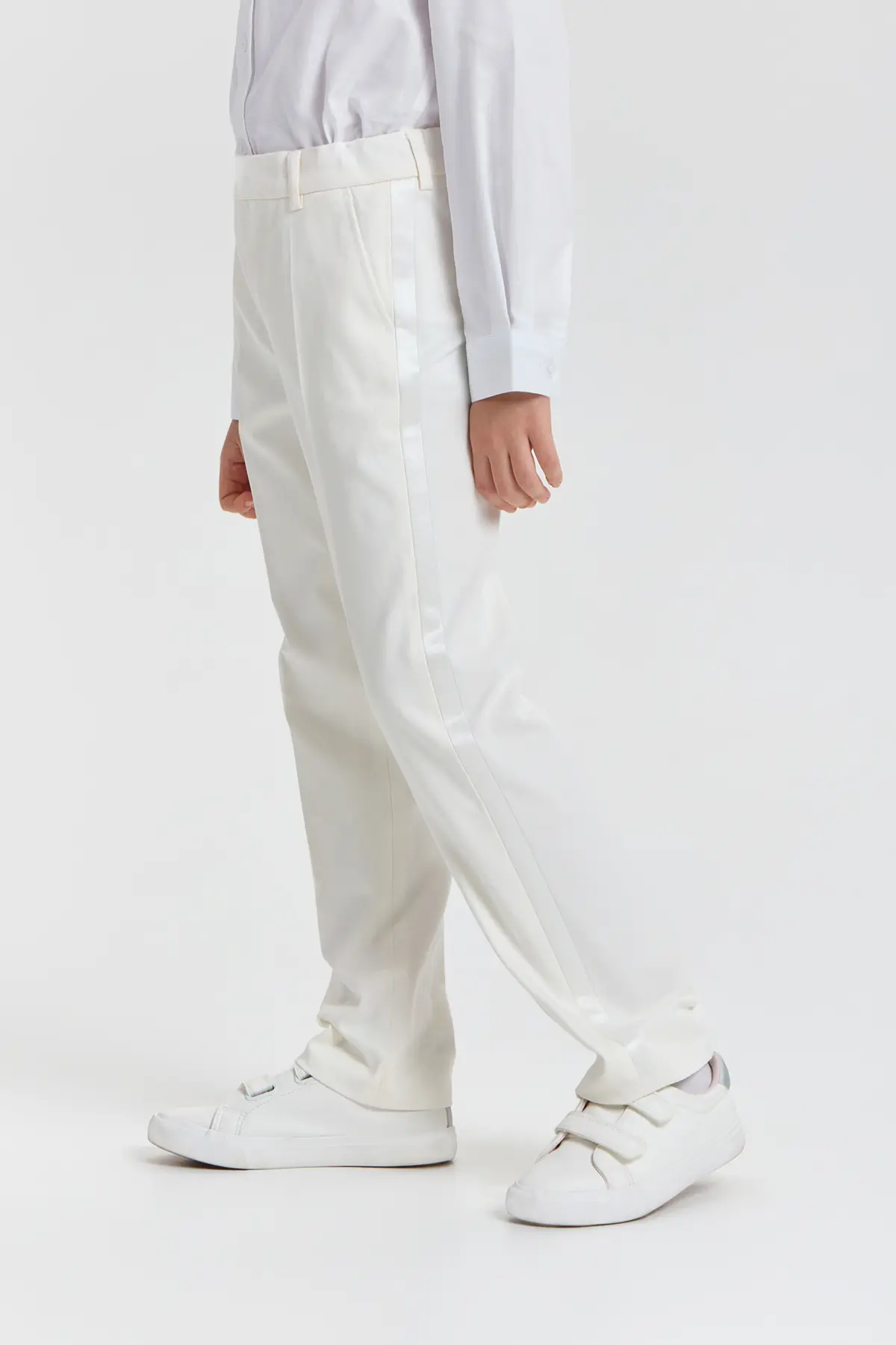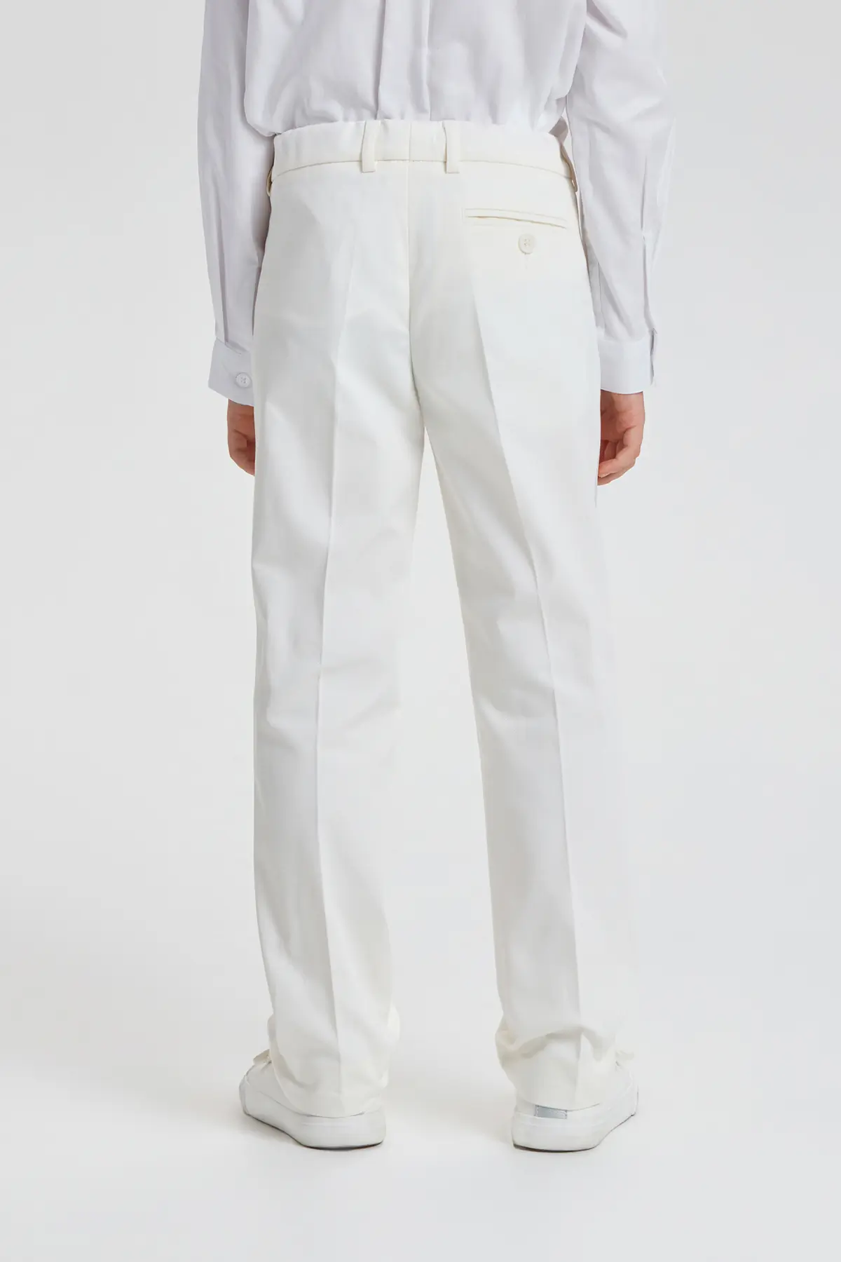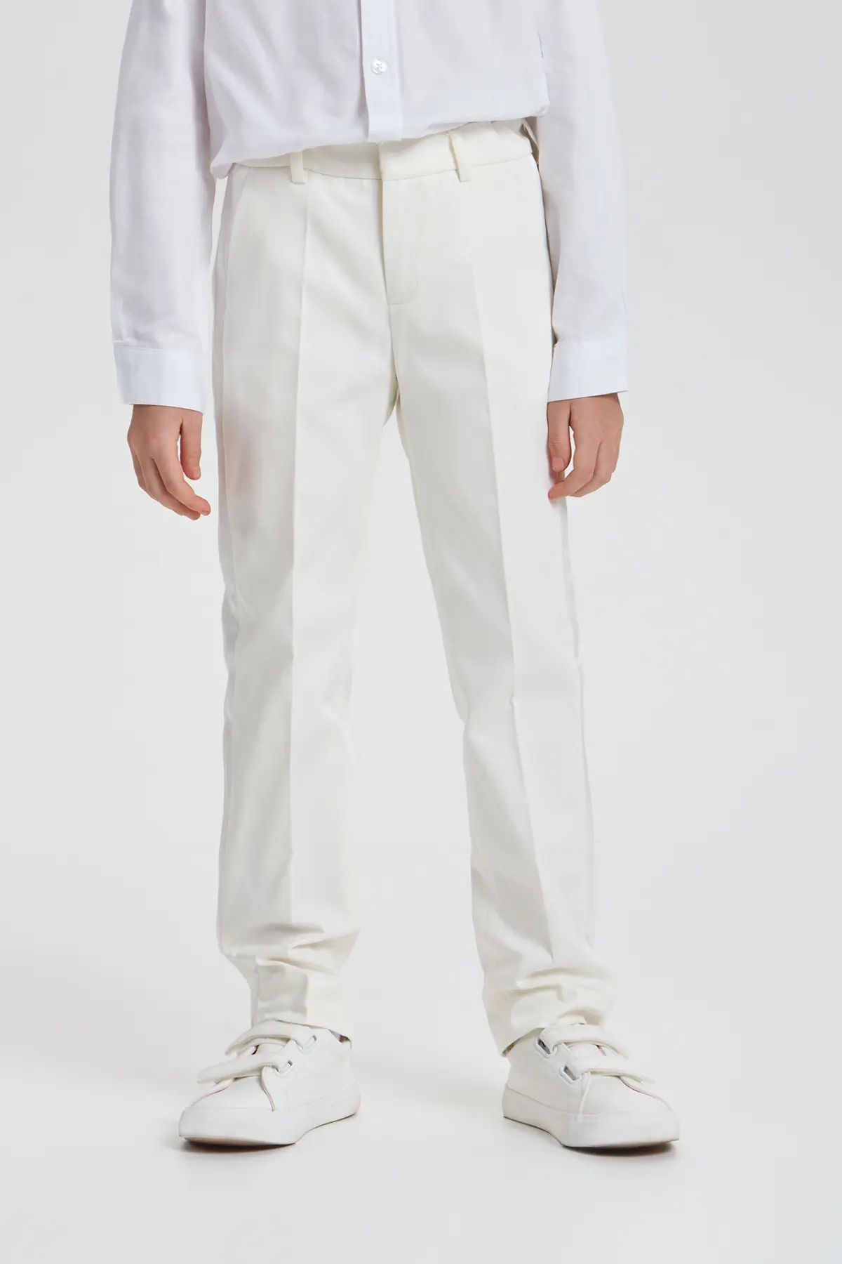 Классические брюки в светлом молочном оттенке — универсальная основа для элегантного гардероба. Модель выполнена в аккуратном прямом крое, который обеспечивает комфортную посадку и свободу движений, сохраняя ... при этом опрятный и собранный вид. Чёткие стрелки визуально вытягивают силуэт, а пояс со шлёвками и удобная застёжка делают посадку надёжной и практичной. Лаконичный дизайн позволяет легко сочетать брюки как с рубашками и пиджаками для торжественных случаев, так и с более повседневными элементами гардероба.