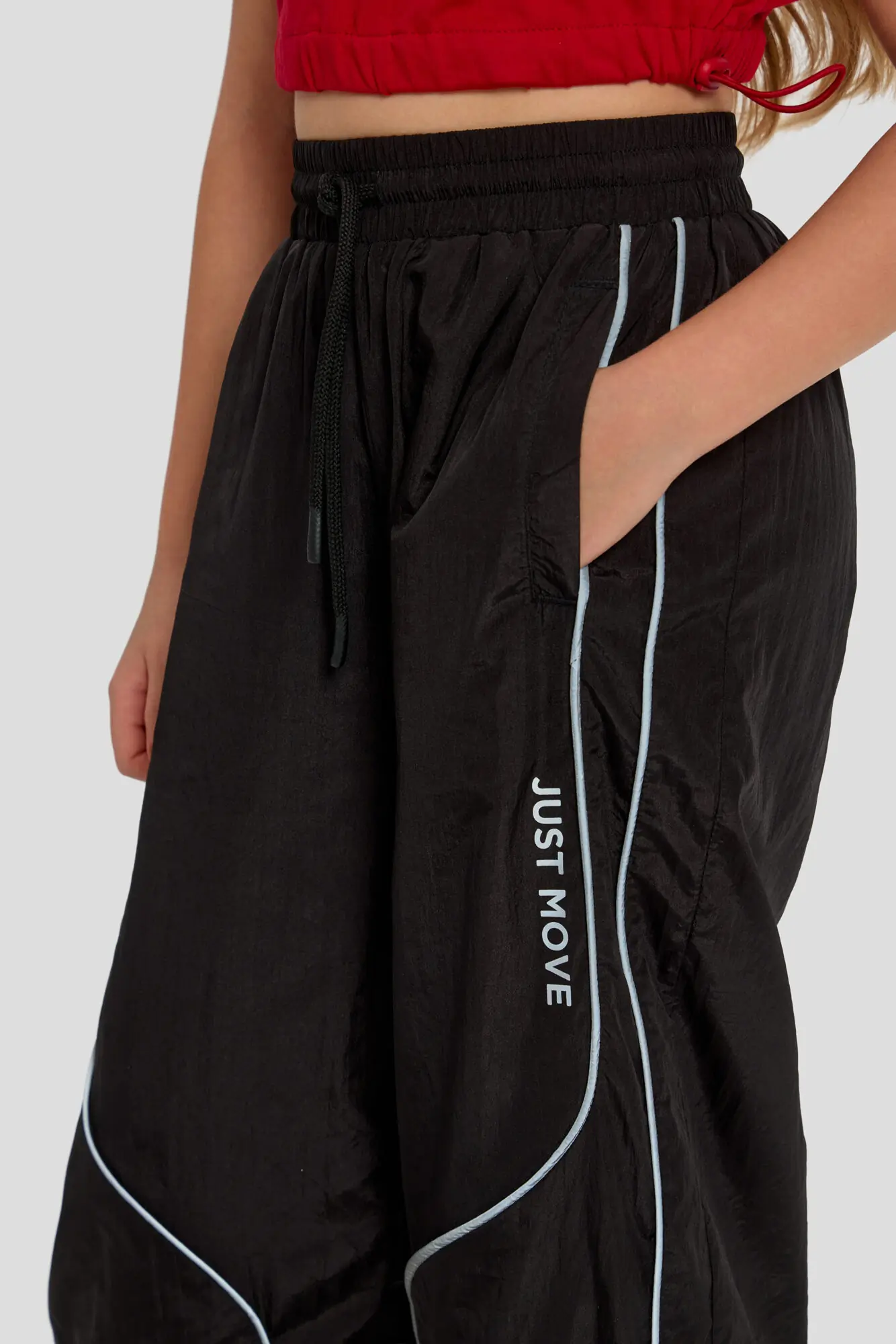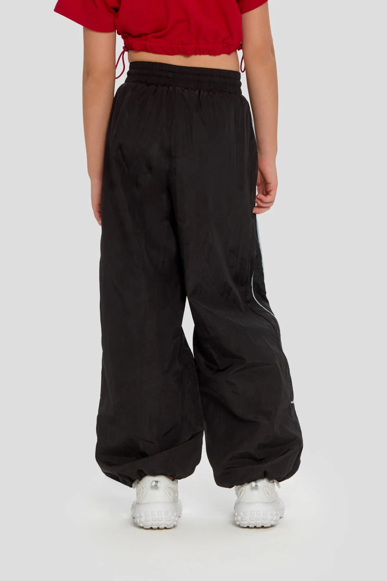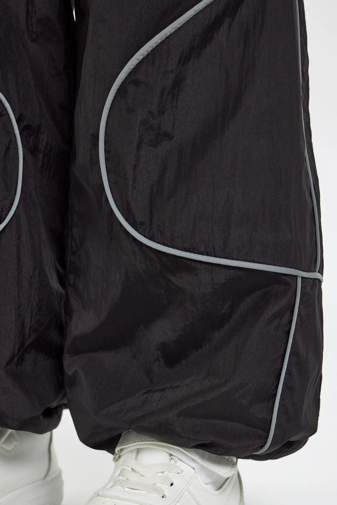 Спортивные брюки-джоггеры от коллекции TODES x Choupette для детей, украшенные светоотражающими кантами. Модель свободного кроя. Пояс на эластичной резинке дополнен кулиской. Аналогичная кулиска располагается по низу ... брючин, что позволяет регулировать посадку. Функциональность модели поддерживают карманы, вшитые в боковые швы. Стилистику завершает светоотражающая наклейка с надписью JUST MOVE, способствующая созданию яркого сценического образа. Данная модель оптимально подходит для танцевальных баттлов, репетиций и выступлений. А также для активных тренировок и повседневного использования. Светящиеся элементы делают их универсальными для формирования как уличного, так и сценического лука. Идеальный выбор для кэжуал-образов и выходов на танцевальные соревнования. Рекомендуются для направлений: стрит, хип-хоп, контемпорари.