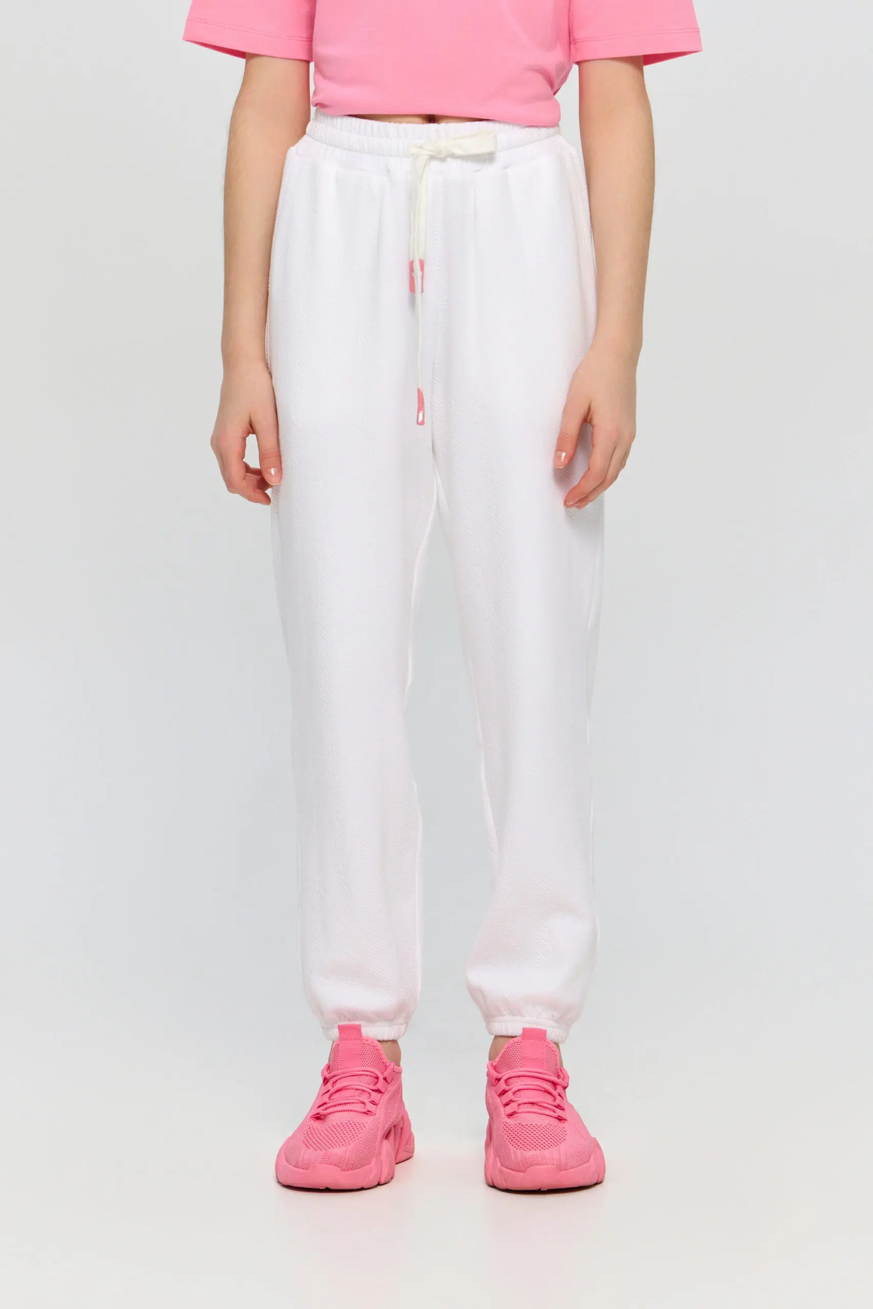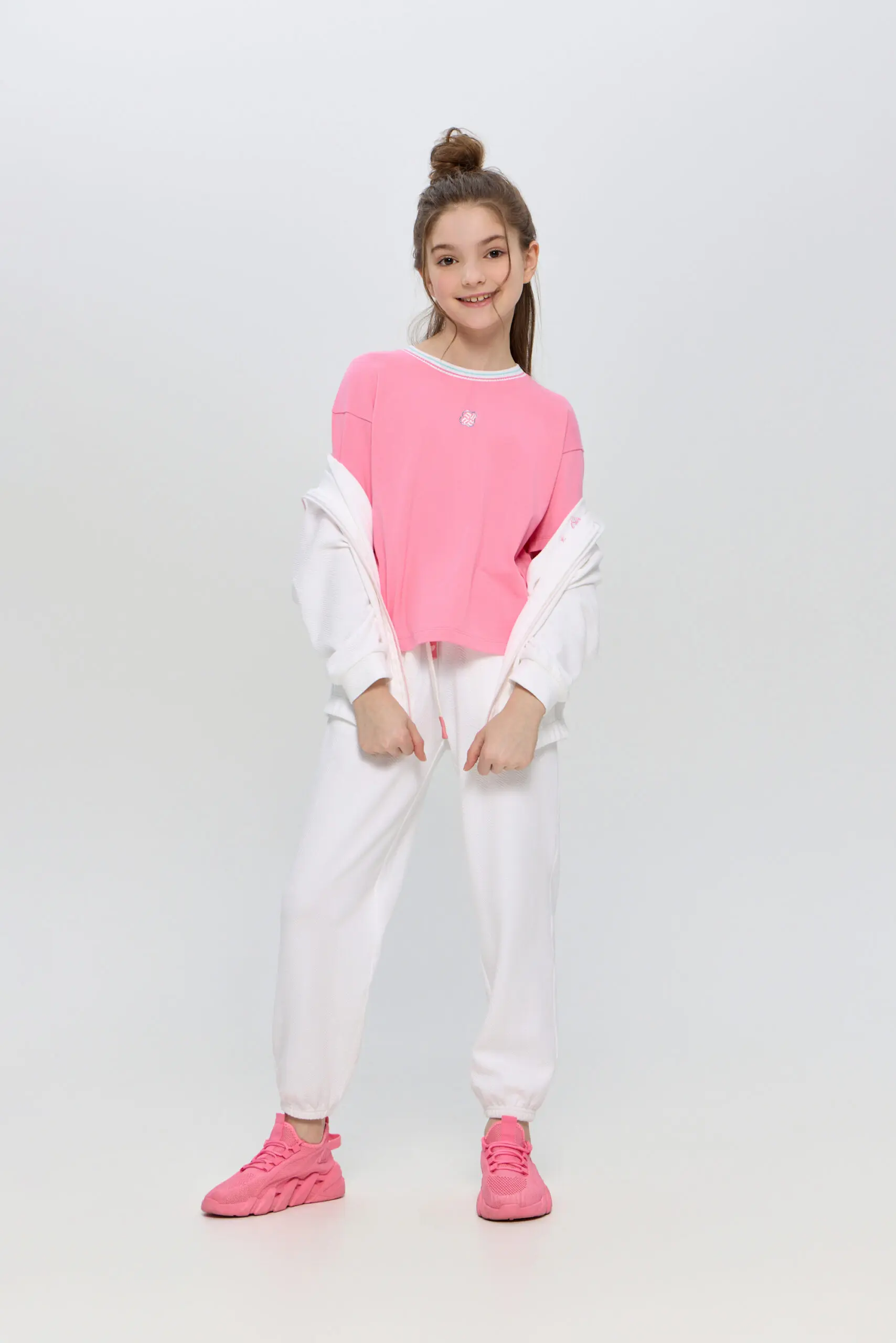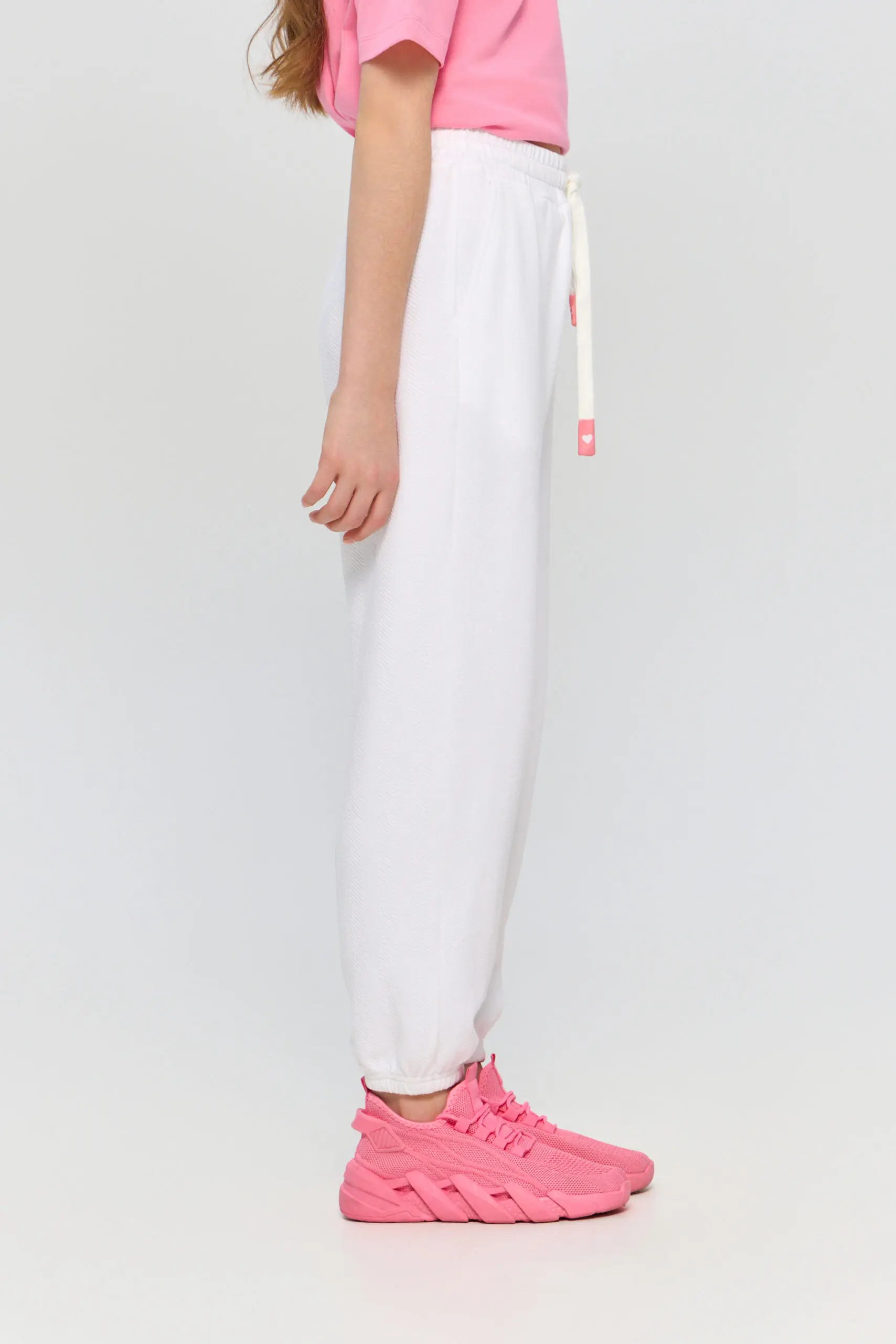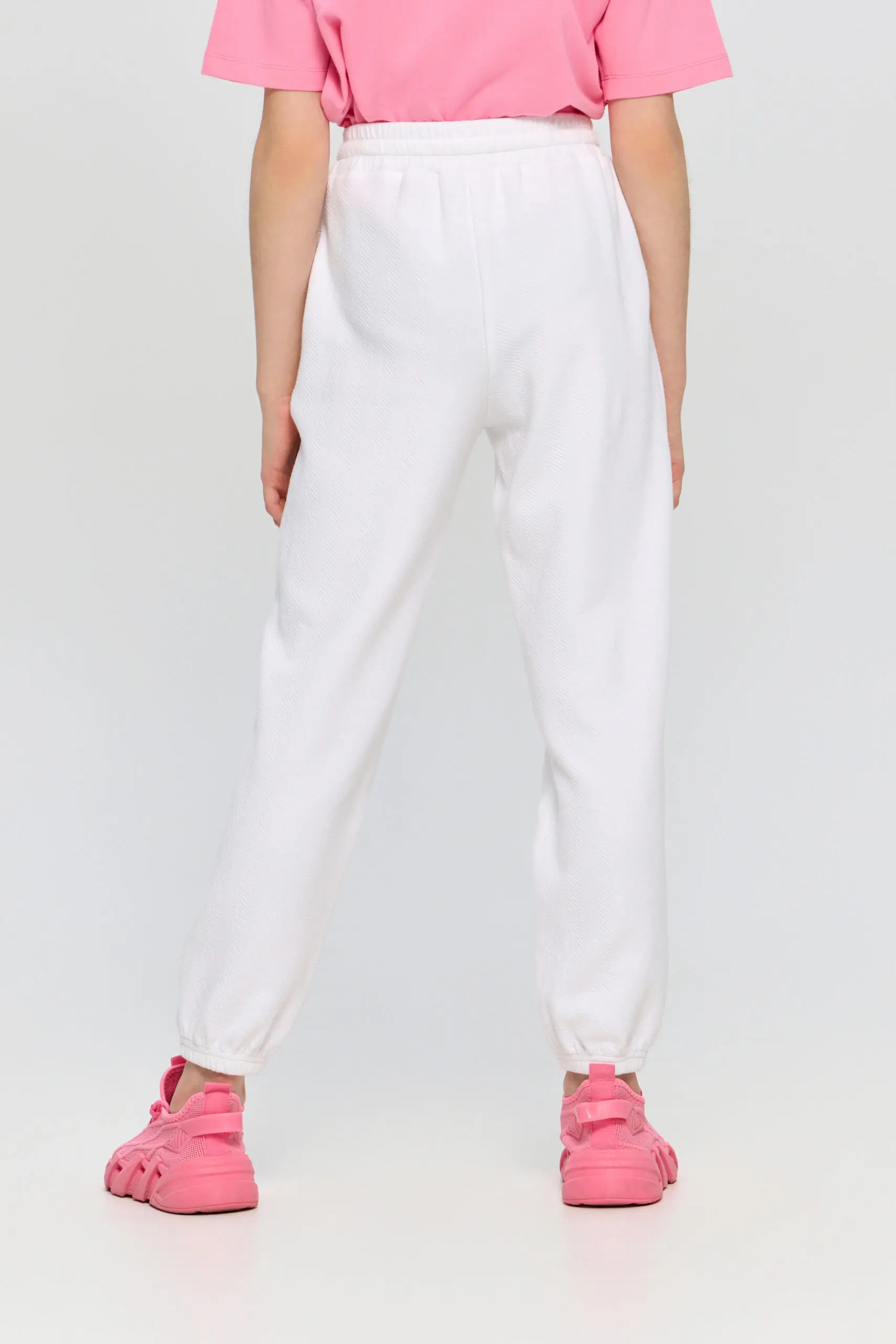 Спортивные брюки для девочки изготовленные из легкого и дышащего материала. Эластичная резинка на талии гарантирует отличную фиксацию. Практичные боковые карманы дают возможность носить с собой небольшие ... предметы, вроде телефона или ключей, делая брюки пригодными для ежедневного использования. Современный крой брюк идеально дополнит спортивный образ