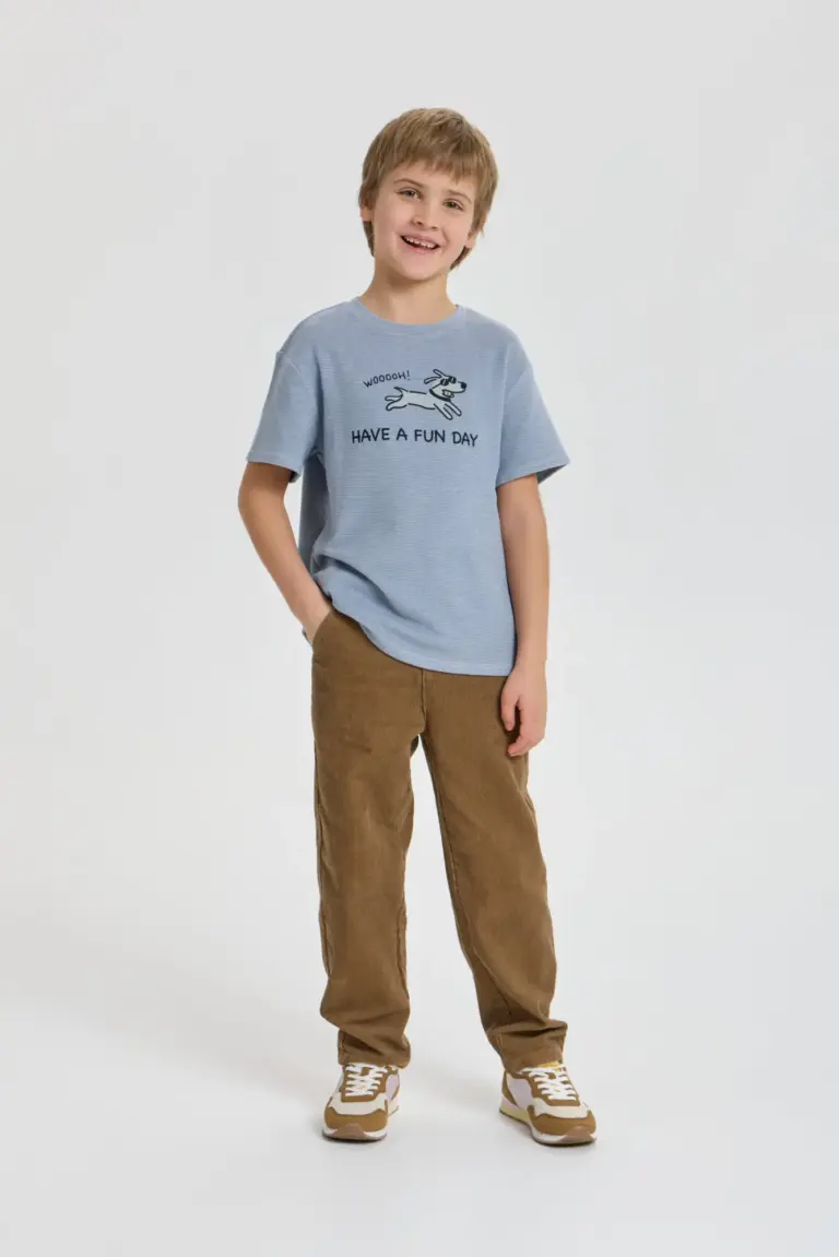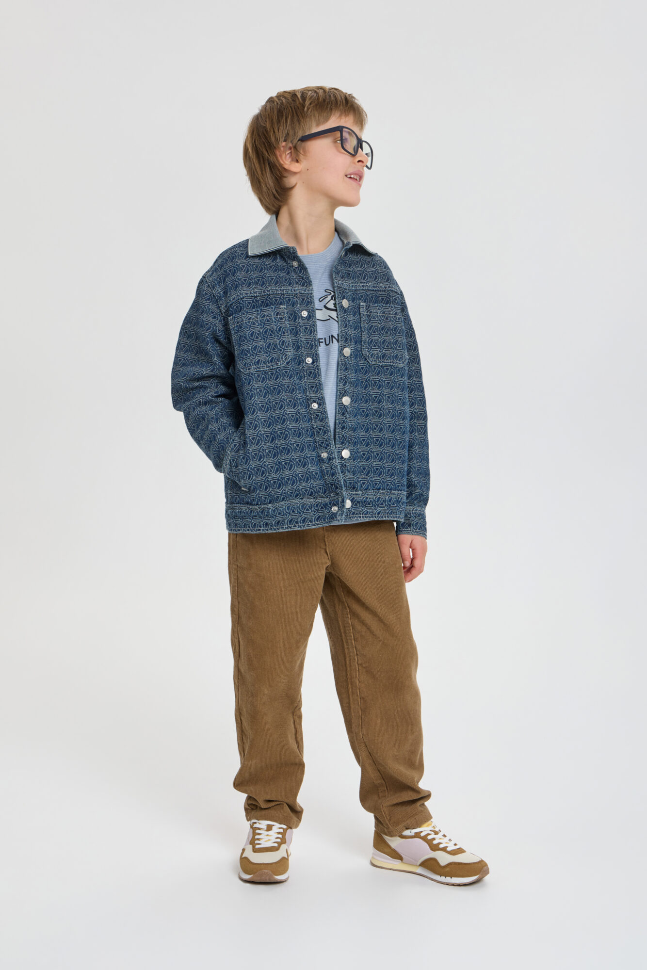 Вельветовые брюки для мальчиков – универсальный выбор, подходящий как для обычных дней, так и для событий, требующих более формального стиля. Модель прямого силуэта имеют застежку-молнию с пуговицей и ... регулируемую резинку на талии для оптимальной посадки. Крой – свободный. Четыре кармана – два по бокам и два сзади – добавляют функциональности.Удобная и практичная модель дает возможность создавать различные интересные комплекты для будней и праздников.