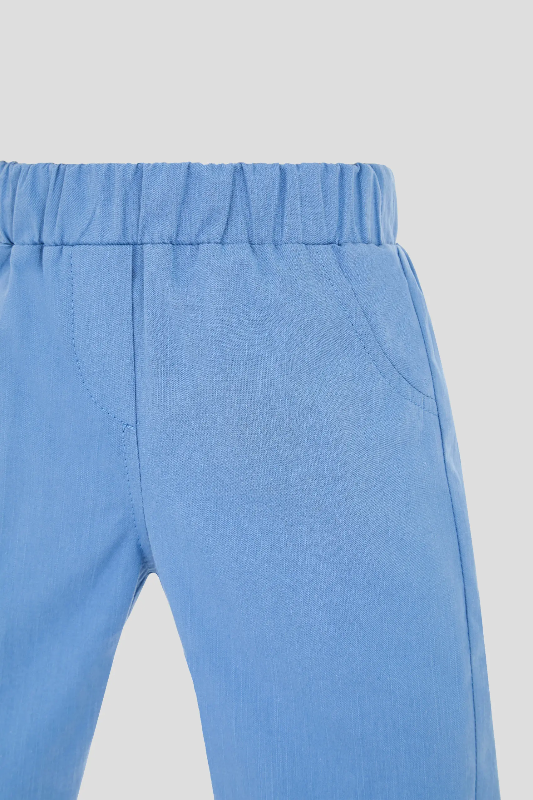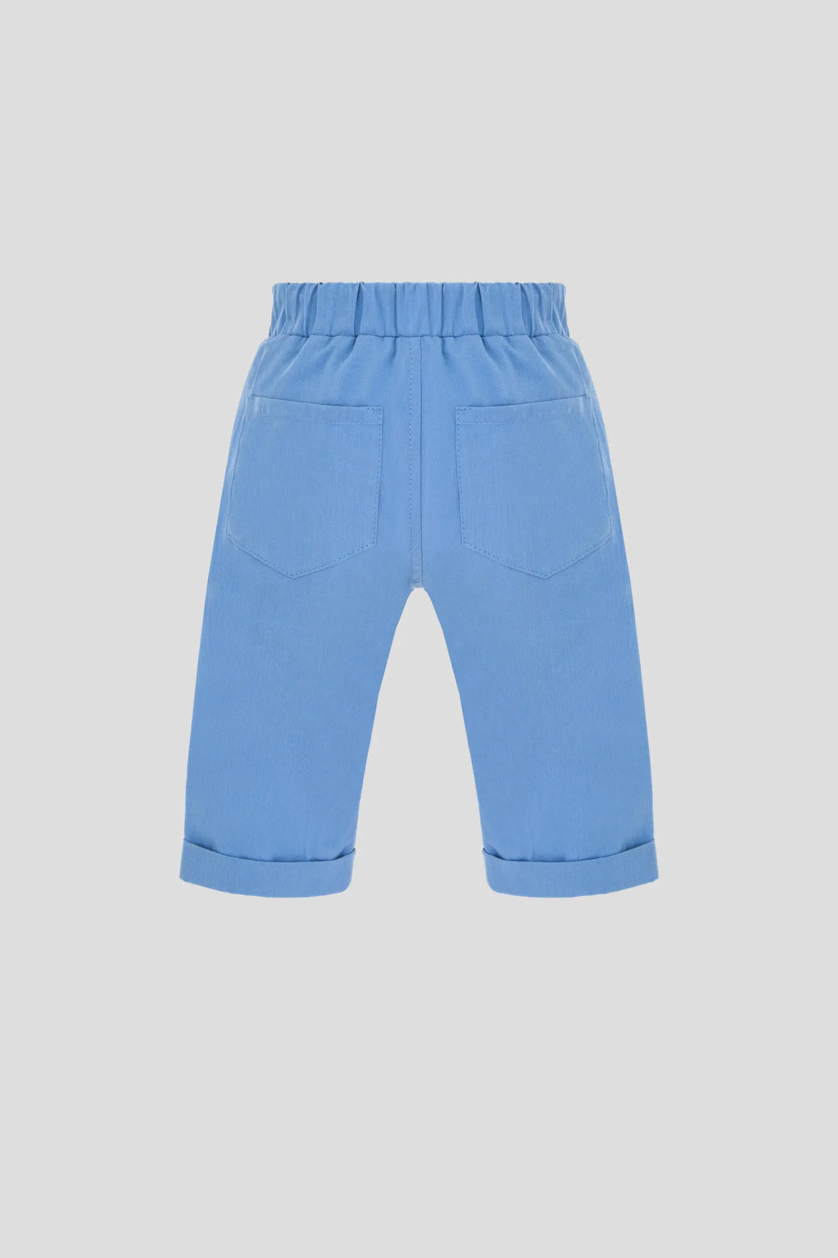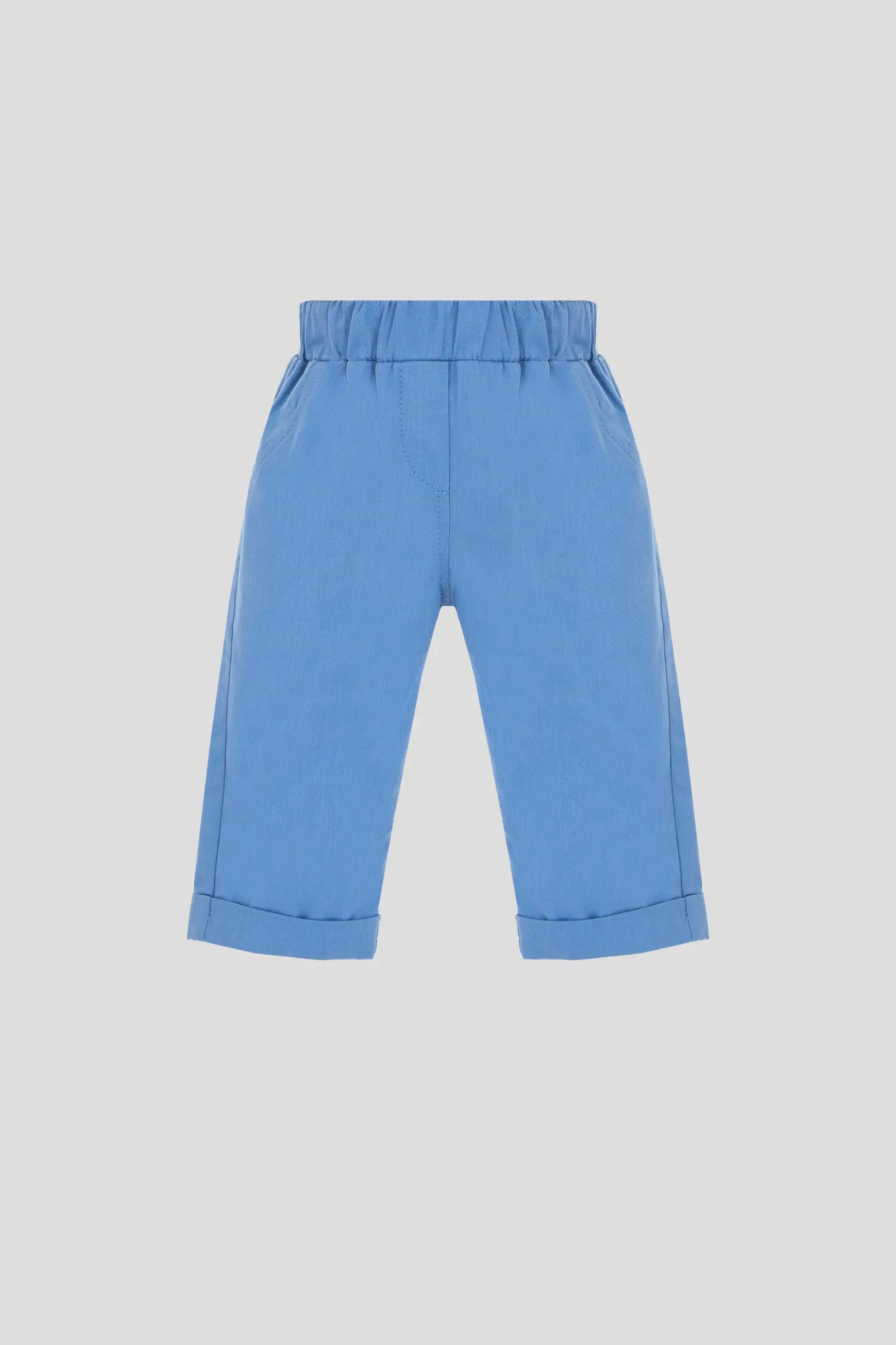 В летний период брюки голубого оттенка станут ключевым элементом гардероба маленького модника. Свободный крой изделия дает возможность малышу свободно двигаться и изучать окружающий мир. Отвороты внизу ... брючин добавляют модной изюминки. Мягкая резинка в поясе гарантирует удобную и уверенную фиксацию, не сдавливая животик. Накладные и декоративные карманы придают образу сходство со взрослыми моделями. Благодаря своей универсальности, эти брюки отлично комбинируются с разными элементами одежды. Для более официального случая можно надеть их со светлой рубашкой. Для ежедневного использования идеально подойдут футболки спокойных расцветок.