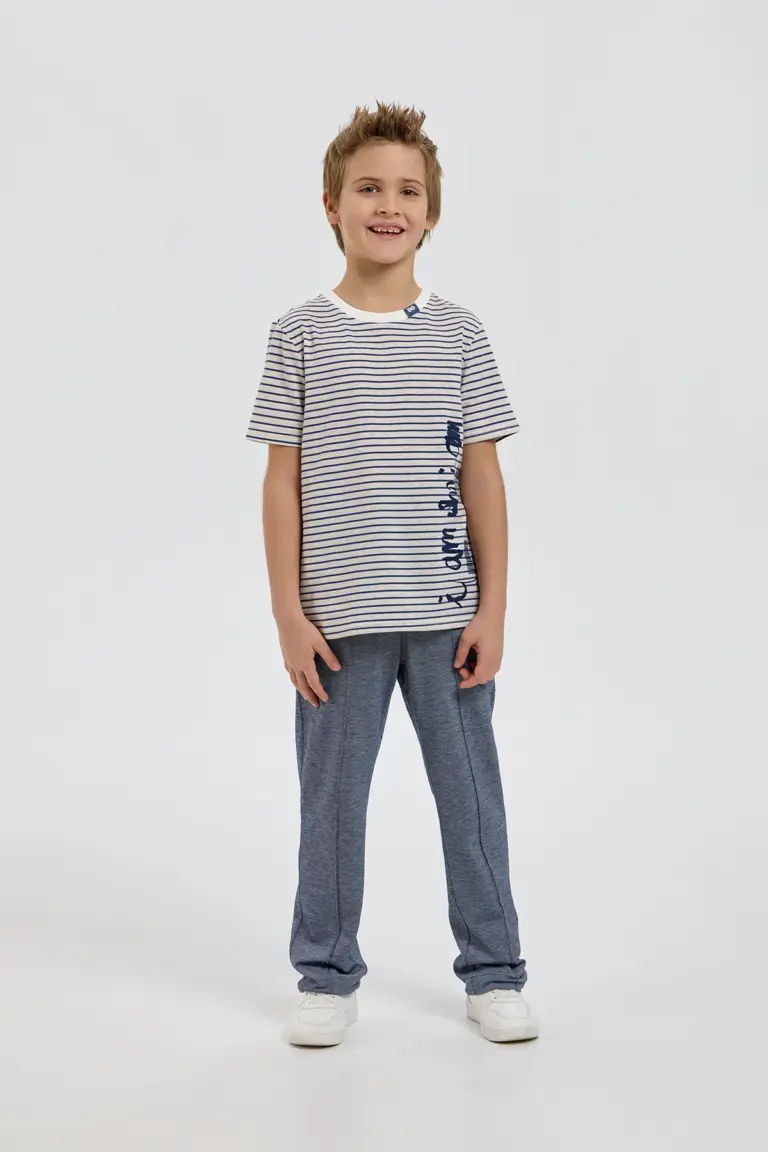 Трикотажные брюки для мальчика - прекрасная замена джинсовым изделиям. Модель прямого кроя выполнена из 100% хлопка. Удобную посадку обеспечивает пояс на эластичной резинке дополненный кулиской. По ... бокам предусмотрены функциональные карманы. Брюки гарманично сочетаются футболками и лонгсливами разных цветов и фактур.