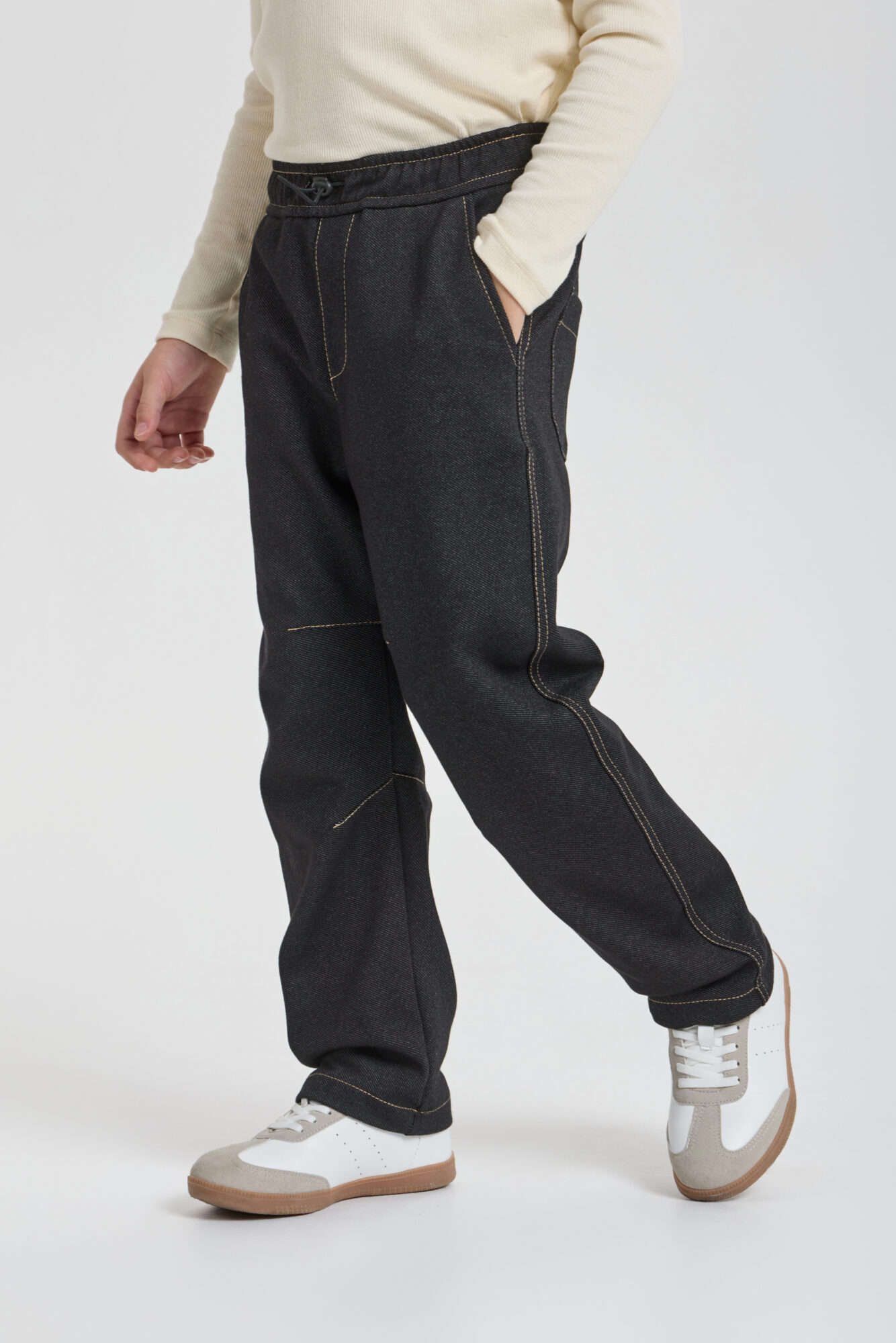 Брюки для мальчика в модном оттенке графита станут отличной альтернативой джинсам и займут почетное место среди любимой одежды. Модель имеет прямой свободный силуэт. Эластичный пояс дополнен ... шнурком-кулиской, чтобы добиться идеальной посадки по талии. Боковые и задние карманы добавляют функциональности. Оригинальности изделию добавляют контрастные швы. Брюки легко сочетаются с разнообразным верхом: лонгсливами, футболками, свитерами и легкими куртками, что делает их крайне универсальными.