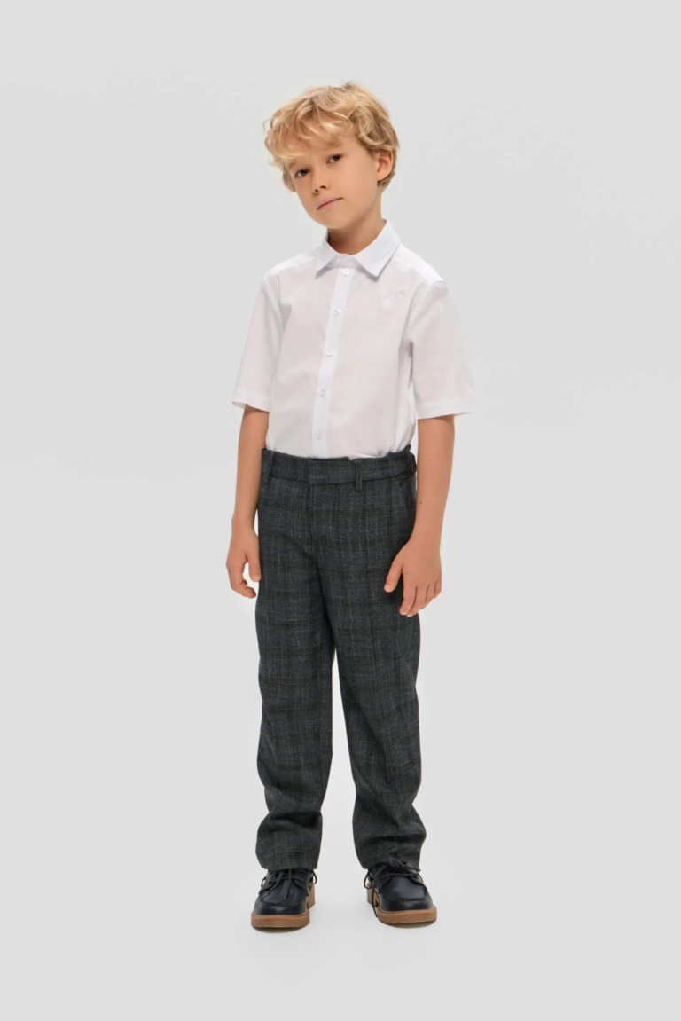 Школьные классически брюки с актуальным клетчатым рисунком, превосходно подойдут и для торжественных случаев, и для ежедневного использования. Модель имеет удобную застежку на пуговицу и молнию. Пояс ... с регулируемой резинкой обеспечивает идеальную посадку, адаптируясь к индивидуальным особенностям фигуры. Два боковых кармана добавляют изделию практичности и удобства. Прямой крой не сковывает движения, гарантируя ребенку комфорт на протяжении всего дня. Брюки выполнены из качественной смесовой ткани.