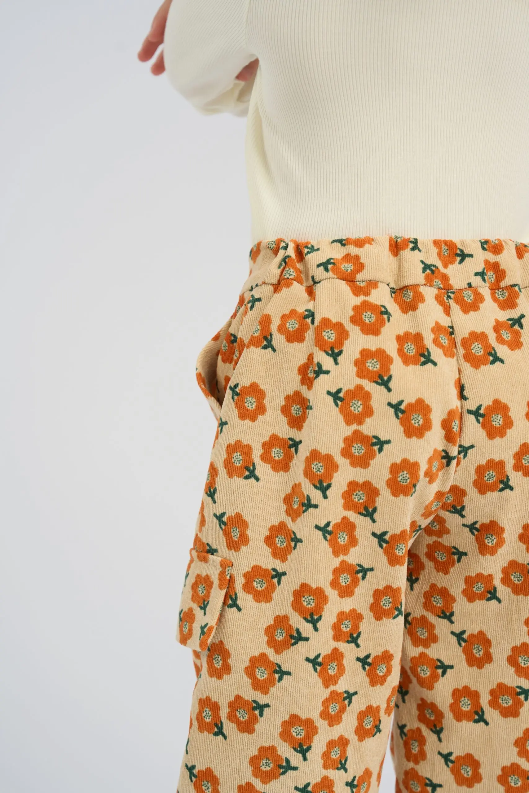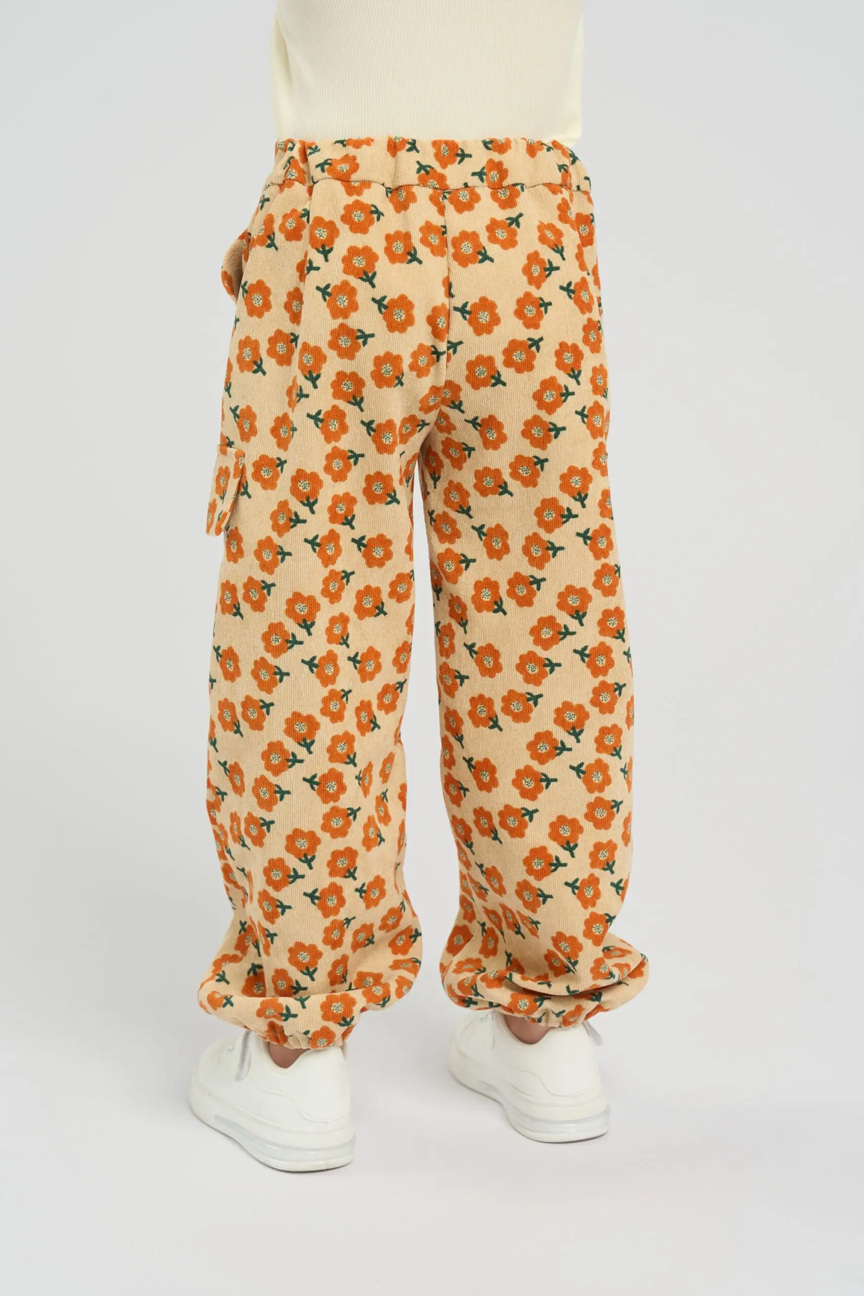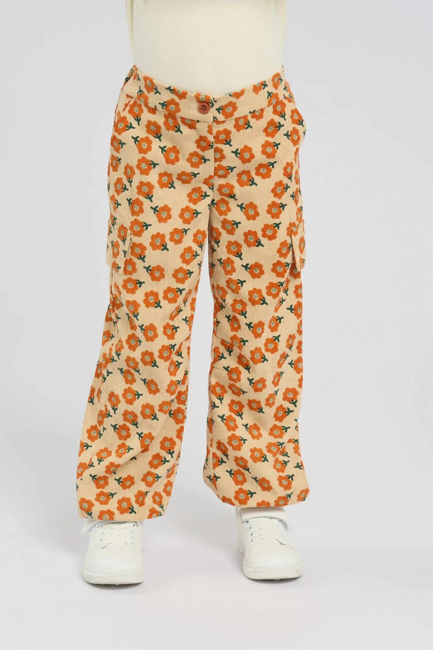 Модные брюки из микровельвета песочного оттенка украшены ярким цветочным принтом. Модель комфортного свободного силуэта не сковывает движения. Пояс с застежкой на пуговицу имеет эластичную вставку, поэтому ... ребенку обеспечена удобная посадка брюк по фигуре. По бокам прорезные карманы, предусмотрены карманы-обманки и на брючинах. Брюки эффектно дополнят любой однотонный верх.