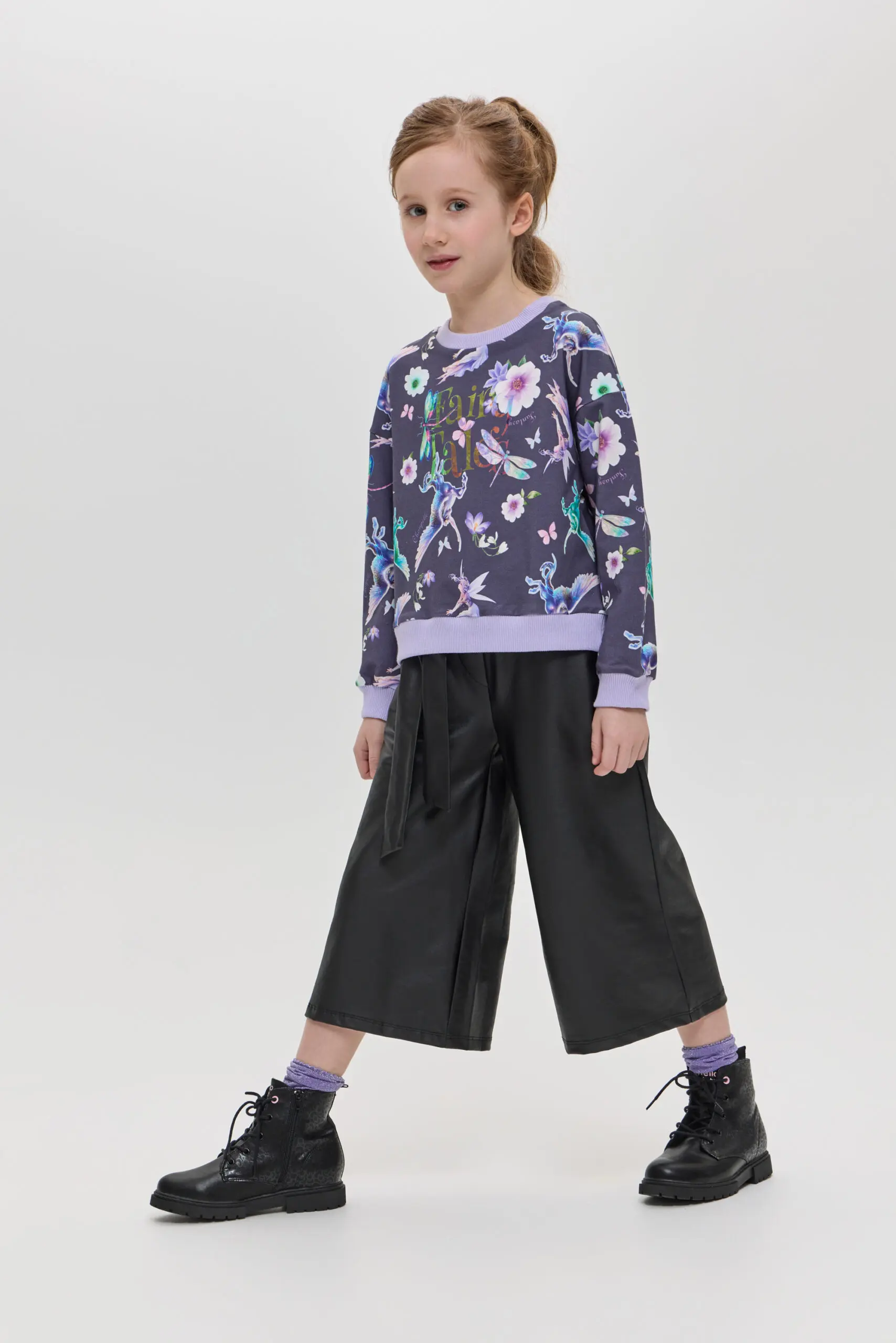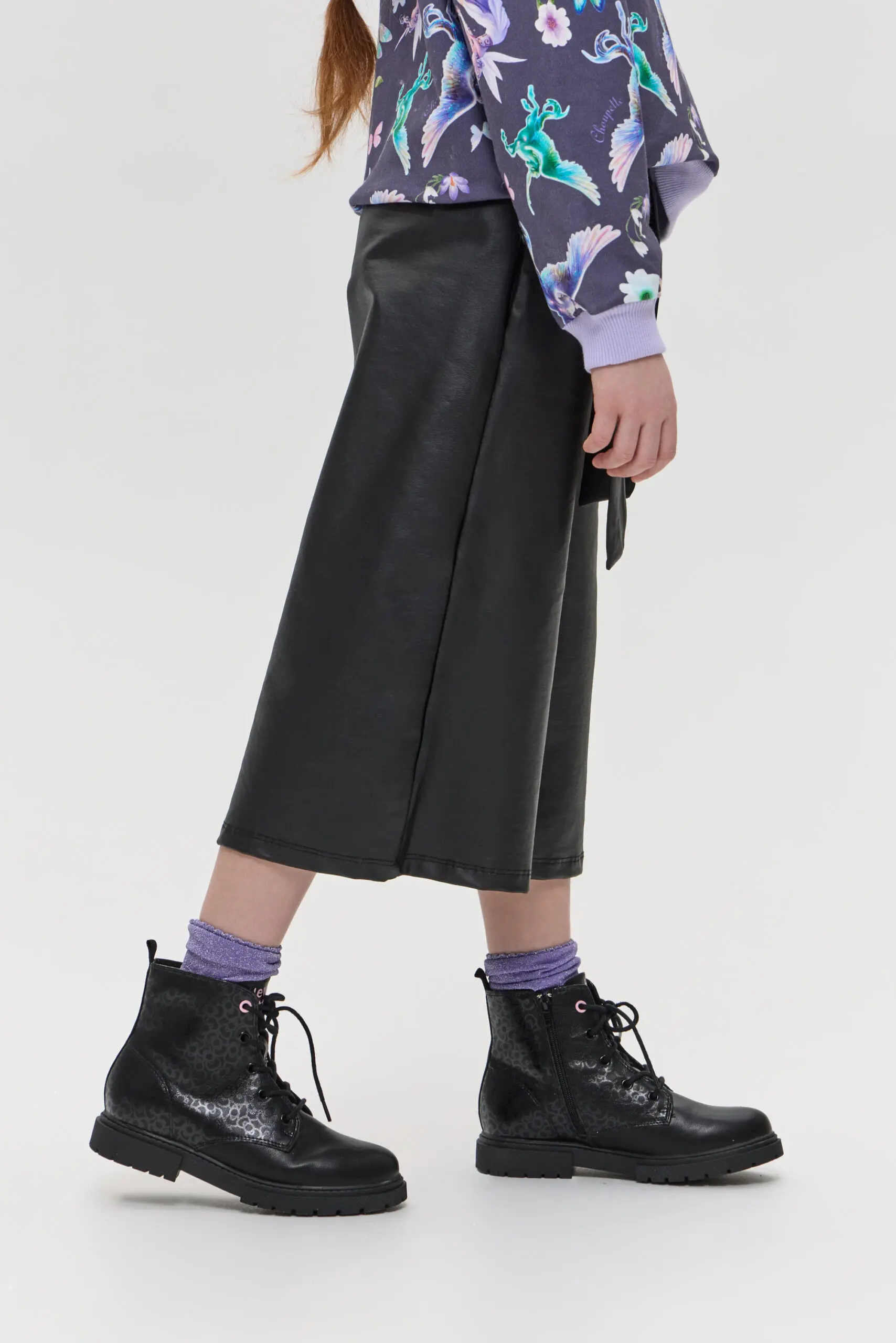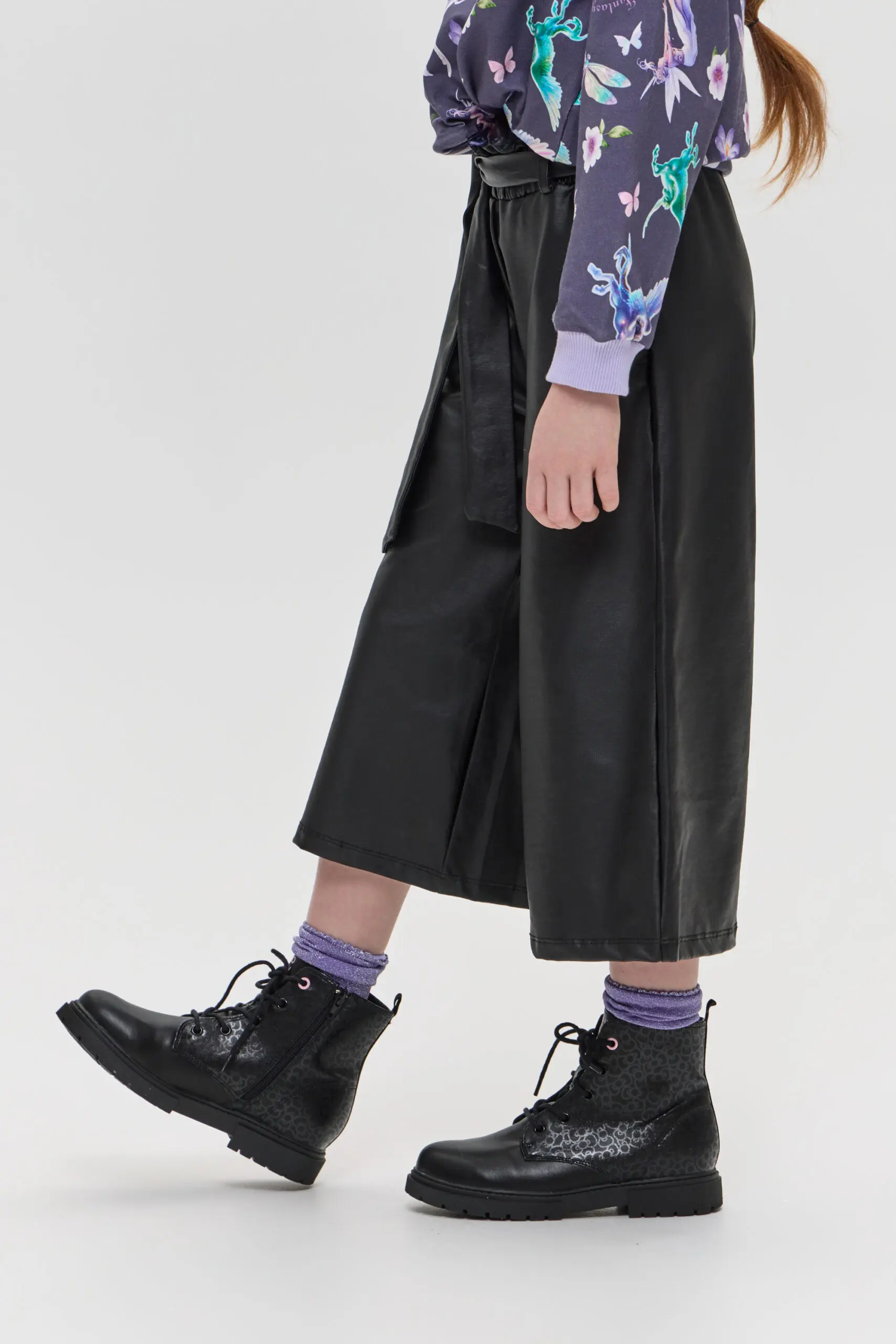 Брюки-кюлоты для девочки выполнены в стильном черном цвете. Материал с эффектом кожи создает модный и современный вид, идеально подходящий для создания как повседневных, так и более ... нарядных ансамблей. Такой стильный элемент гардероба может стать основой для множества образов, позволяя девочке экспериментировать с разными сочетаниями. Эластичный пояс с бантом добавляет брюкам не только удобство, но и игривый акцент. Брюки-кюлоты можно сочетать с различными топами, от простых футболок до более нарядных блузок. Благодаря универсальному дизайну и оригинальным деталям, такие брюки станут любимым элементом гардероба каждой девочки, позволяя ей проявить свою индивидуальность и стиль.