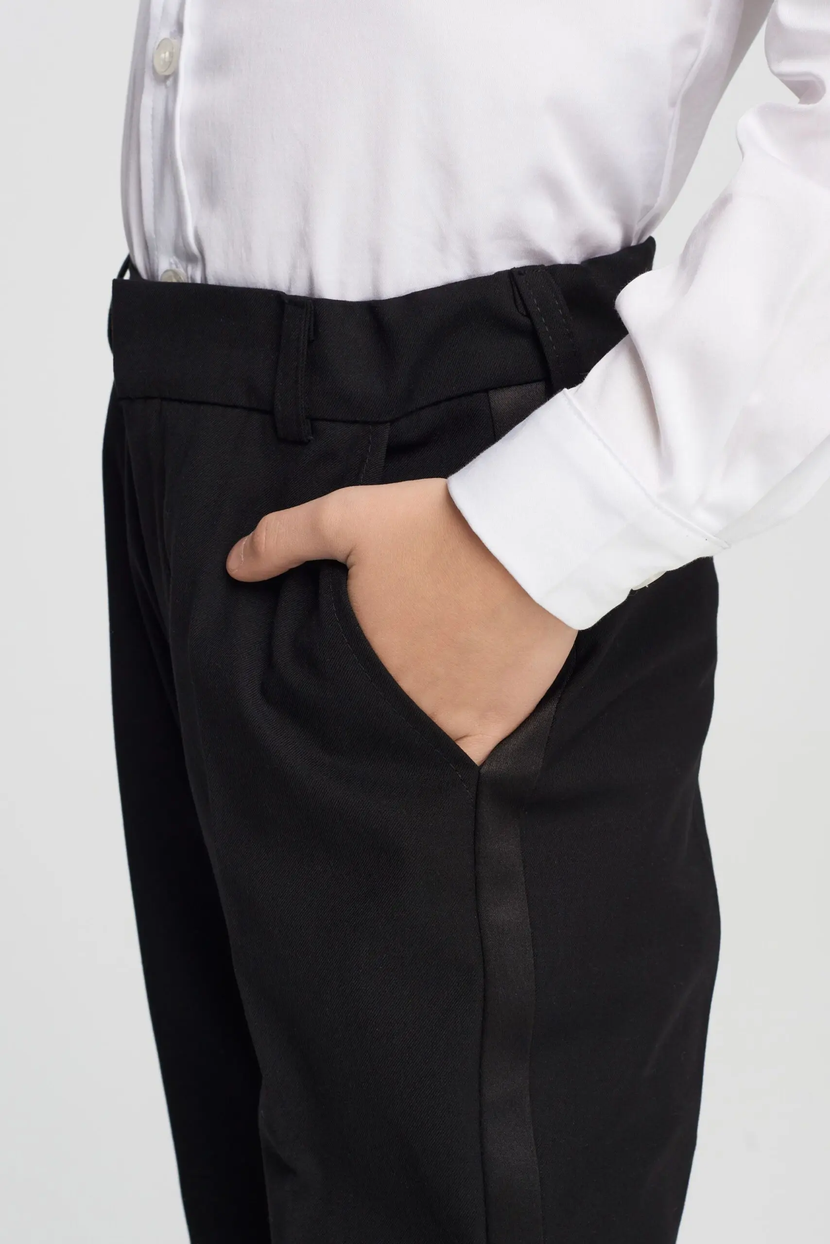 Нарядные костюмные брюки — идеальный выбор для особых случаев. Лампасы на боковых швах добавляют стильный визуальный акцент и делают брюки более современными. Удобный крой обеспечивает свободу ... движений, позволяя ребенку чувствовать себя комфортно. На поясе предусмотрены шлевки для пояса, что позволяет дополнить образ стильным ремнем. Брюки отлично подходят как для торжественных мероприятий, так и для эффектных повседневных выходов.