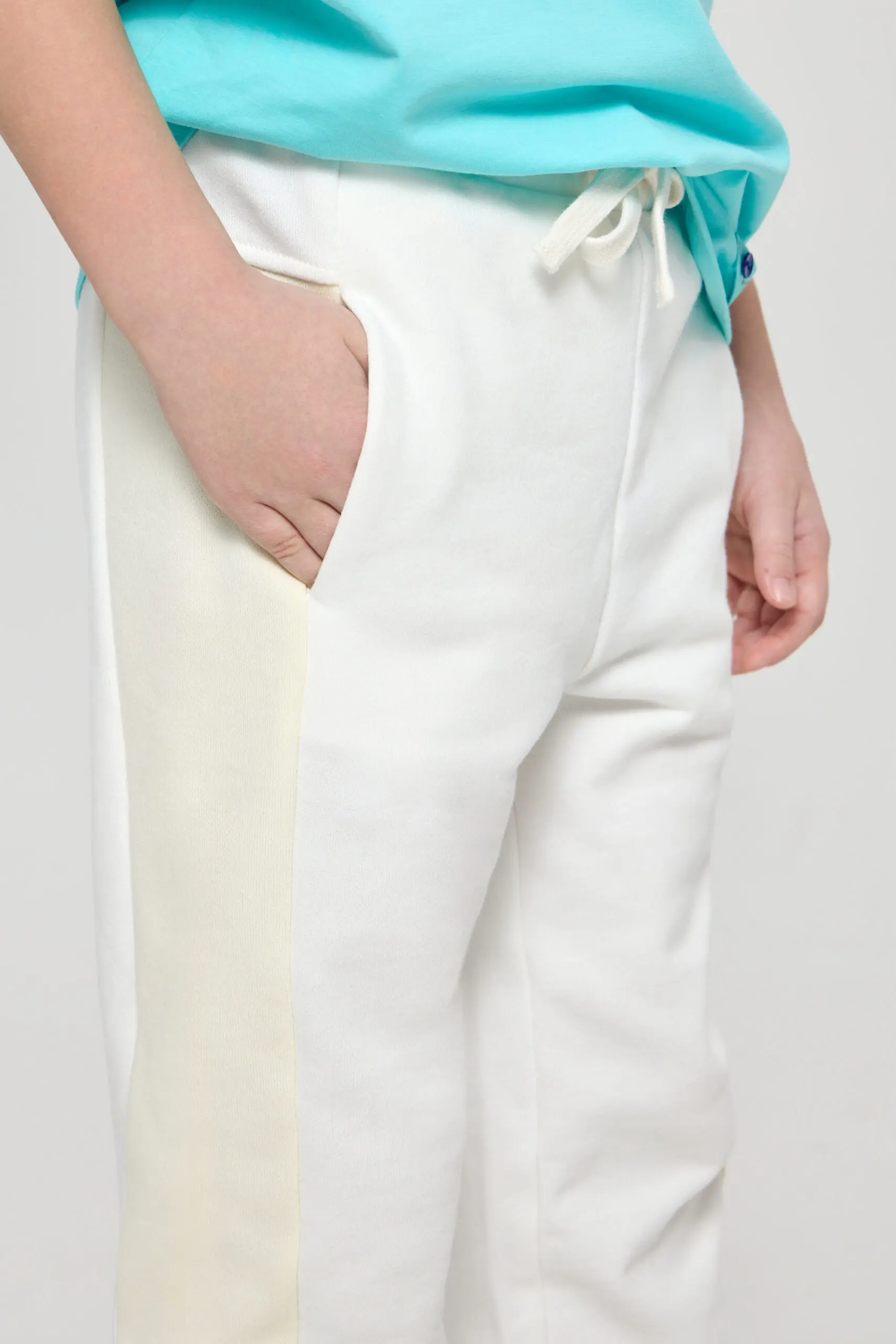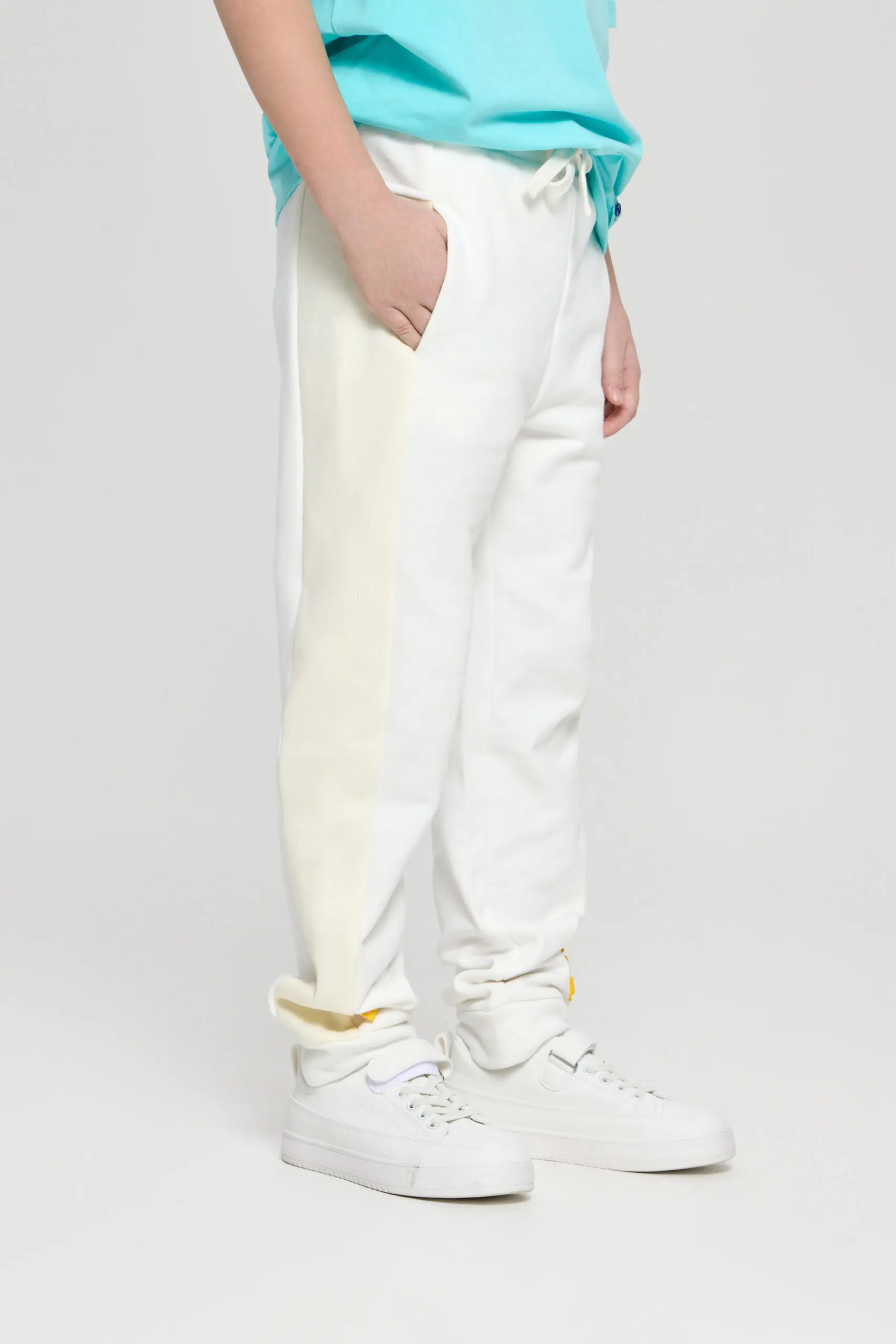 Трикотажные брюки с лампасами выполнены в стильном цвете экрю, который прекрасно подойдет для повседневной носки. Они изготовлены из мягкого и дышащего материала, обеспечивающего комфорт в течение ... всего дня. Лампасы по бокам добавляют спортивный акцент и делают брюки более интересными. Удобный эластичный пояс позволяет легко регулировать посадку, что особенно важно для активных детей. Цвет экрю легко комбинируется с яркими и нейтральными оттенками, создавая множество стильных образов.