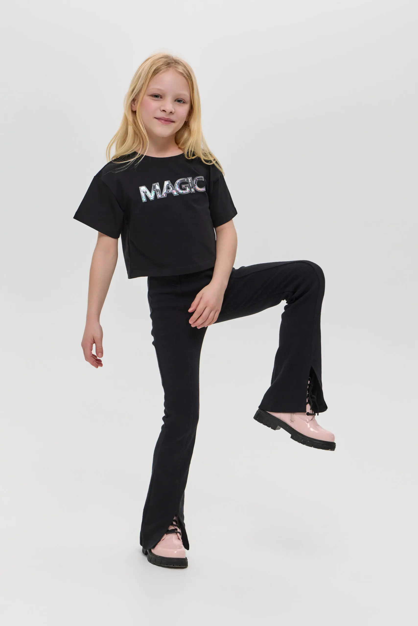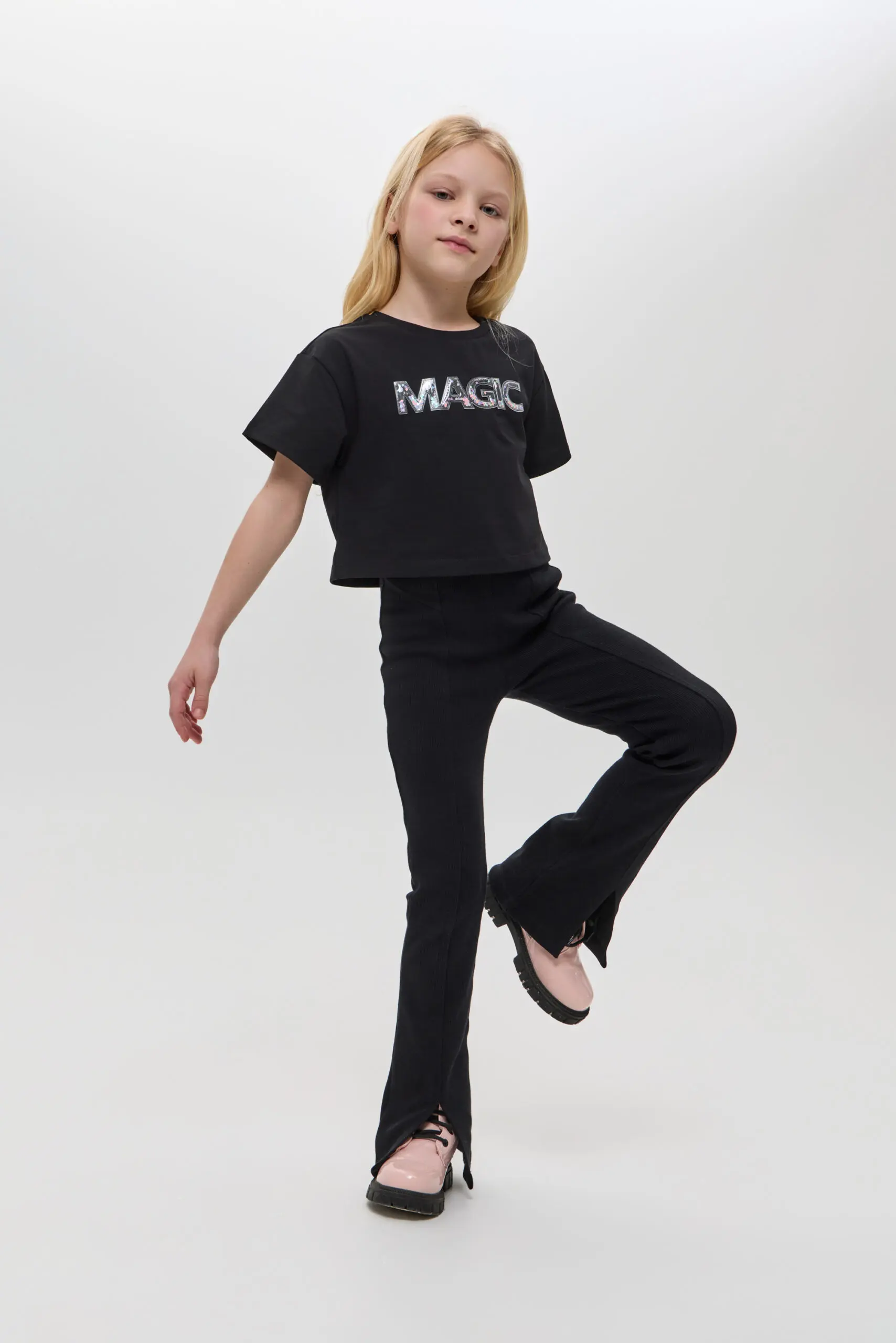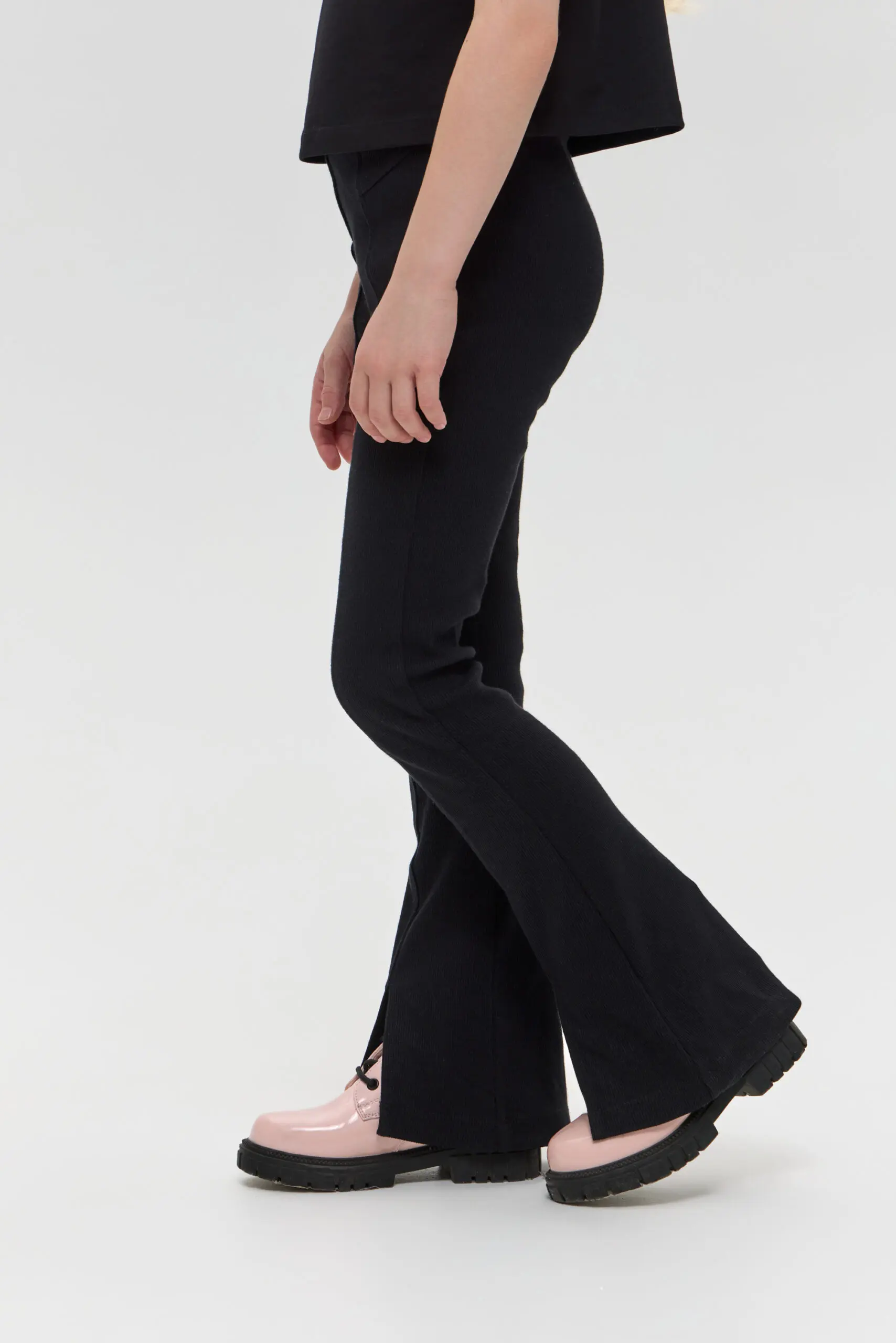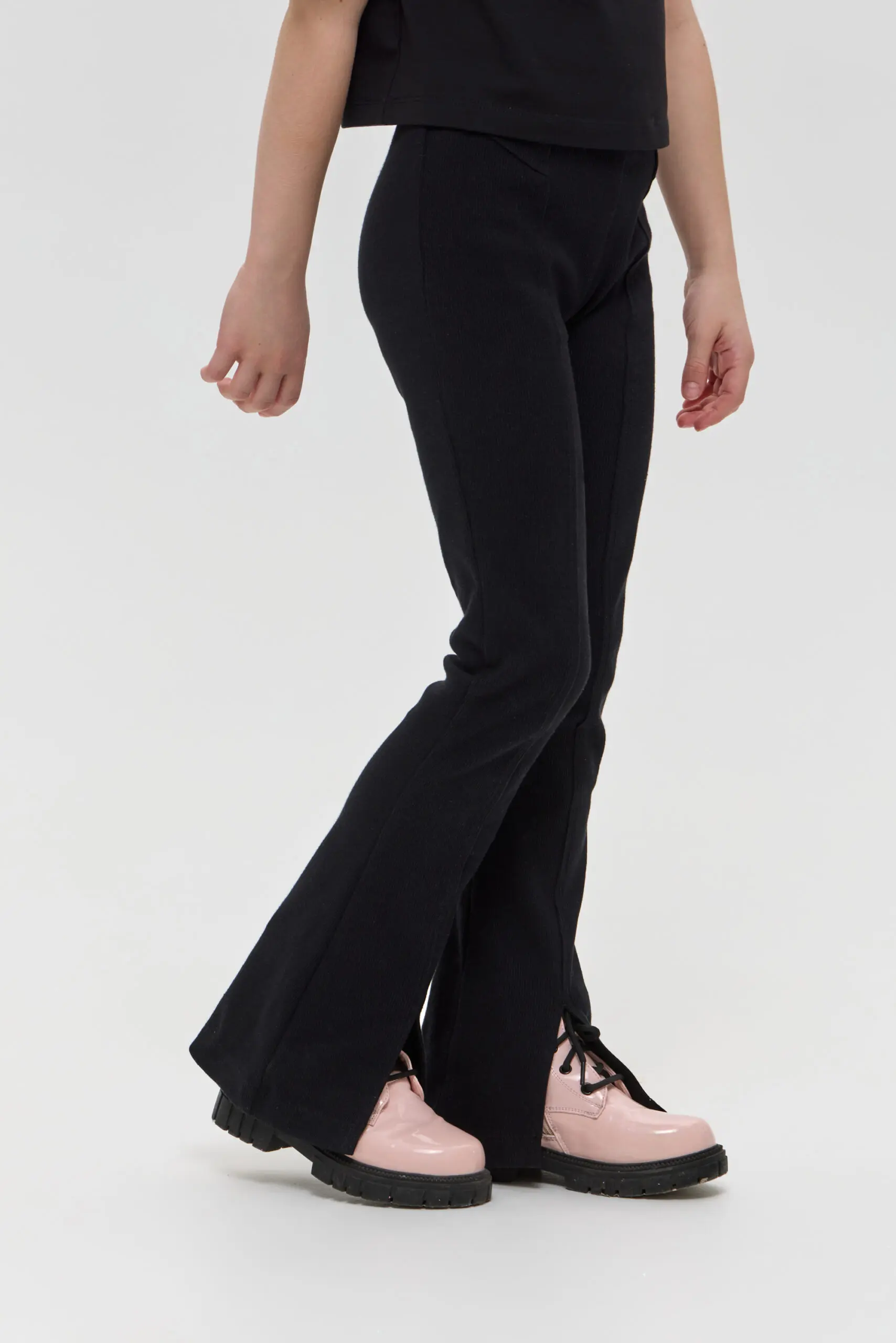 Брюки с разрезами для девочки — это стильный и универсальный элемент гардероба, который сочетает в себе комфорт и модные тренды. Брюки имеют прямой силуэт с разрезами ... в нижней части, что добавляет изюминку и современный акцент. Трикотажный состав обеспечивает мягкость и эластичность, что делает брюки удобными для повседневной носки. Они хорошо сидят на фигуре и не сковывают движения. Простроченные стрелки по центру брючин придают им более строгий и элегантный вид, визуально удлиняя ноги. Эластичный пояс обеспечивает идеальную посадку.