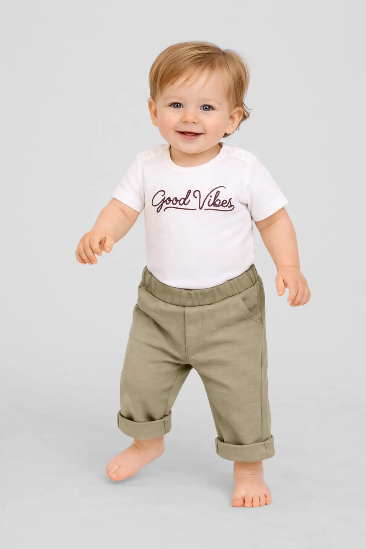 Детские трикотажные брюки для мальчика - это идеальное сочетание удобства и модного дизайна. Изготовленные из мягкой смесовой ткани, они обеспечивают приятные тактильные ощущения и удобство в ... течение всего дня. Прямой силуэт с эластичным поясом гарантирует отличную посадку по фигуре, не сковывая движений малыша во время активных игр. Эта модель легко комбинируется с разнообразными футболками, свитшотами и верхней одеждой, предлагая множество вариантов для создания модных повседневных и праздничных луков.