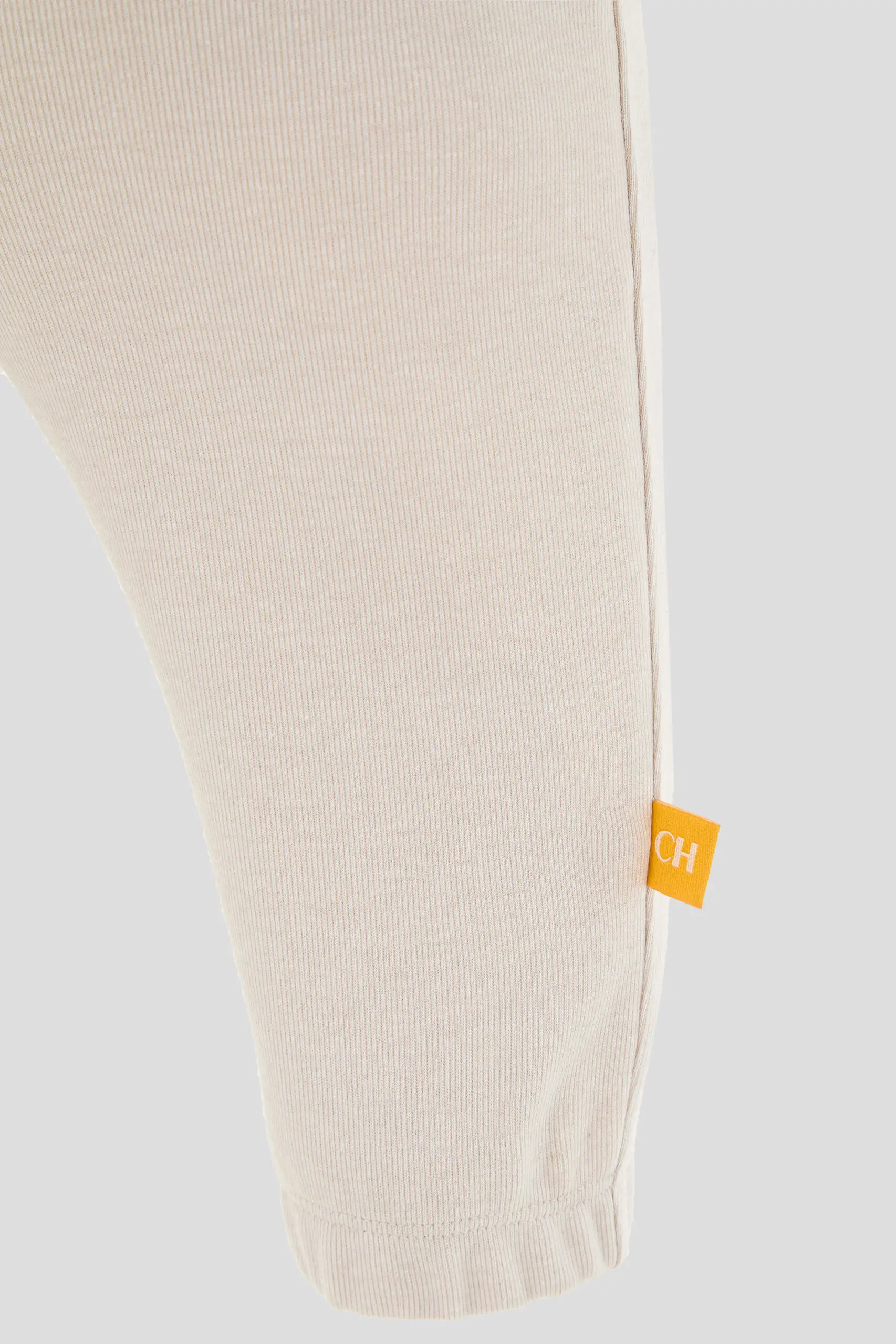 Для самых маленьких модников отличным выбором станут трикотажные штанишки в песочных тонах. Брючины снабжены манжетами для оптимальной посадки. Эластичная резинка на талии обеспечивает легкость в переодевании ... или смене подгузника.Благодаря нейтральному и универсальному оттенку, эти брючки легко комбинируются с разнообразными футболками, кофточками и ветровками.