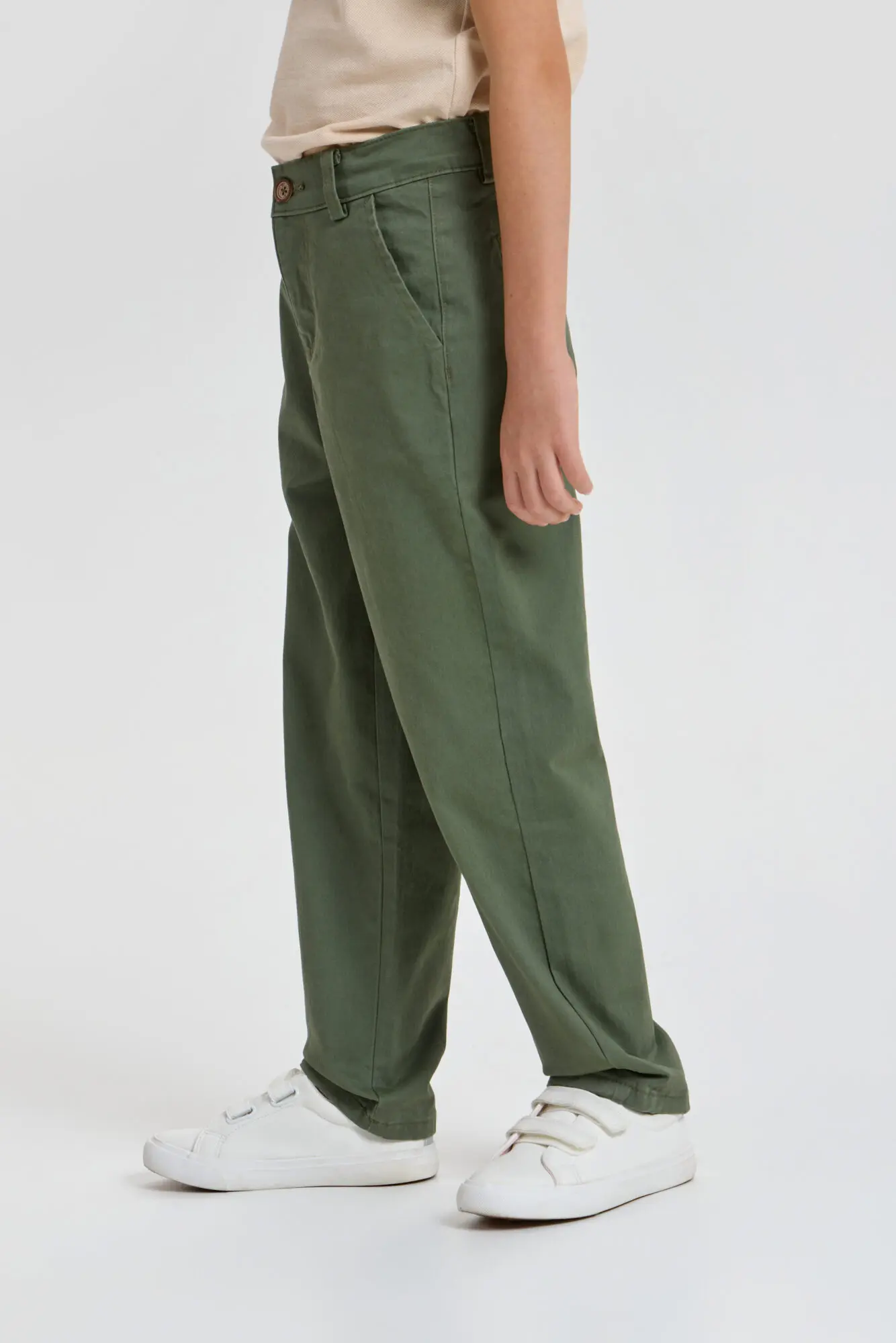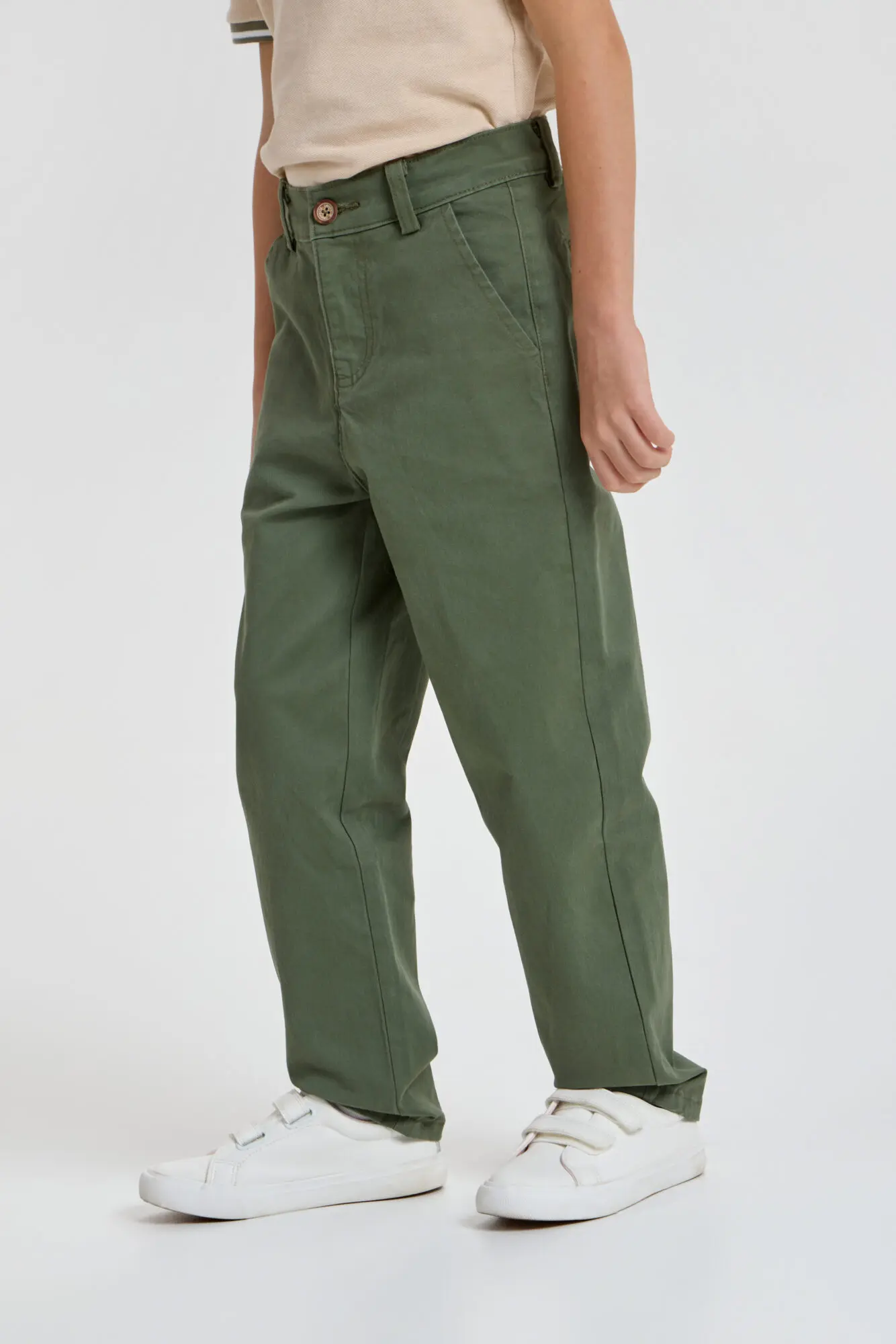 Брюки для мальчиков, выполненные из твила, состоят из хлопка с незначительным добавлением эластана благодаря чему хорошо тянутся. Ткань твил, благодаря натуральному хлопку в составе, обеспечивает хорошую ... воздухопроницаемость и долговечность изделия. Эти брюки имеют классический прямой силуэт, немного сужающийся книзу. Регулируемая резинка на поясе и шлевки для ремня позволяют добиться идеальной посадки. Два боковых кармана добавляют практичности этой модели.