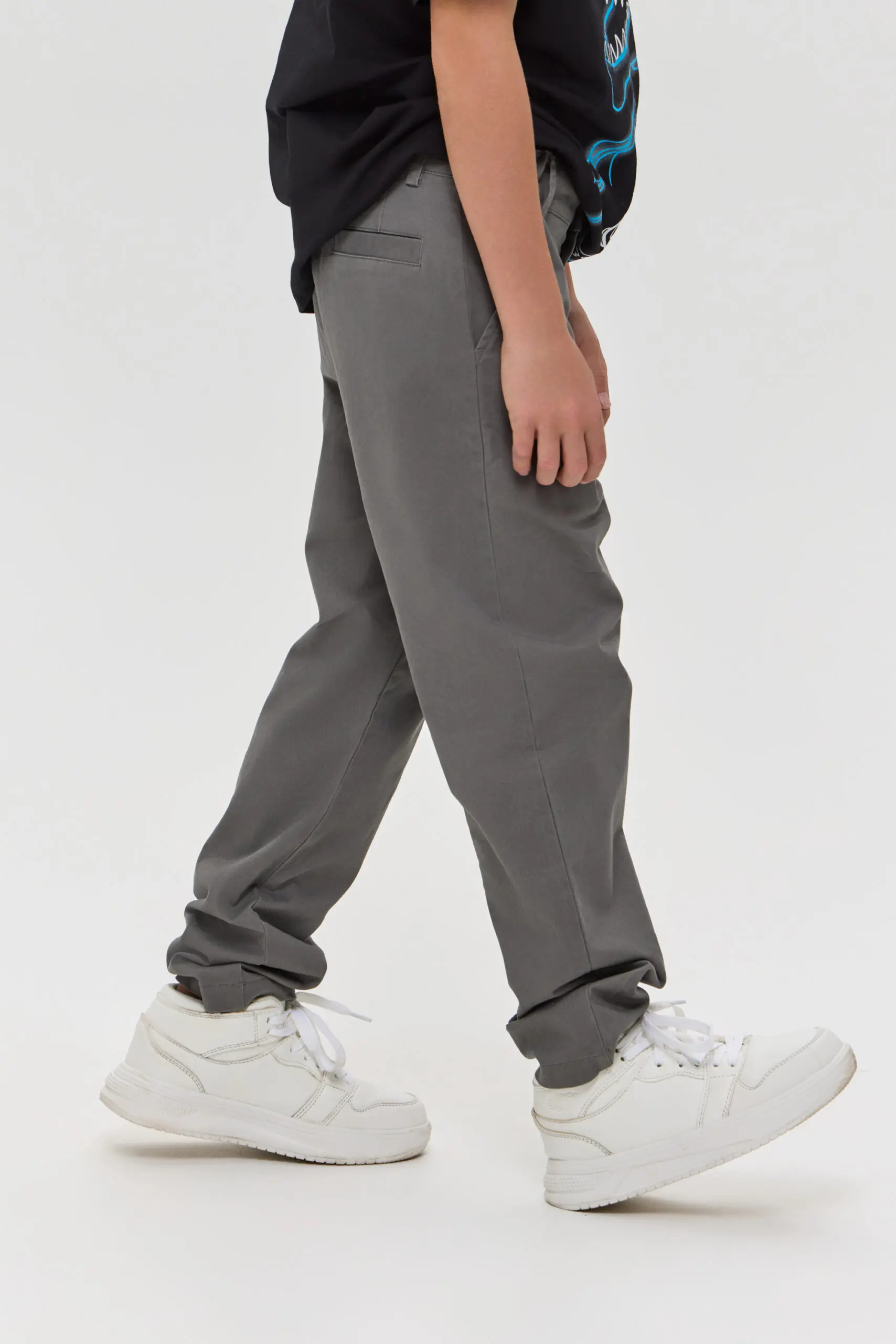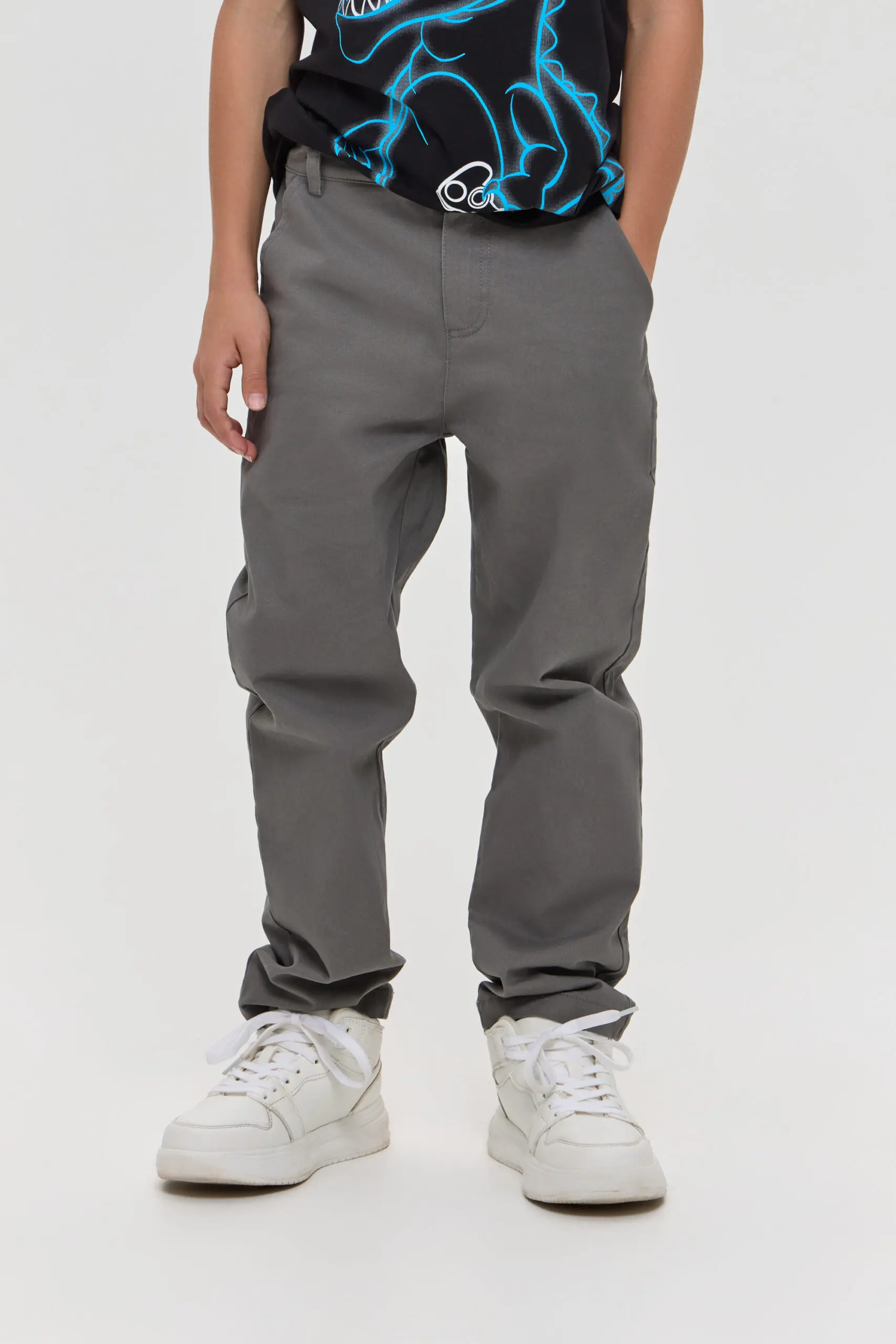 Детские брюки из твила цвета графит. Они изготовлены из прочного и износостойкого материала, что делает их идеальными для повседневной носки в любое время года. Комфортный прямой ... крой не сковывает движений, позволяя ребенку активно играть. Цвет графит является универсальным и легко сочетается с другими оттенками, что делает эти брюки отличным дополнением к любому гардеробу.