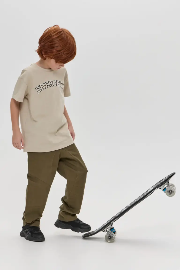 Детские брюки из твила цвета хаки — это стильный и практичный элемент гардероба для активных детей. Твил — это прочный и износостойкий материал, который отлично подходит ... для повседневной носки. Цвет хаки придает брюкам универсальность. Комфортный прямой крой обеспечивает свободу движений, позволяя ребенку чувствовать себя удобно в любых ситуациях. В сочетании с футболками, свитерами или куртками, брюки из твила станут отличным дополнением к гардеробу ребенка.