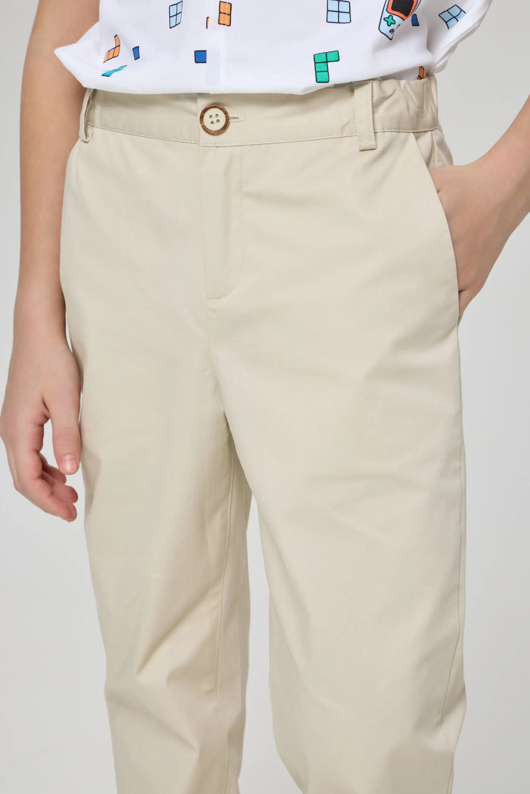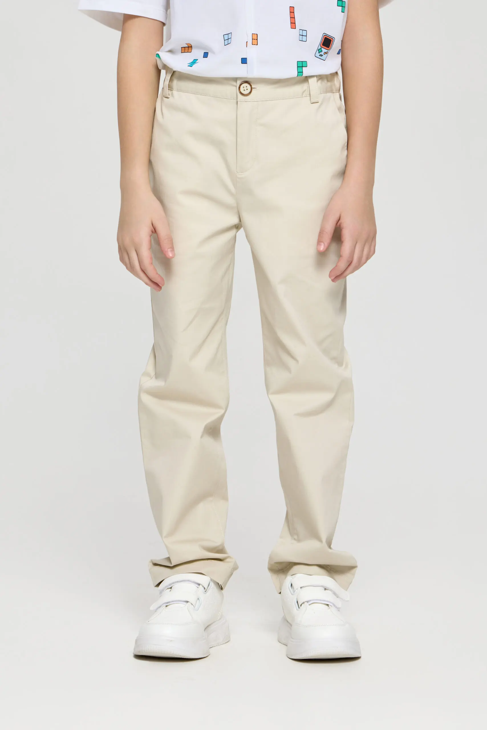 Брюки из твила для мальчика станут прекрасным выбором для летнего сезона. Выполненные из износостойкой и приятной на ощупь ткани, они гарантируют удобство при носке и долгий ... срок службы. Благодаря песочному оттенку, брюки легко комбинировать с другой одеждой. Данная модель оснащена регулируемой эластичной резинкой для оптимальной посадки. Вместительные боковые карманы добавляют функциональности. Создавайте разнообразные образы, сочетая эти брюки с футболками, рубашками или пиджаками.