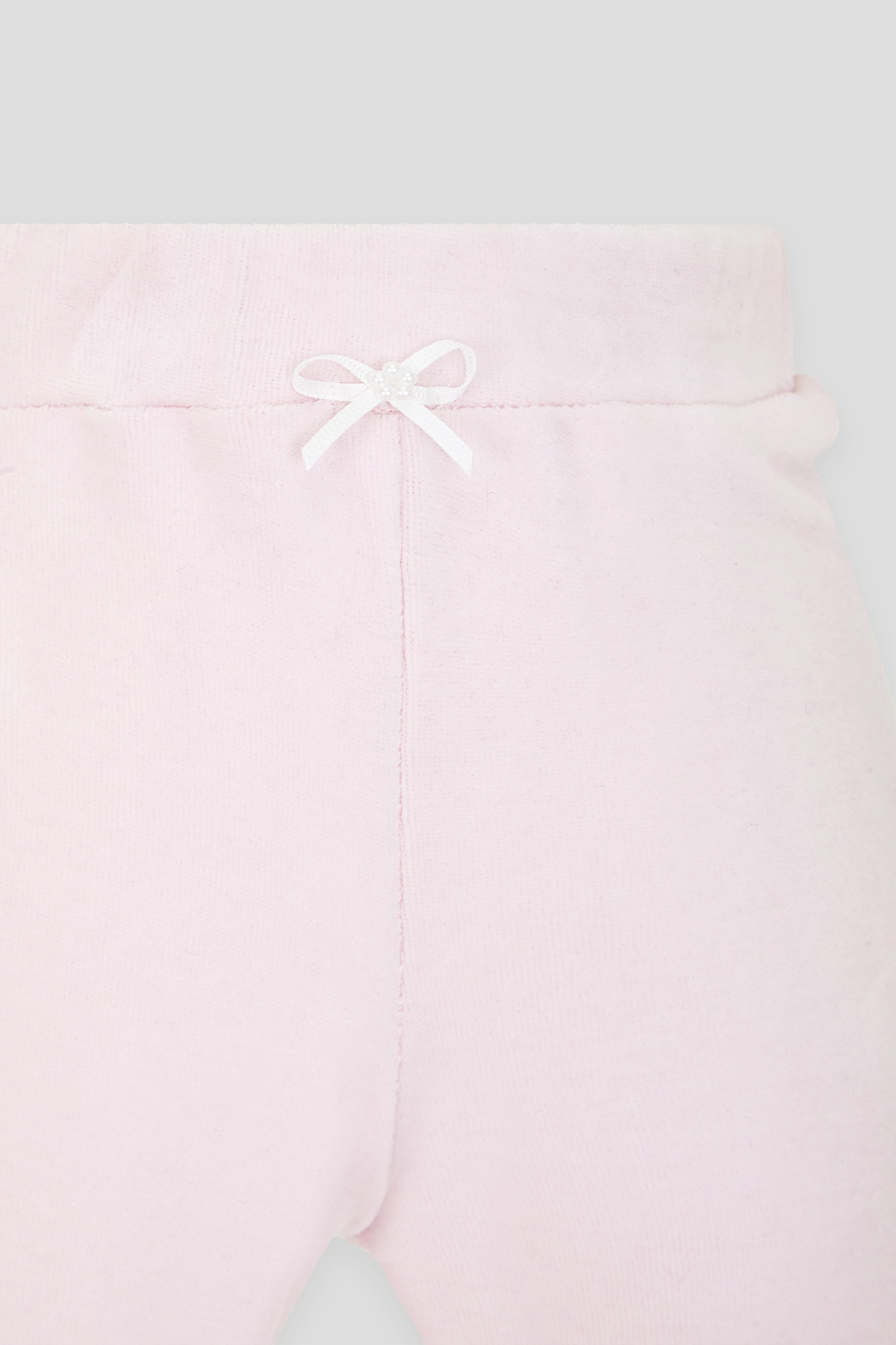 Брюки из велюра для девочки, выполненные в мягком розовом оттенке, — отличный выбор для ежедневного использования. Модель свободного кроя выполнена из приятного на ощупь и воздухопроницаемого ... хлопкового материала, который дарит ребенку полное удобство. Эластичная резинка на поясе и по низу брючин гарантирует плотную и комфортную посадку. Такая модель брюк без проблем сочетается с разными футболками, лонгсливами и курточками, превращаясь в практичную основу для детской одежды.