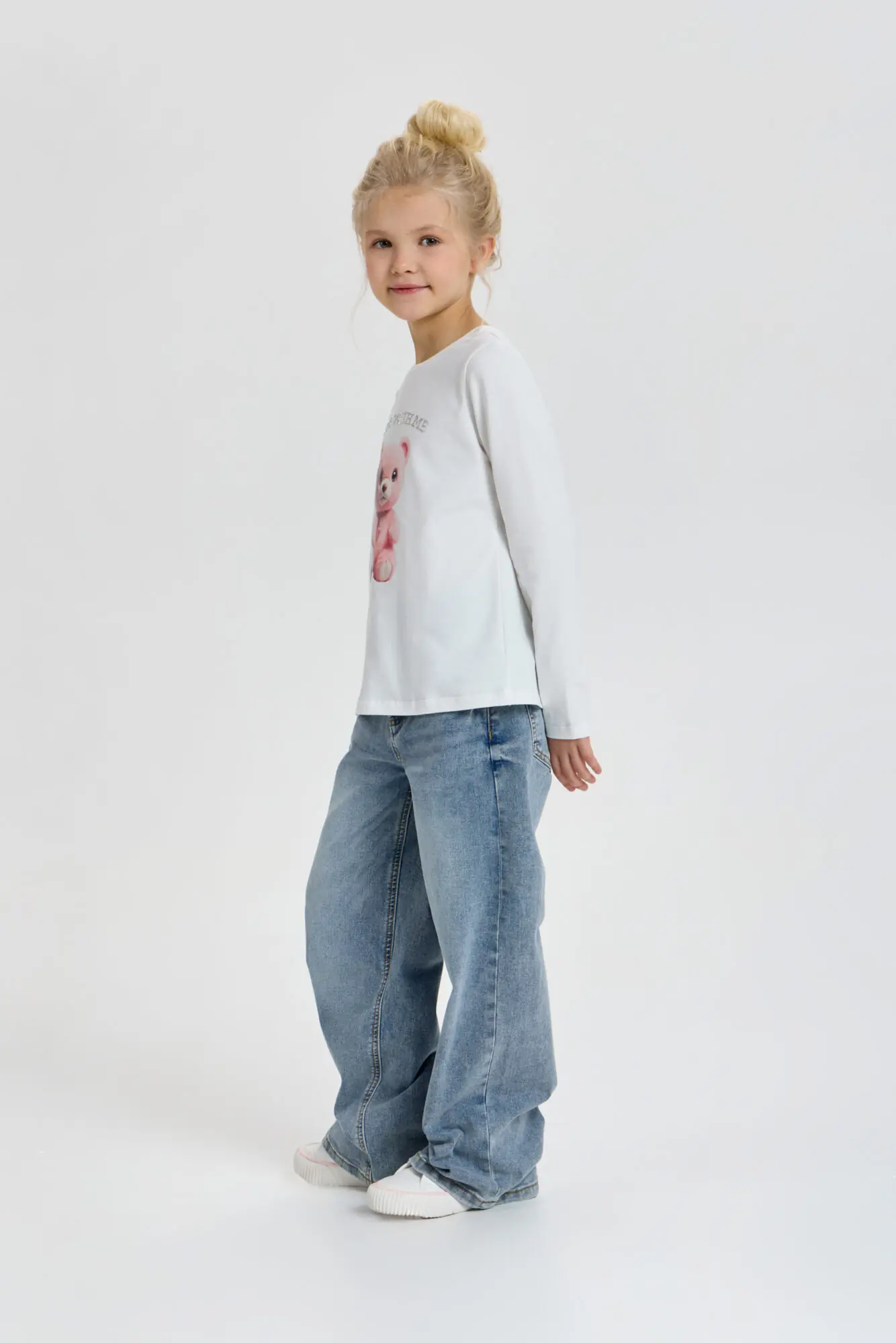 Лонгслив с принтом для девочки станет прекрасной альтернативой обычной футболке. Модель свободного кроя с длинными рукавами обеспечивает комфортную посадку и не сковывает движений, что делает её ... превосходным выбором для стильных повседневных образов. Оригинальный принт придает данной вещи неповторимость. Лонгслив изготовлен из высококачественной ткани с преобладанием хлопка. Он гармонично смотрится как с брюками и джинсами, так и с юбками различных фасонов