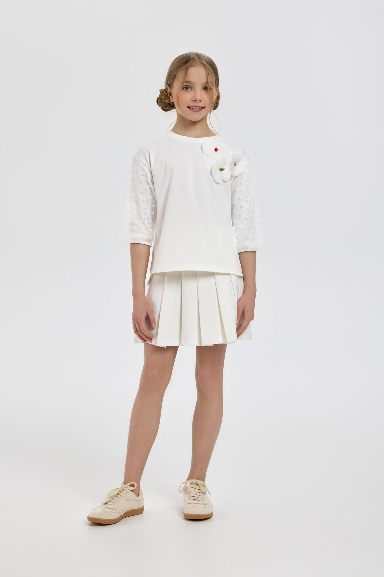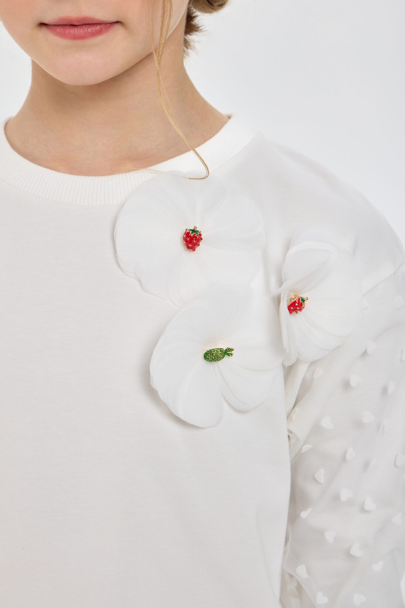 Стильный лонгслив с дизайнерским декором станет прекрасной основой для модных комплектов. Модель свободного кроя с заниженной линией плеча и удлинённой спинкой создают актуальный современный силуэт. Кружевные ... рукава и дизайнерский декор выступают в роли стильных акцентов. Эта многофункциональная вещь одинаково уместна в будни и в торжественных ситуациях. Лонгслив легко сочетается с джинсами, брюками, шортами или различными моделями юбок.