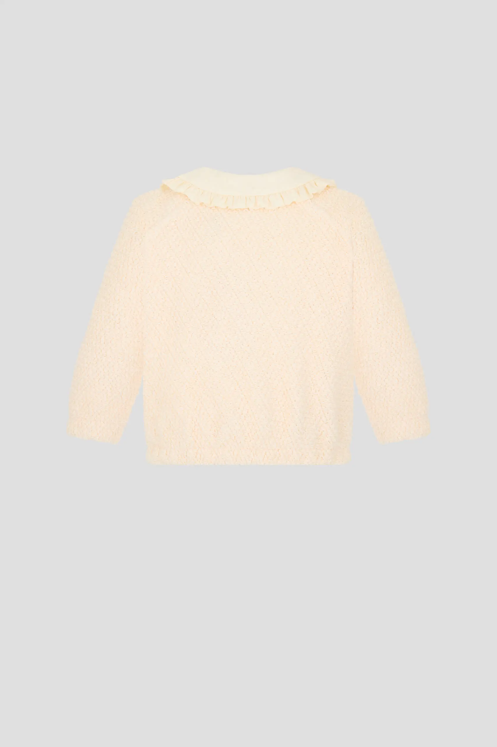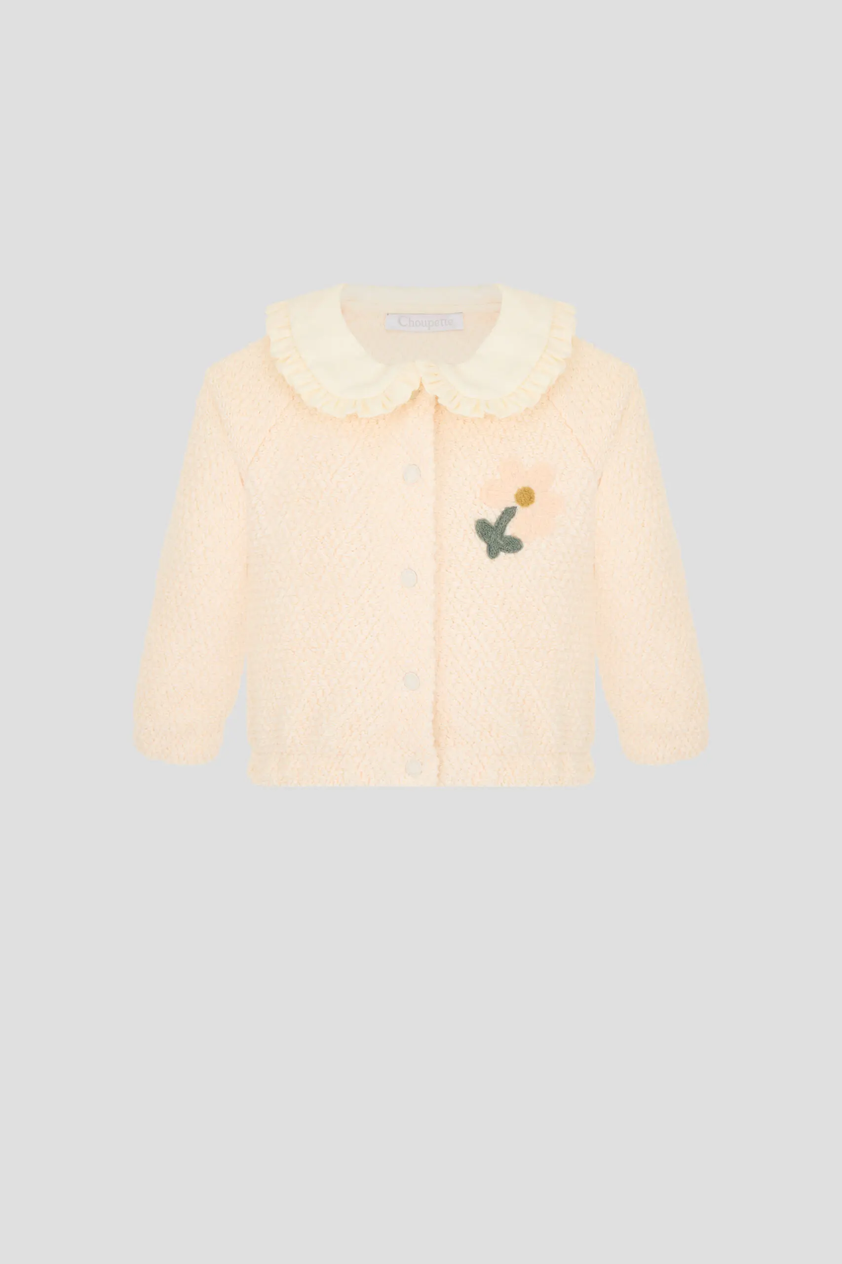 Лонгслив из фактурного мягкого футера выполнен в изысканном сливочном оттенке. Модель прямого силуэта украшена цветочной аппликацией в виде цветка. Очарования дизайну добавляет закругленный воротник с отделкой ... узким рюшем. Удобная застежка на кнопки ускоряет процесс переодевания малышки. Натуральный хлопок дарит ребенку комфорт, так как хорошо пропускает воздух и участвует в процессе терморегуляции.