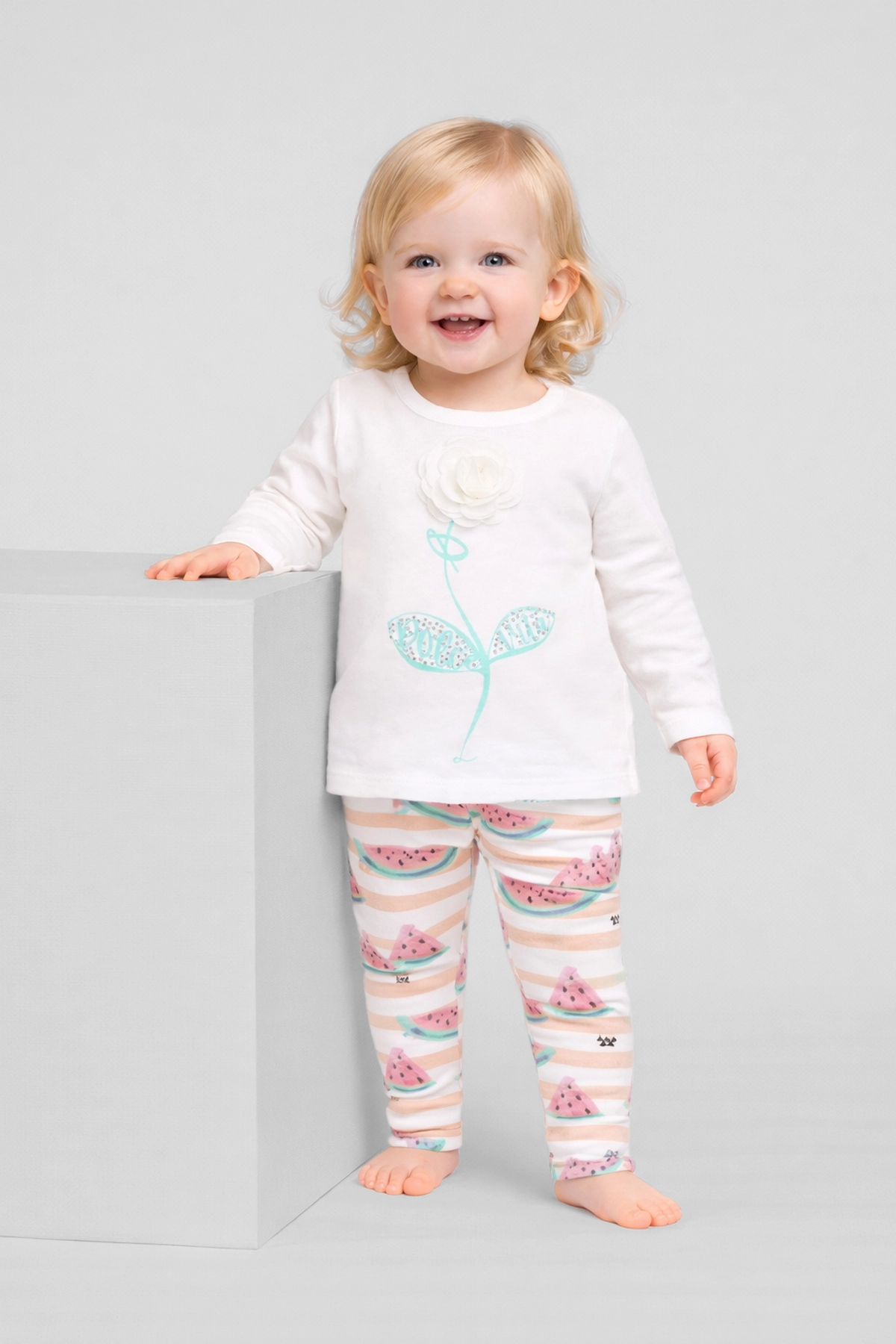 Очаровательный лонгслив для малышки непременно выделит её среди других. Изделие выполнено из лёгкого дышащего материала с мягкой текстурой, который бережно соприкасается с кожей и обеспечивает комфорт в ... течение всего дня. Свободный крой с длинными рукавами не сковывает движений, позволяя ребёнку активно играть и чувствовать себя свободно. Ткань хорошо пропускает воздух, помогая поддерживать оптимальную температуру в любое время года. Изящный декоративный принт с цветочным мотивом и аккуратные объёмные детали придают модели нежный и стильный вид. Сдержанный дизайн делает лонгслив универсальным — он легко сочетается с различными элементами гардероба.