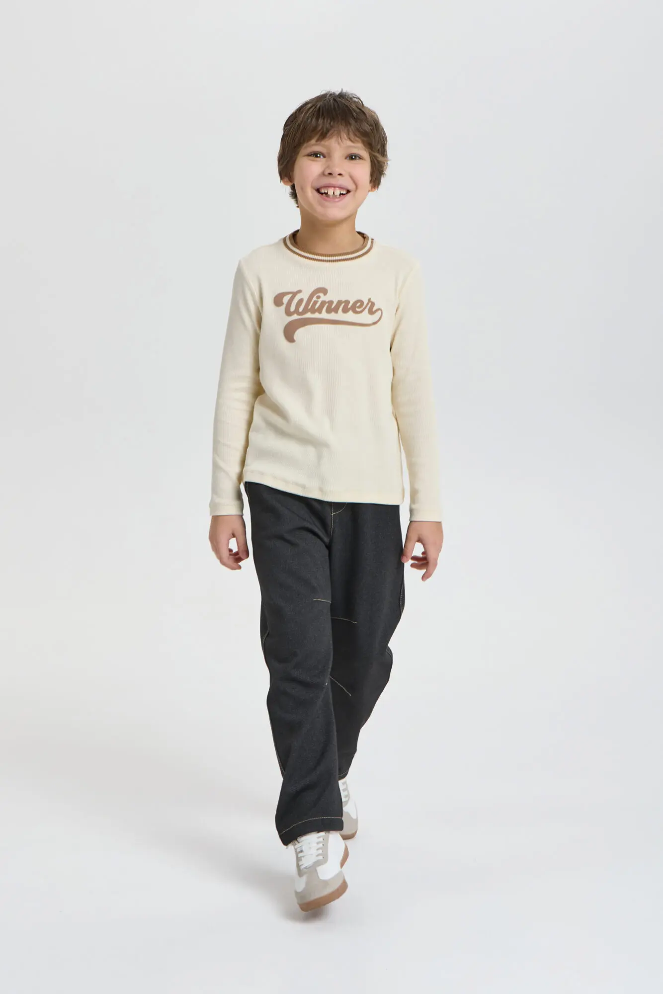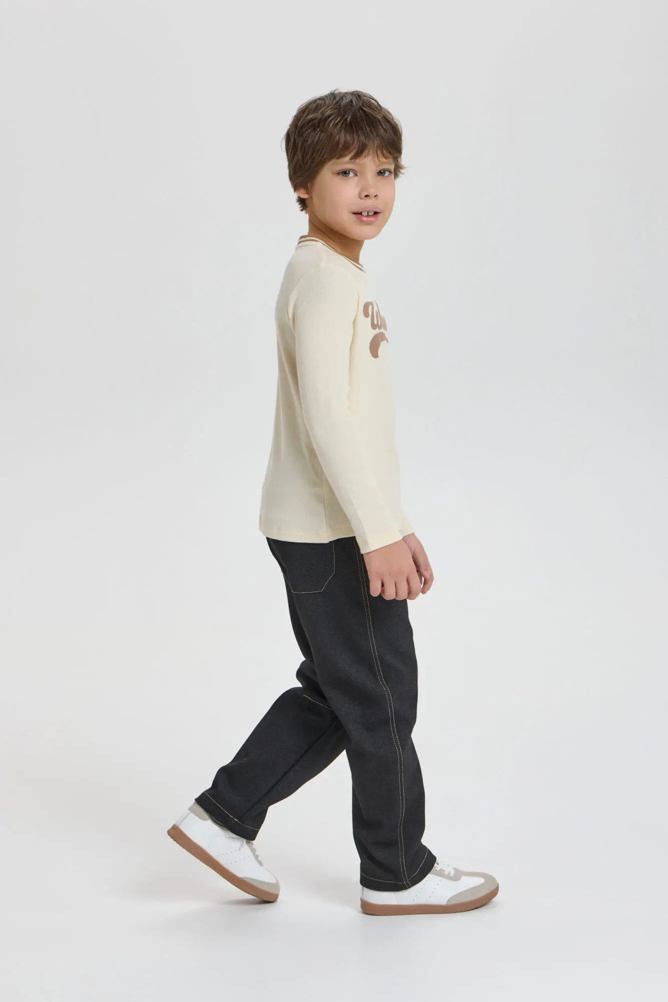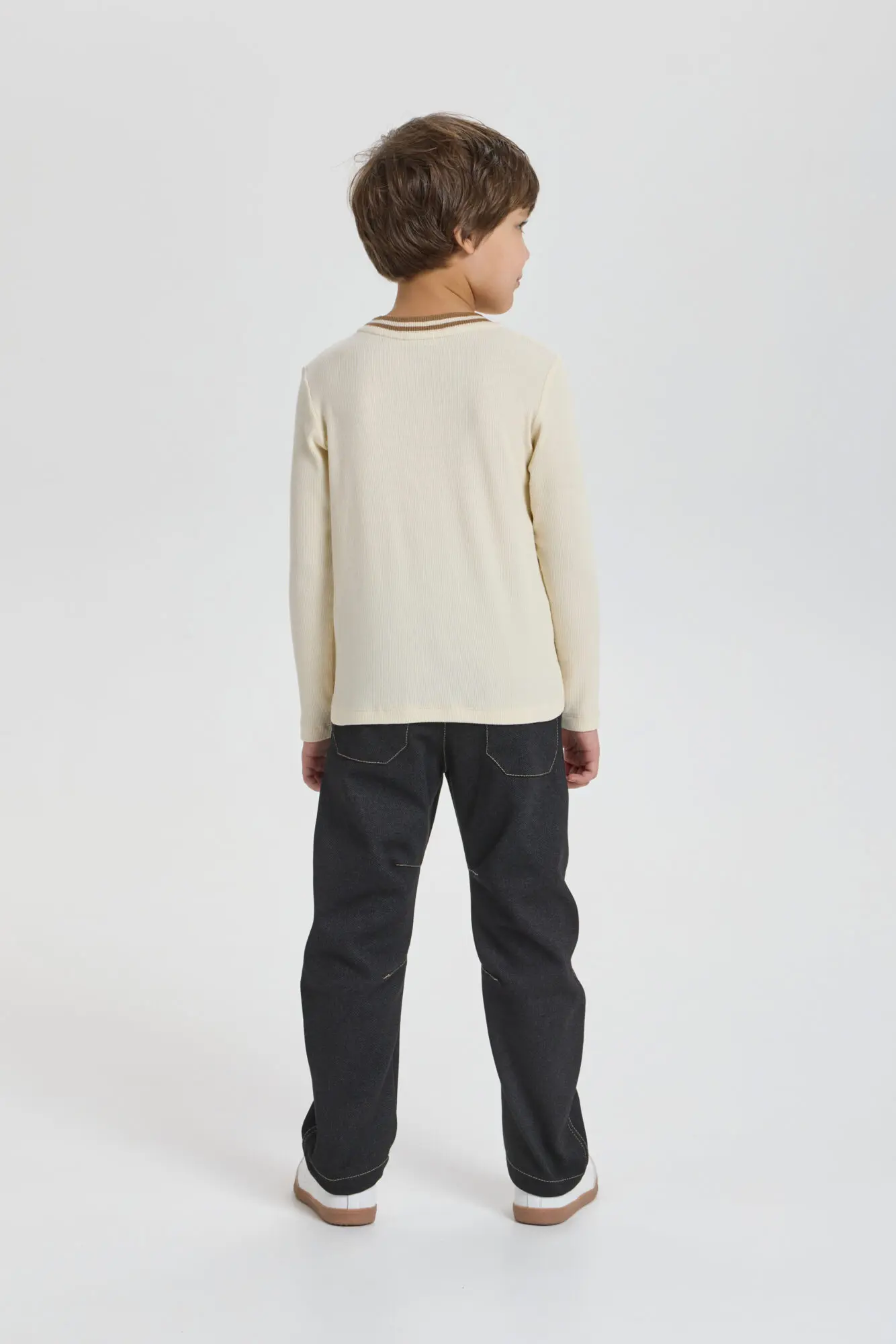 Функциональный джемпер для мальчика – это актуальный и удобный предмет гардероба, подходящий для разных случаев. Оригинальный крой и современный дизайн выделяют эту модель среди прочих. Джемпер ... имеет прямой силуэт и длинные рукава. Круглый ворот обработан акцентной бейкой. Модель изготовлена из ткани с высоким процентом хлопка в составе. Нейтральный бежевый оттенок позволяет формировать выразительные и современные образы.