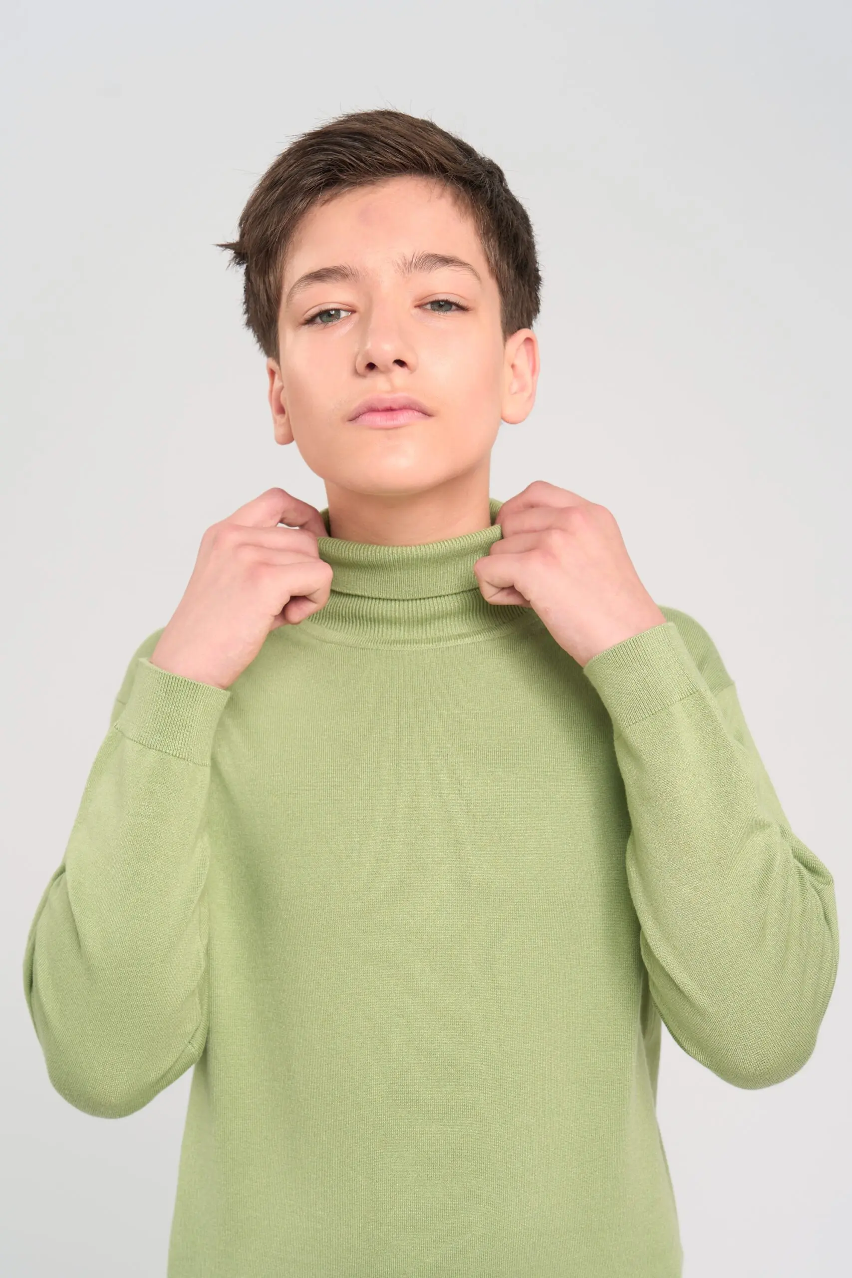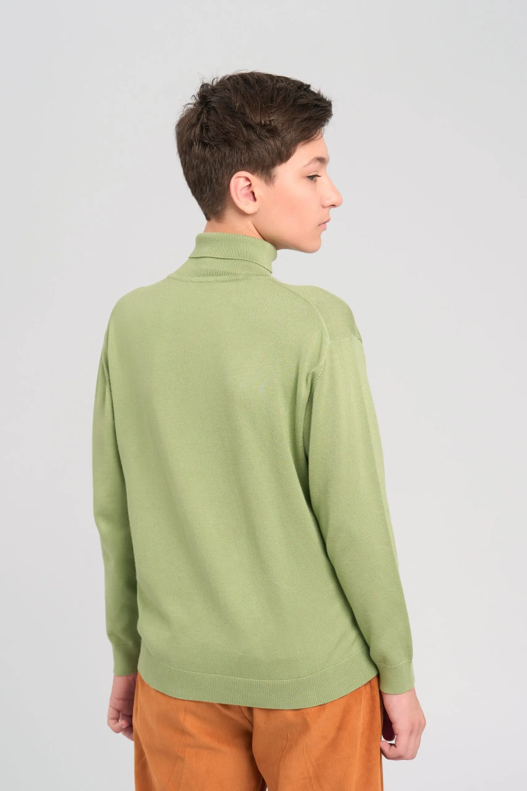 Вязаная водолазка оливкового оттенка для мальчика идеально подходит на роль базового элемента детского гардероба. Модель имеет лаконичный дизайн, изысканная простота которого и привлекает внимание. Изделие комфортного ... прямого силуэта со спущенной линией плеча не сковывает движения. Абсолютный комфорт обеспечивает качественная смесовая ткань на основе вискозы. Материал обладает высокой воздухопроницаемостью, что обеспечивает комфорт в носке.
