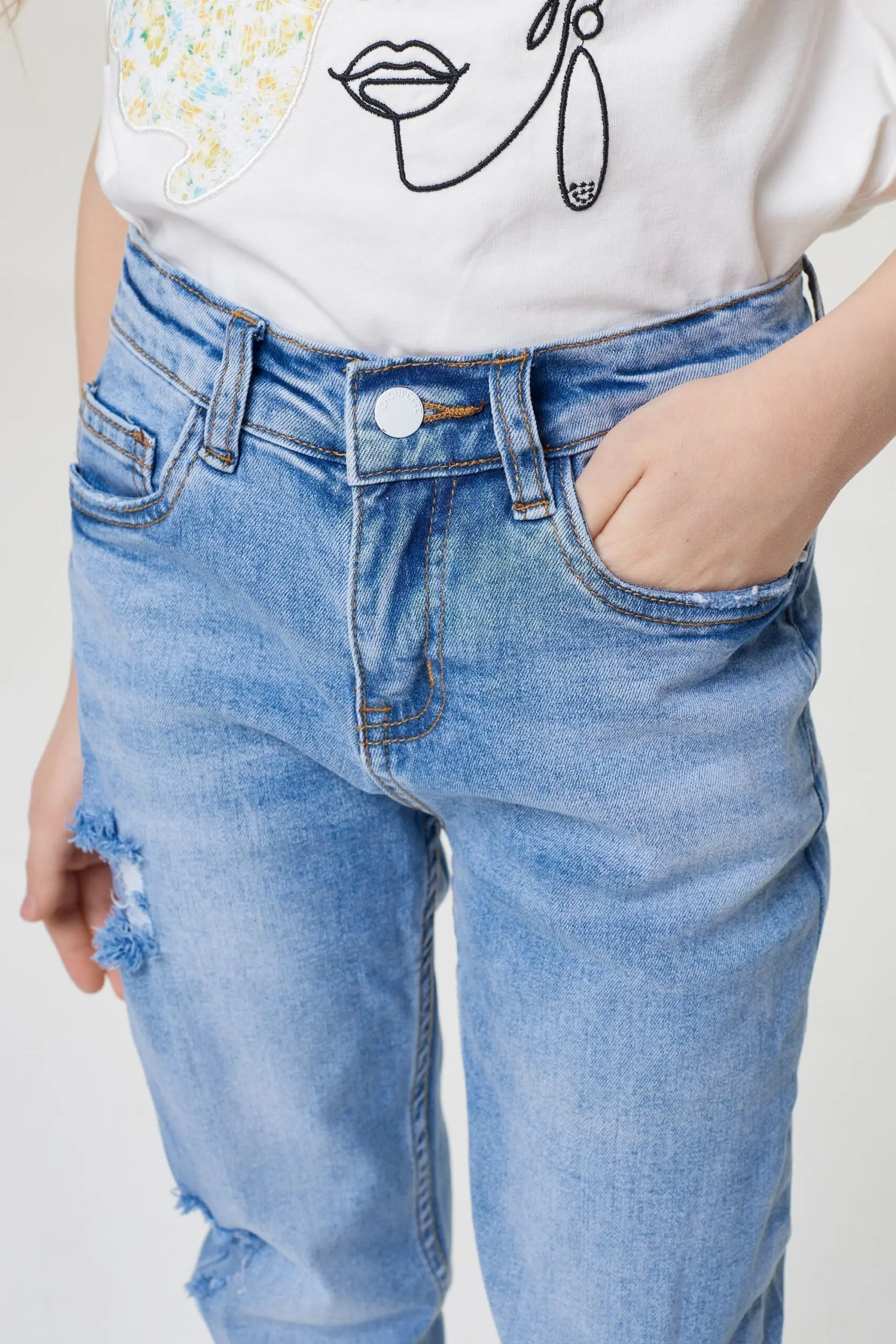 Джинсы с элементами стиля гранж - идеальный способ добавить изюминку в гардеробе юной модницы.