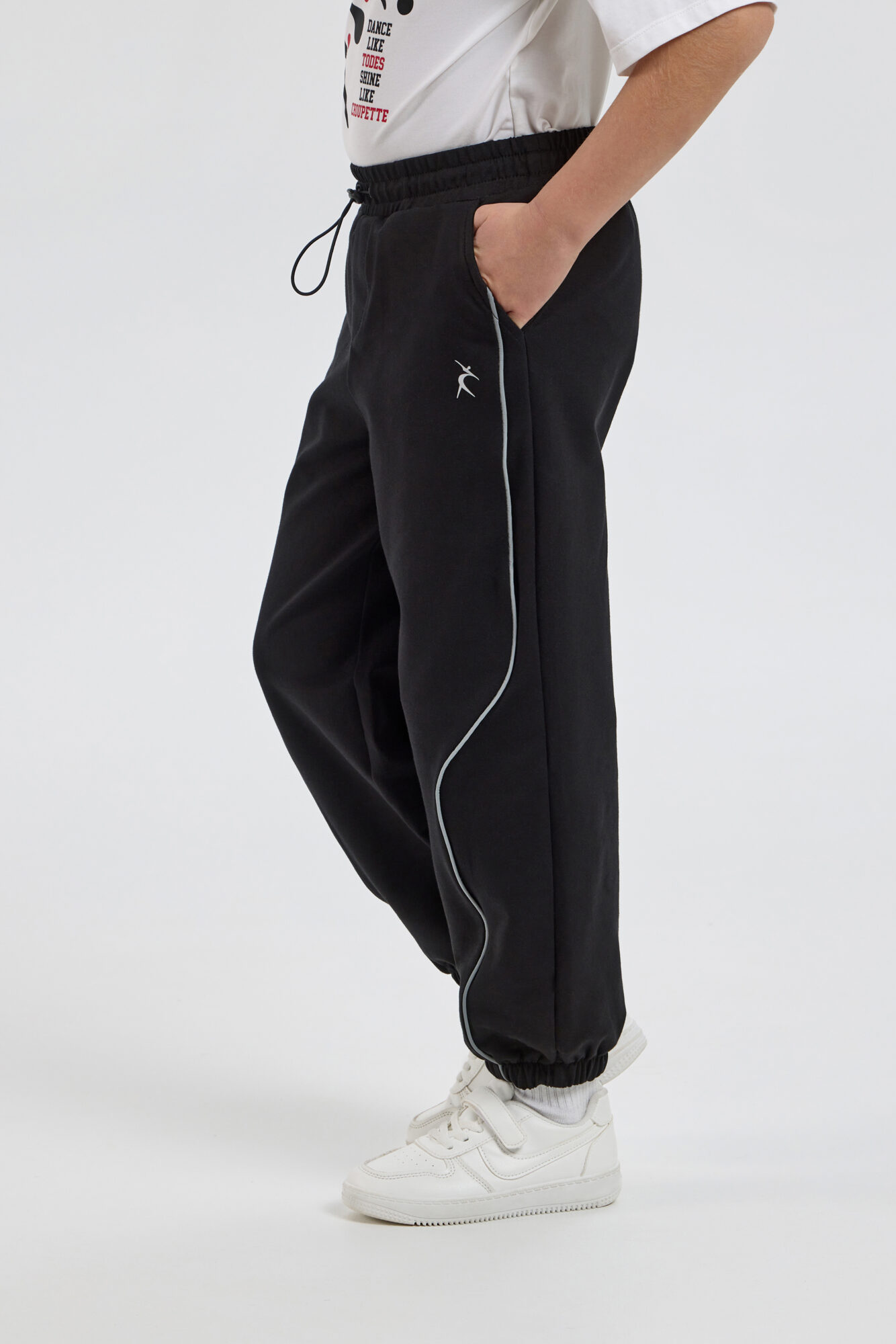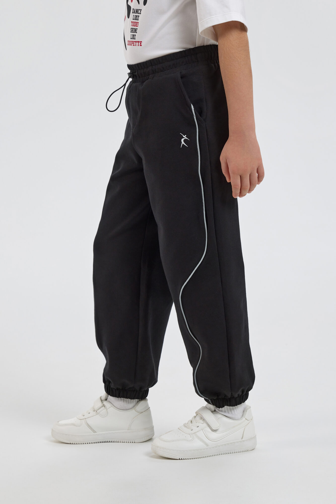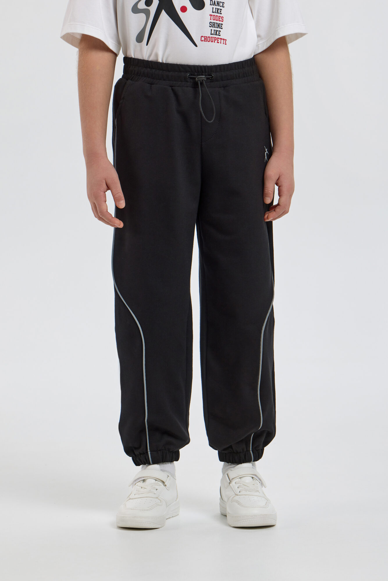 Спортивные брюки-джогеры от совместной коллекции TODES х Choupette удачно совмещают практичность и эффектный дизайн. Изделие свободного силуэта выполнено из чёрного неопрена и дополнено светоотражающими полосами по ... всей длине брючин. Эластичная резинка на талии и внизу каждой брючины обеспечивают идеальную посадку. Джогеры прекрасно подойдут для городских и повседневных луков, а также будут отличным выбором для занятий спортом, танцами и сценических номеров.