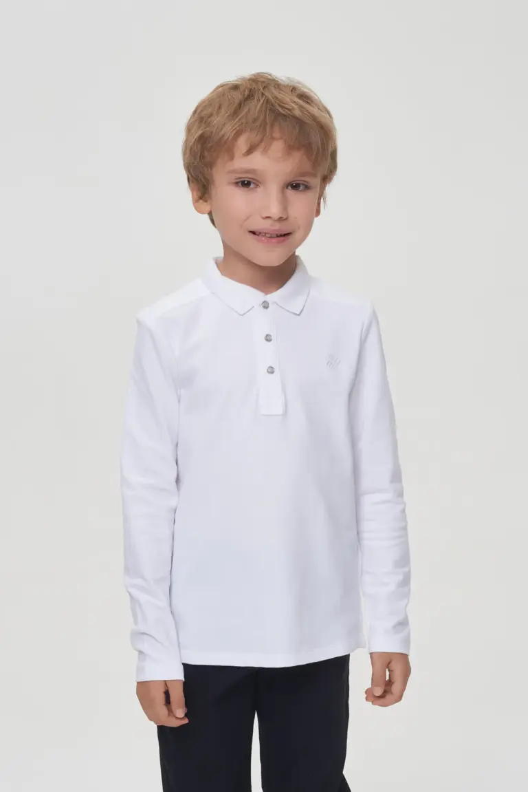 Белая школьная рубашка-поло для мальчика – это не только элемент одежды, но и значимая составляющая опрятного и модного облика ученика. В ней гармонично сочетаются удобство обычной ... футболки и элегантность традиционной рубашки, что делает ее идеальным вариантом для учебы и различных школьных мероприятий. Благодаря классическому пошиву, эта рубашка-поло является универсальной. Отличительный отложной воротник с застежкой на пуговицах придает внешнему виду сдержанность и элегантность, а длинные рукава гарантируют комфорт в холодную погоду. Дополняет дизайн вышитый логотип торговой марки.