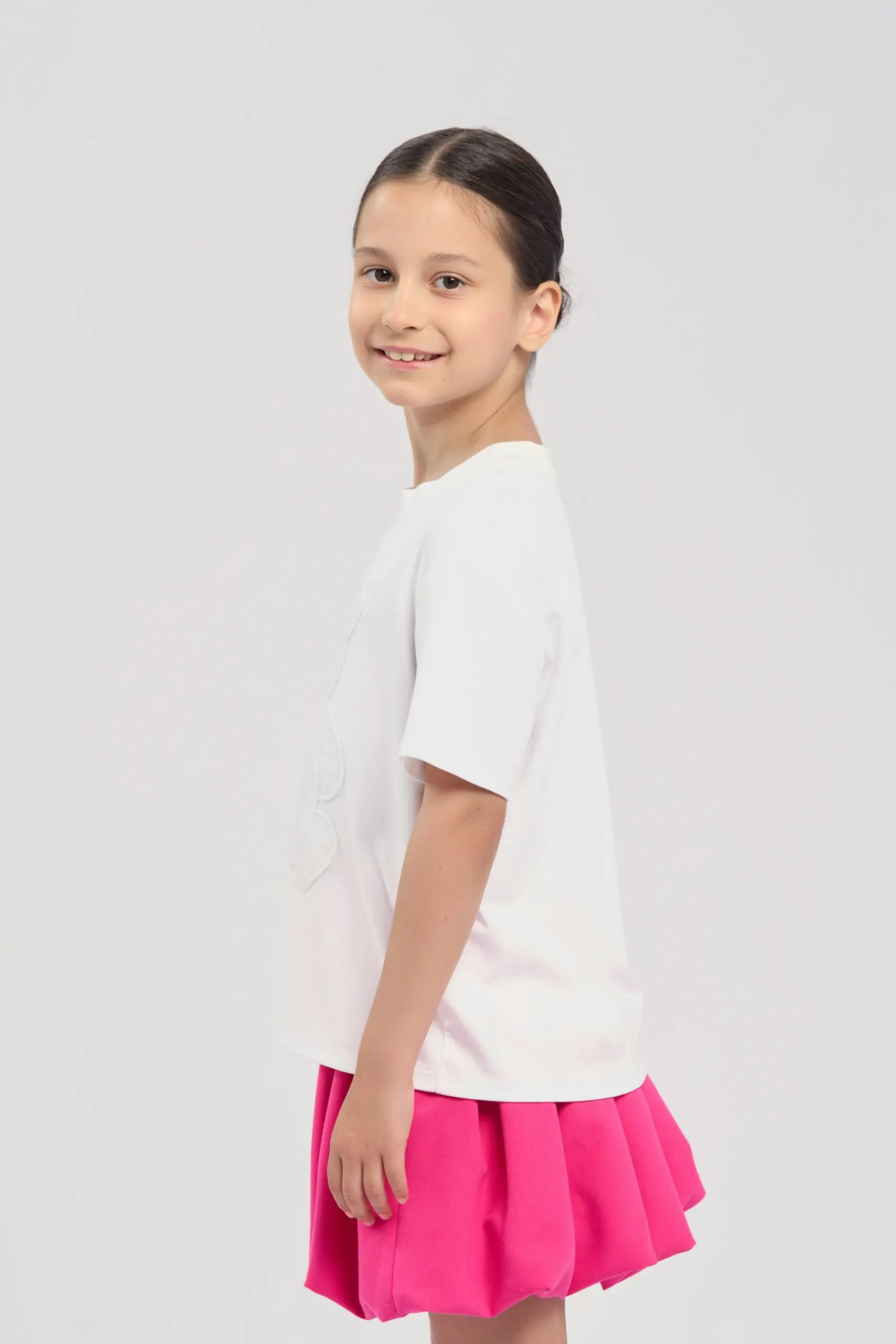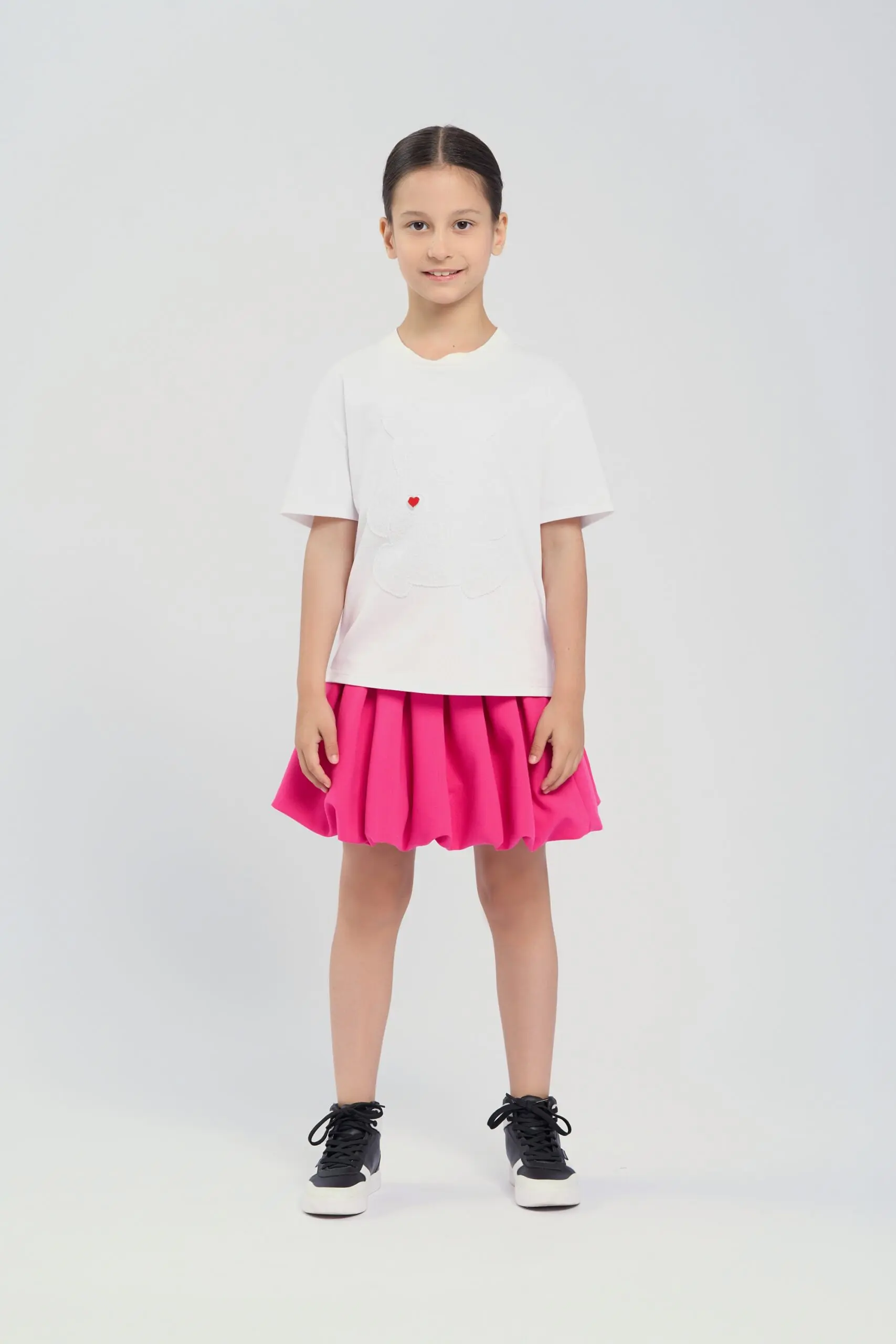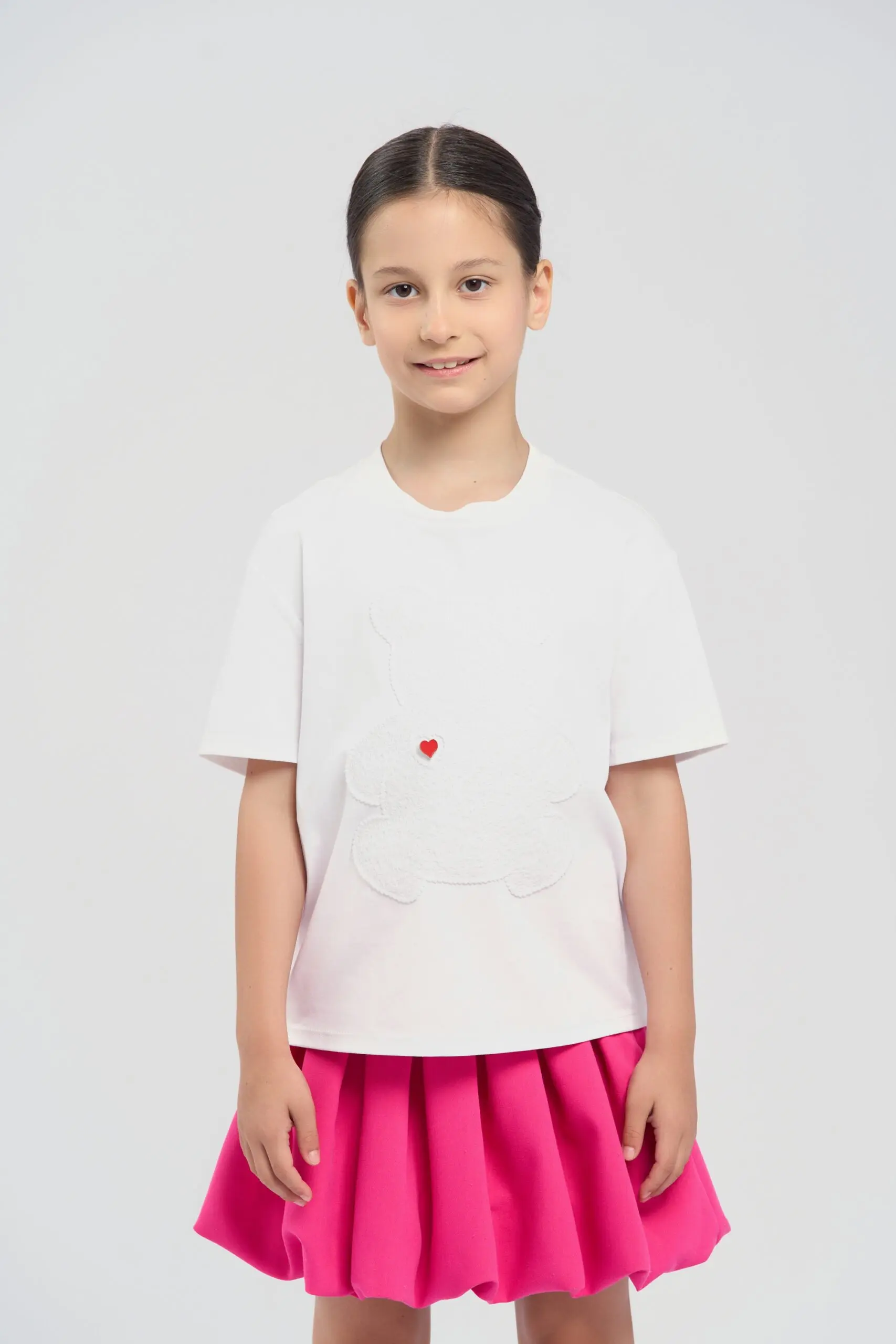 Базовая белая футболка для девочки выполнена из мягкого и дышащего хлопкового материала, что обеспечивает комфорт в течение всего дня. Она имеет классический прямой крой и короткие ... рукава, что делает её идеальной для повседневной носки. Главным акцентом дизайна стала крупная аппликация в виде фактурного медведя белого цвета. Футболка легко сочетается с джинсами, шортами или юбками, а также может быть отличной основой для создания ярких летних образов.
