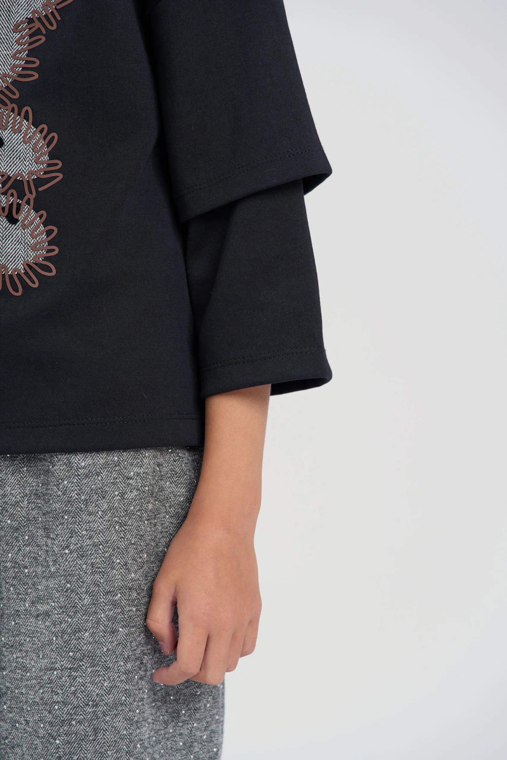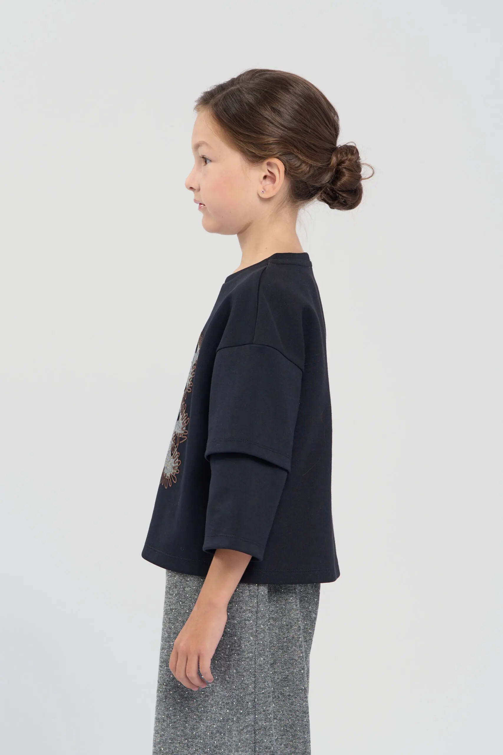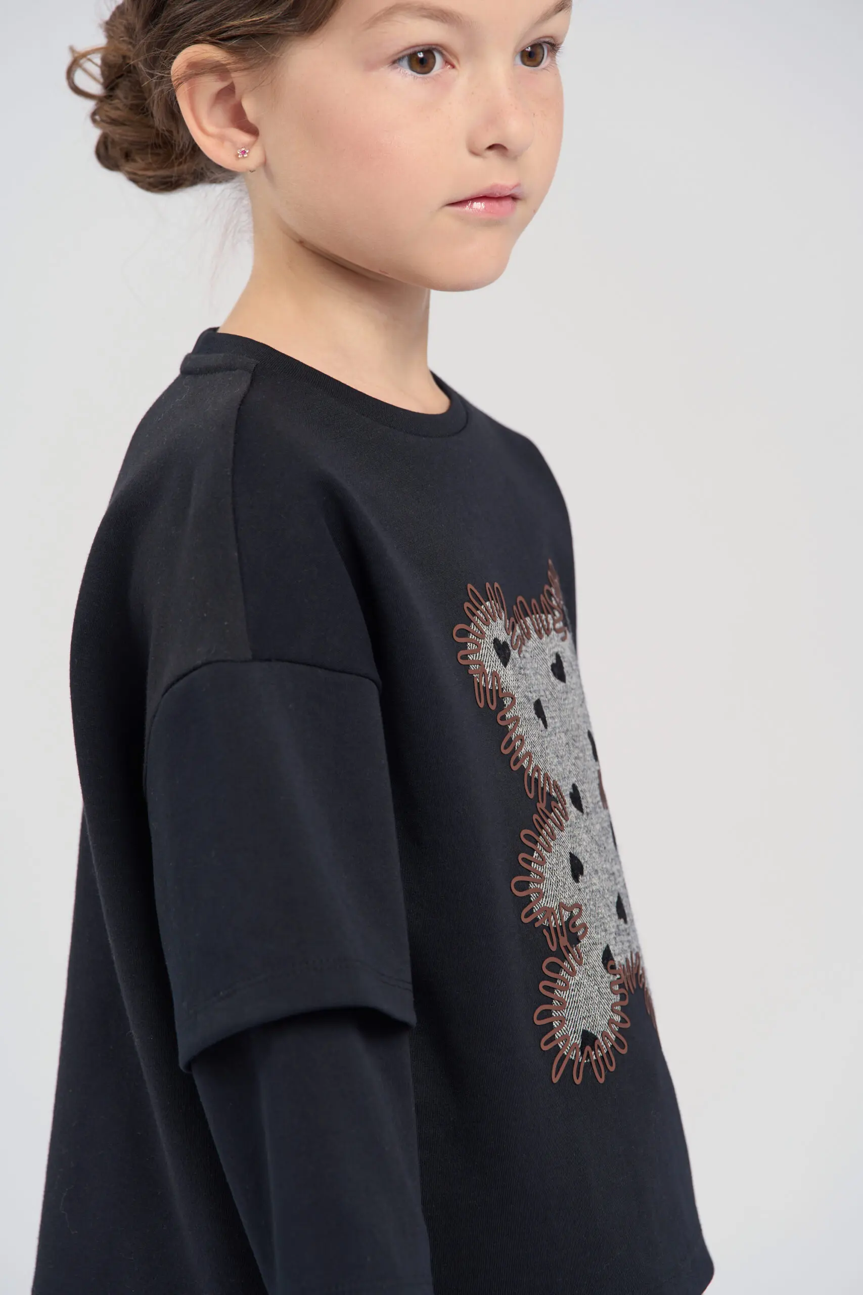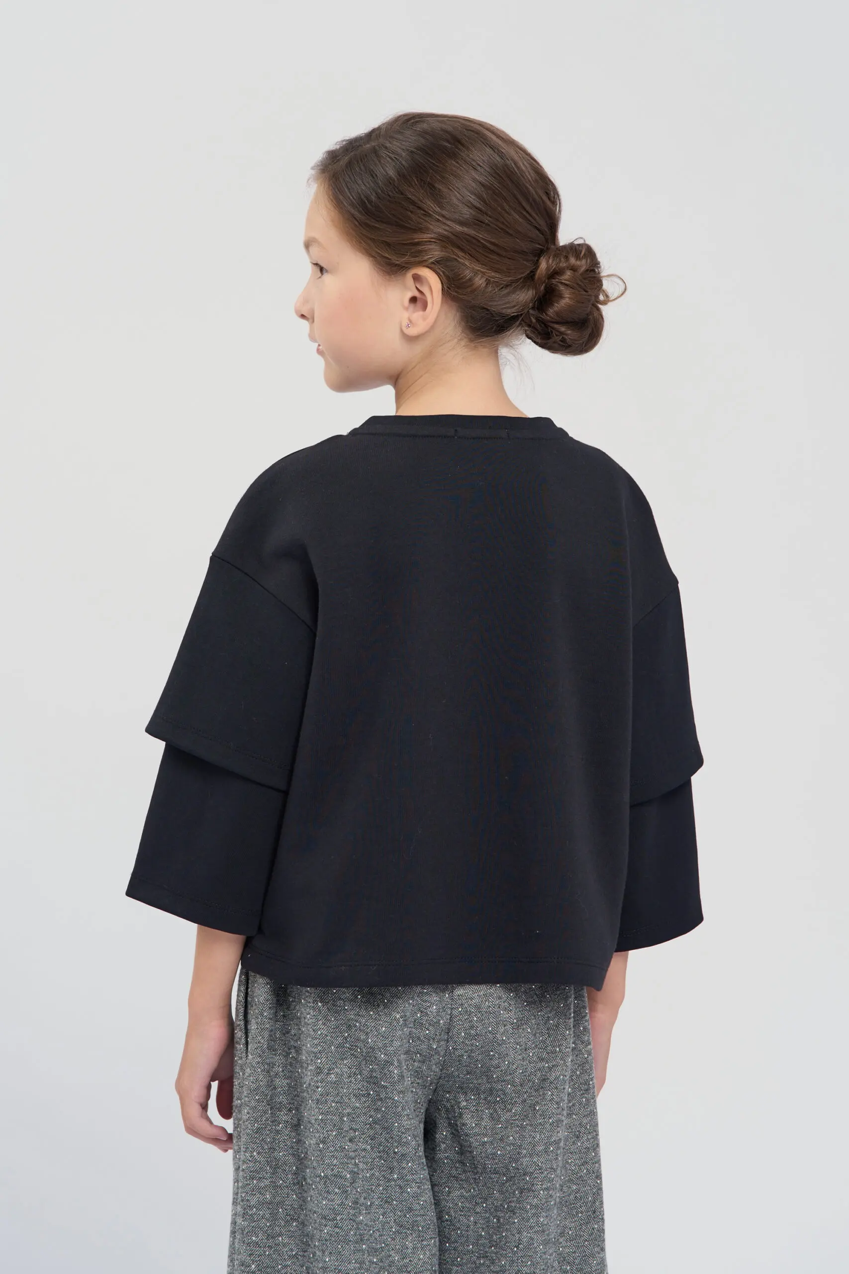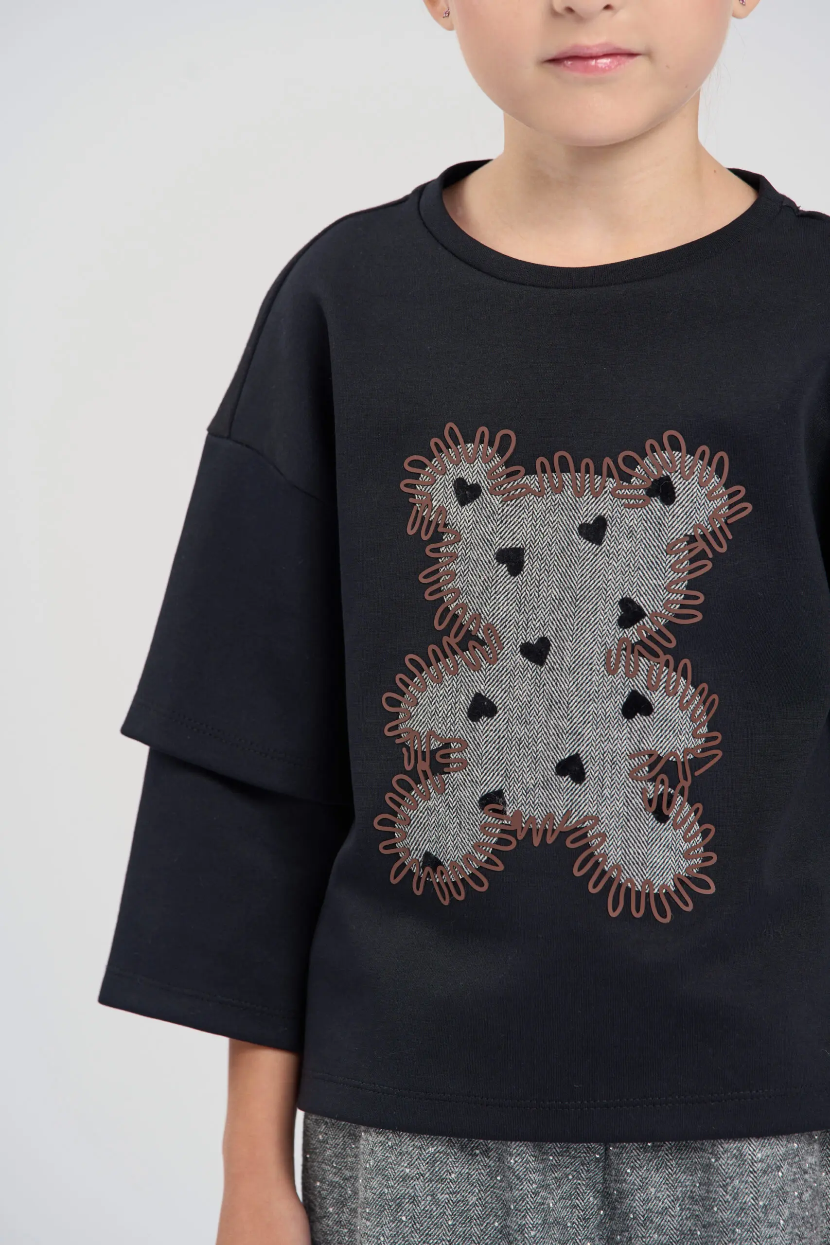 Футболка для девочки выполнена в универсальном черном цвете. С лицевой стороны расположен милый декор в виде мишки. Особое внимание привлекают оригинальные двухслойные рукава, которые добавляют изделию ... современное звучание. Модель выполнена из натурального хлопка, что обеспечивает максимальный комфорт и воздухопроницаемость. Мягкий трикотаж приятно ощущается на коже и идеально подходит для повседневной носки.