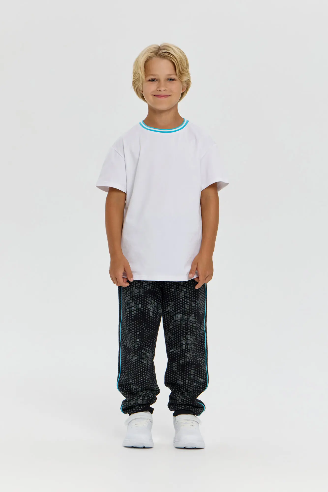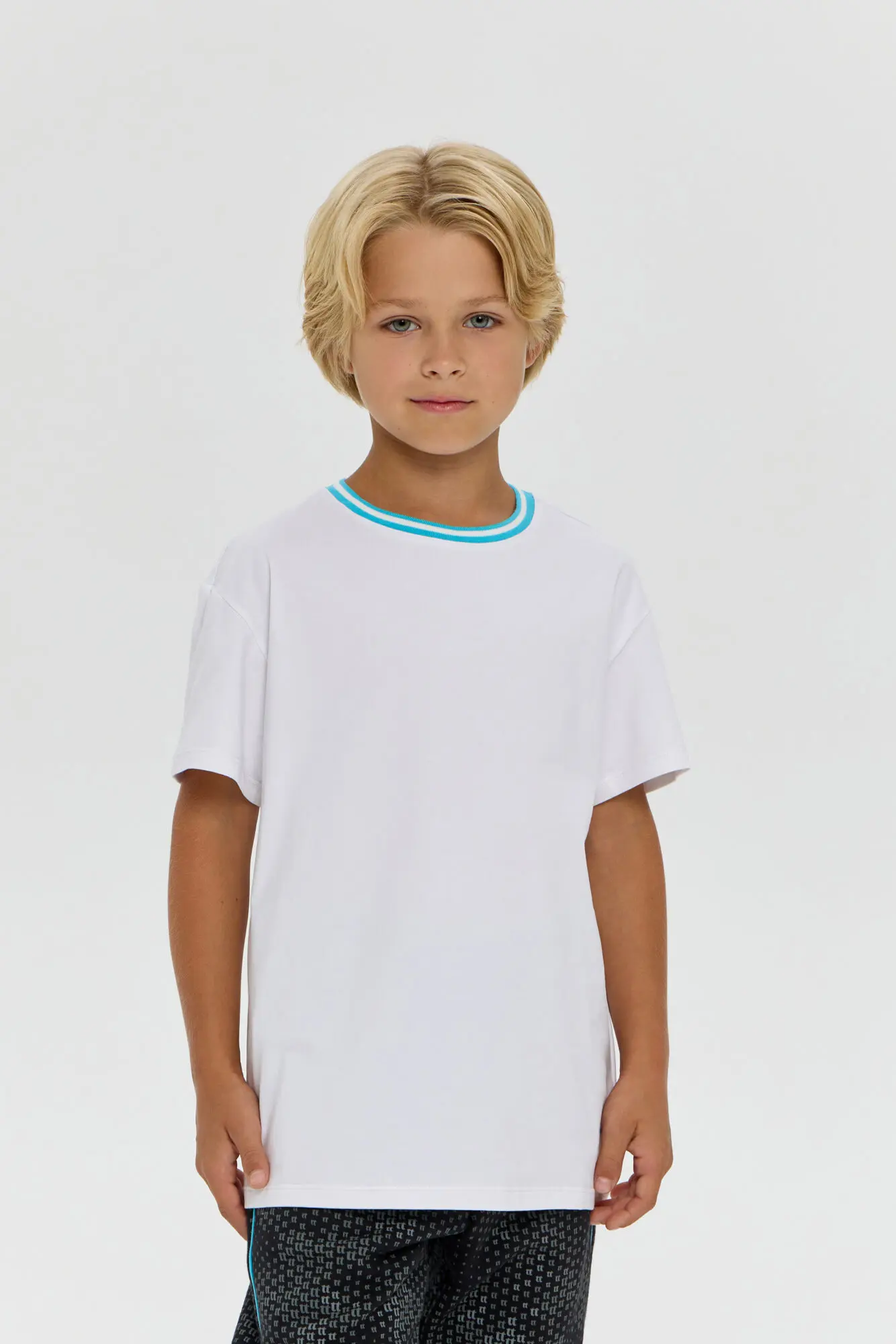 Футболка белого цвета послужит основой для создания различных образов в гардеробе мальчика. Модель выполнена из воздухопроницаемого и лёгкого материала оптимального для спортивных тренировок и подвижных игр ... на свежем воздухе, а наличие эластана гарантирует сохранение первоначального вида даже после активной эксплуатации и стирок. Прямой силуэт не сковывает движения, а нейтральный белый оттенок позволяет без труда сочетать футболку с любыми брюками или шортами.