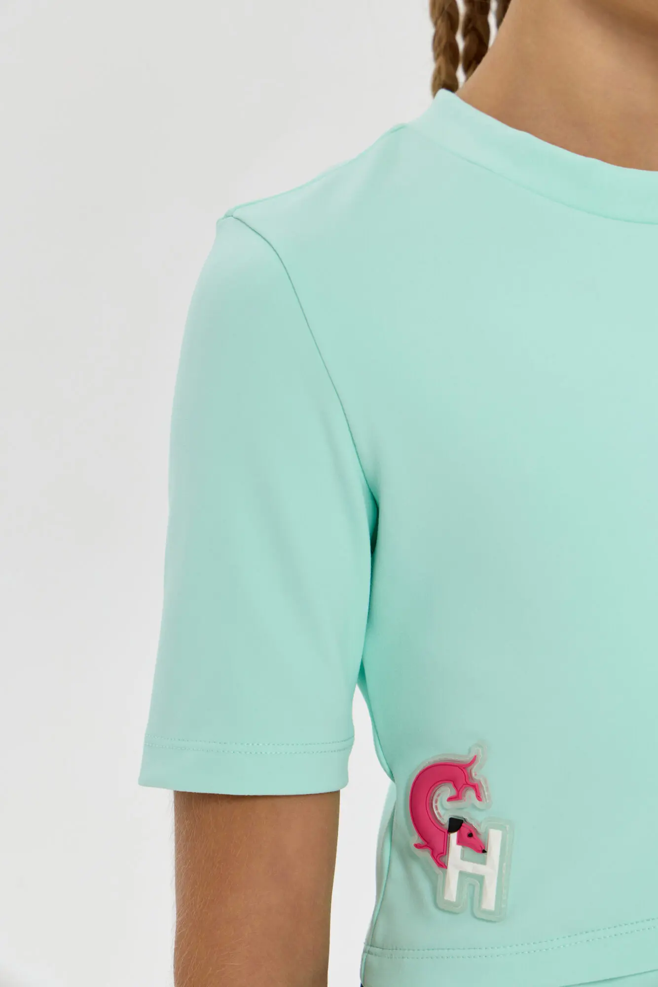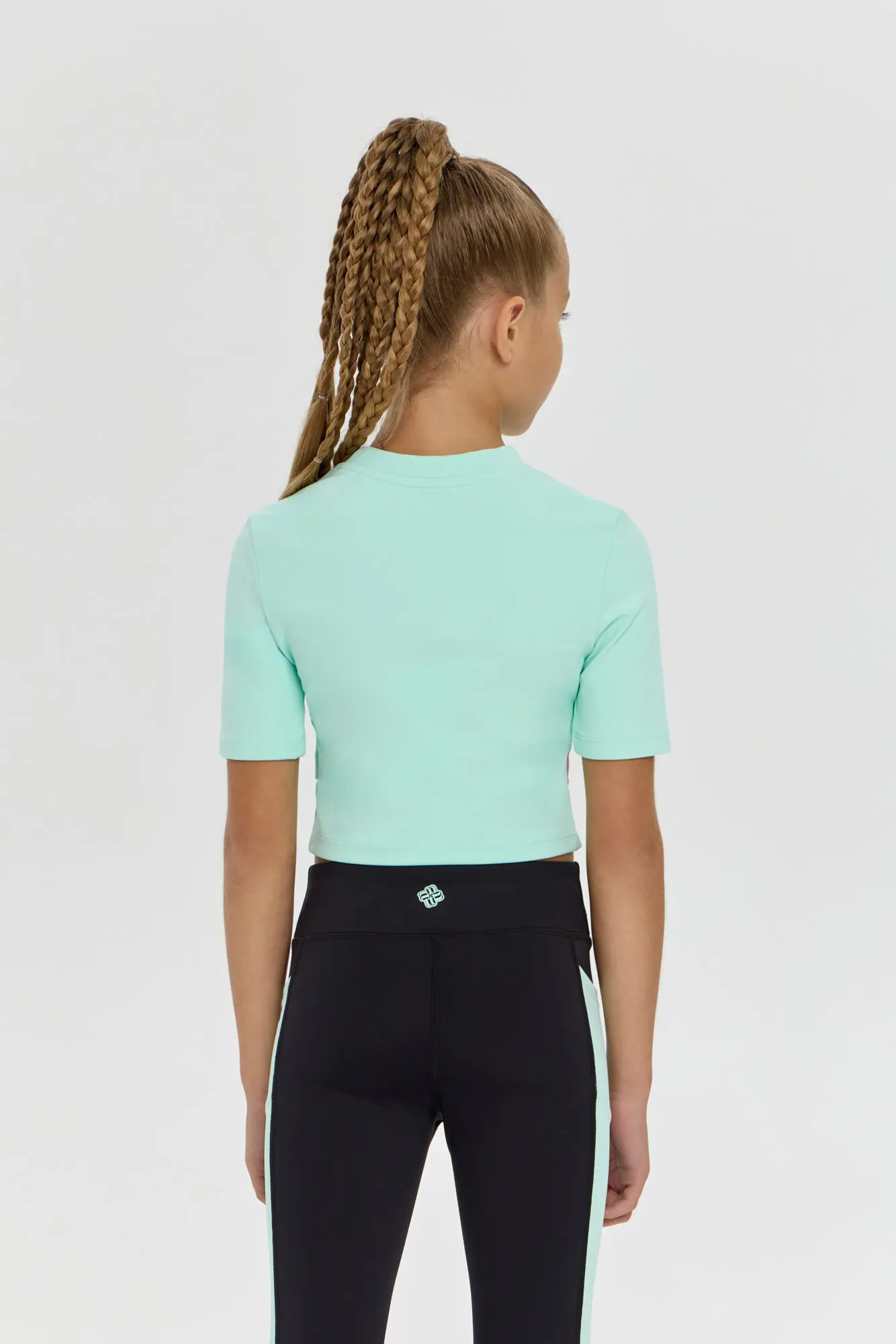 Спортивная футболка укороченного дизайна разработана специально для активных юных леди, стремящихся к стильному внешнему виду и удобству. Материал с применением технологии CH Dry отличается приятной текстурой, ... гарантирует отличную циркуляцию воздуха и быстро сохнет. Укороченная модель превосходно комбинируется с лосинами или спортивными брюками, формируя современный спортивный силуэт. Идеальный выбор занятий в спортивном зале, хореографических классов и активного времяпрепровождения на улице.