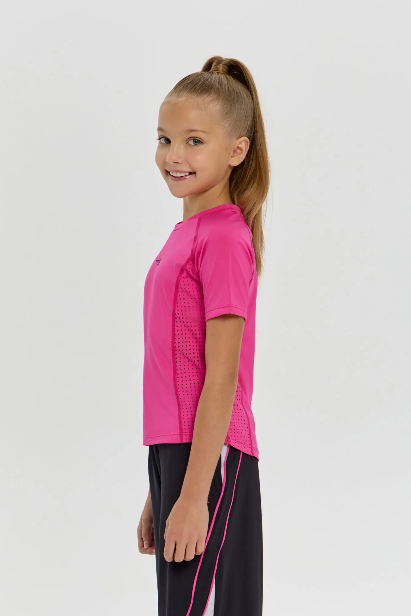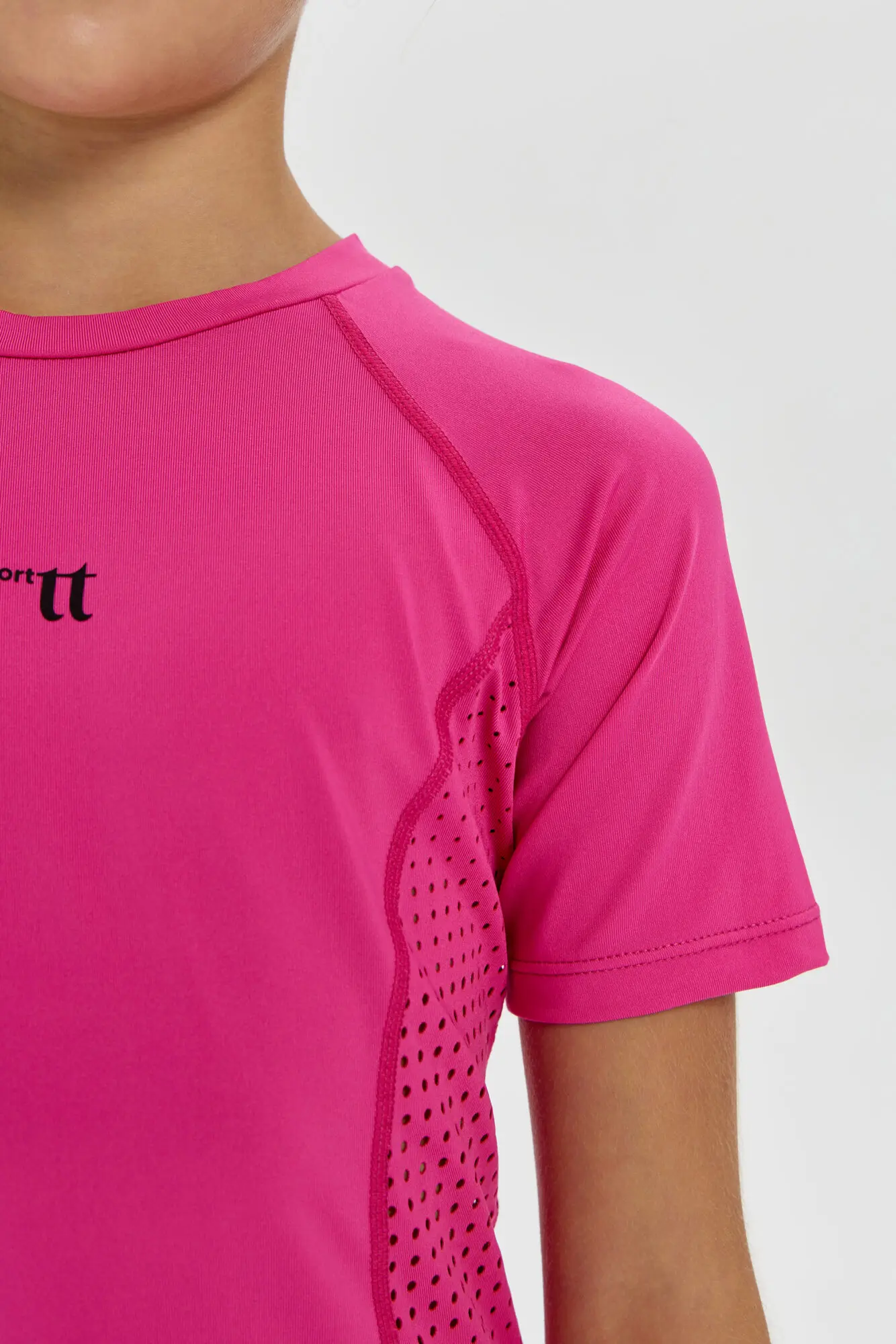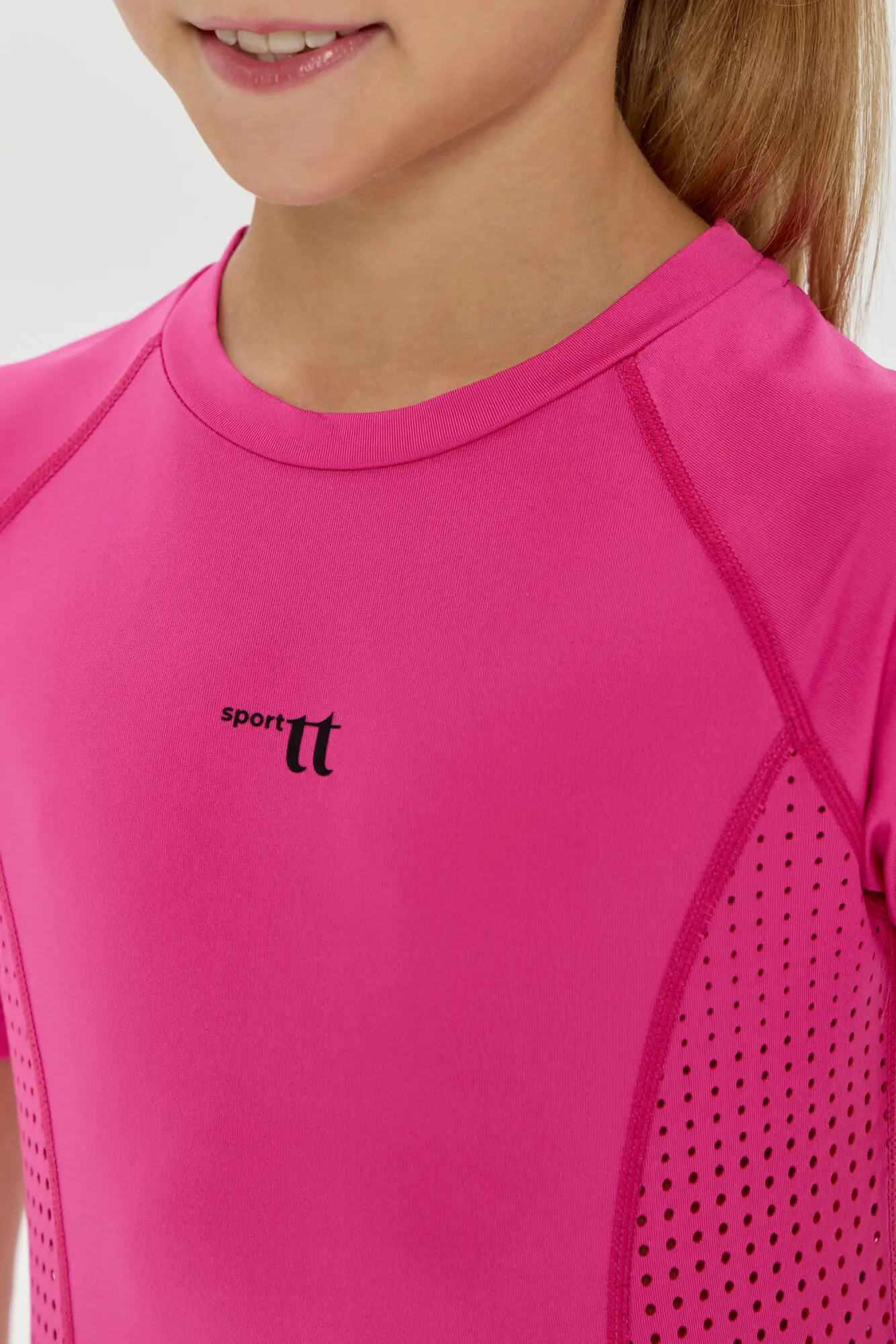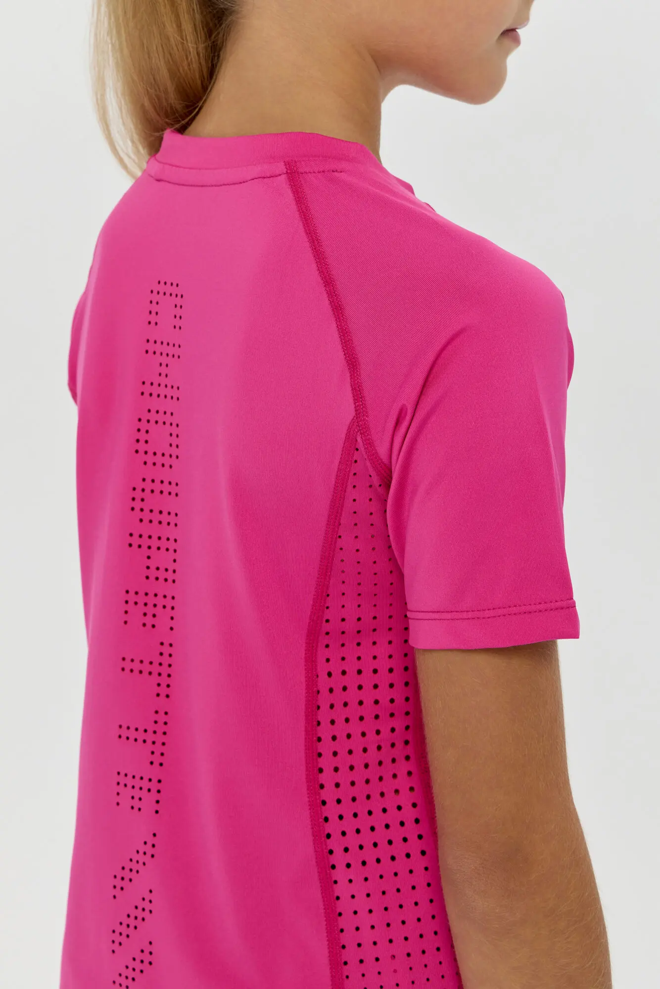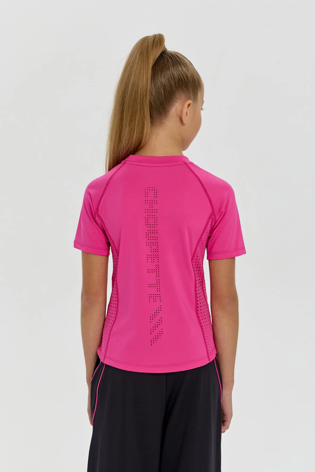 Футболка насыщенного цвета фуксия добавит яркий штрих в гардероб юной любительницы спорта. В основе модели лежит технологичная ткань CH Dry с перфорацией. Благодаря перфорации, ткань обладает ... улучшенной воздухопроницаемостью, позволяя коже дышать. Лёгкая и комфортная посадка футболки не сковывает движений, позволяя девочке чувствовать себя максимально свободно. Она идеально сочетается с леггинсами или спортивными штанами свободного кроя.