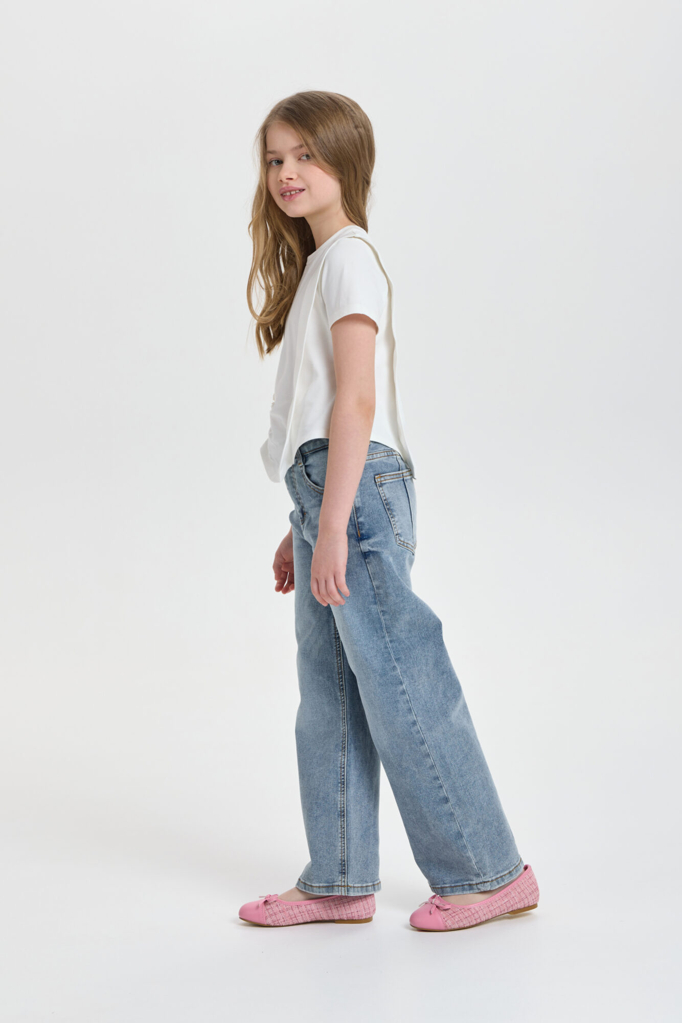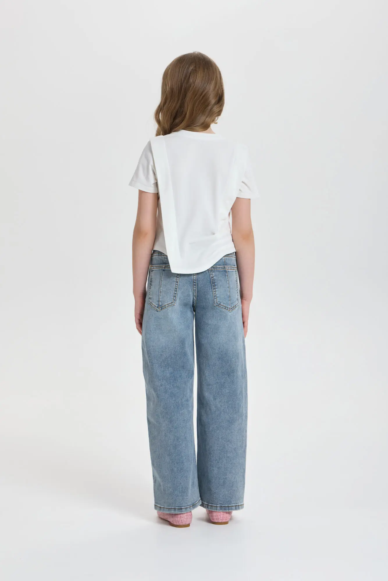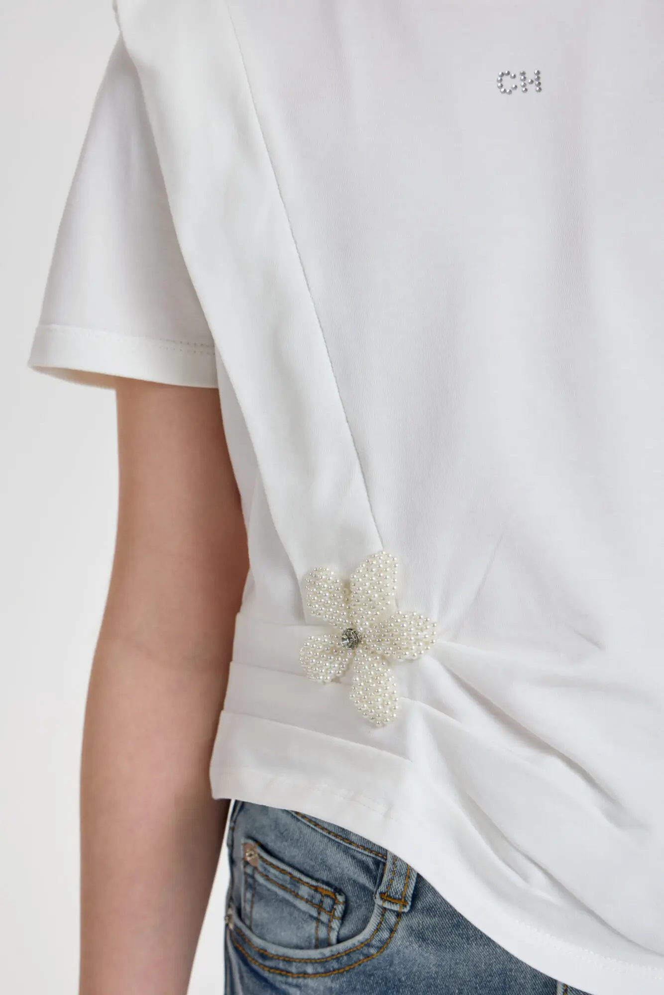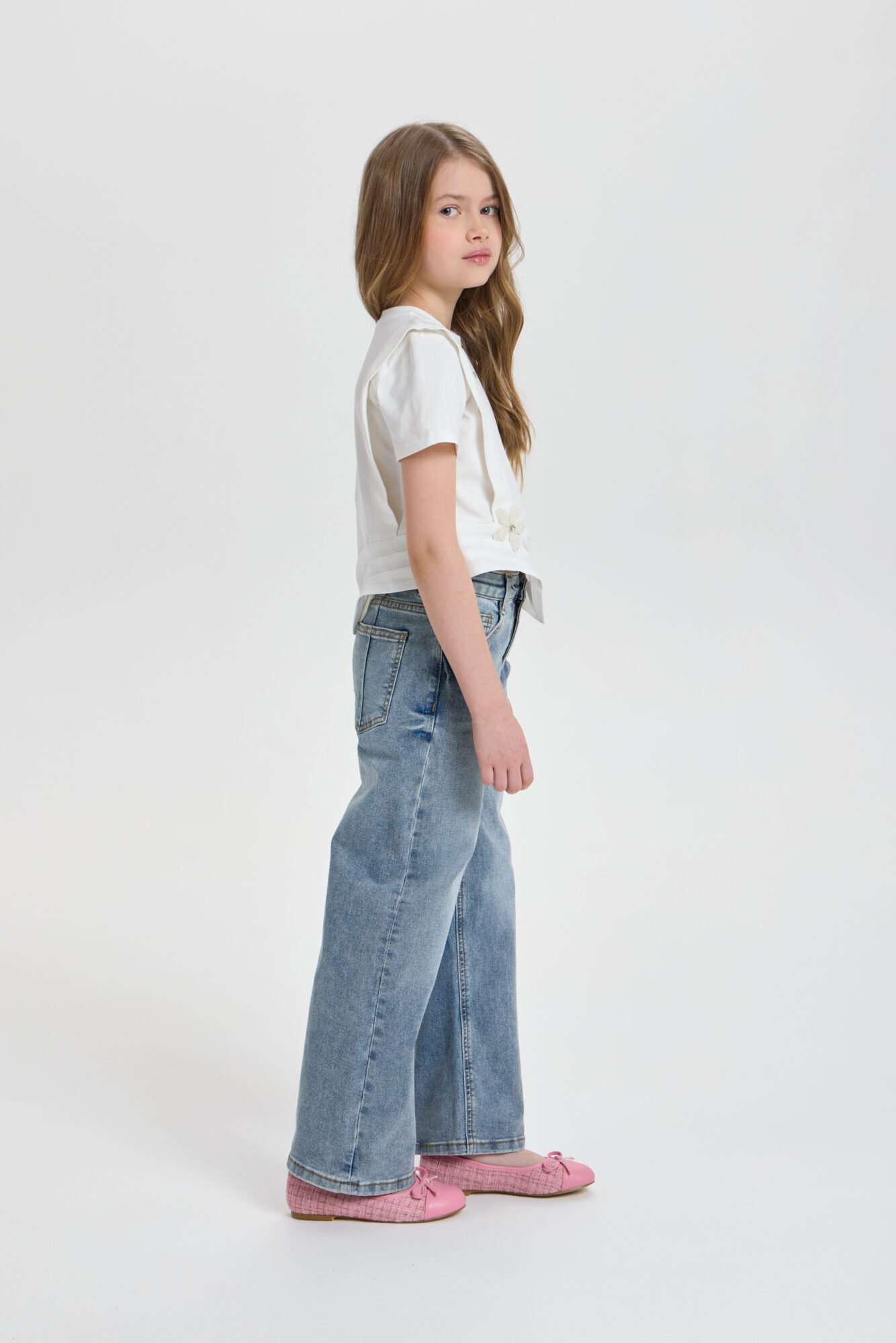 Футболка декором для девочки универсальная модель для любого случая. Футболка свободного кроя, рукава короткие, оригинальность изделию придает асимметричный подол и объёмный декор. Модель идеально подходит как ... для ежедневной носки, так и для праздничного события. Прекрасно комбинируется с брюками, джинсами и юбками.