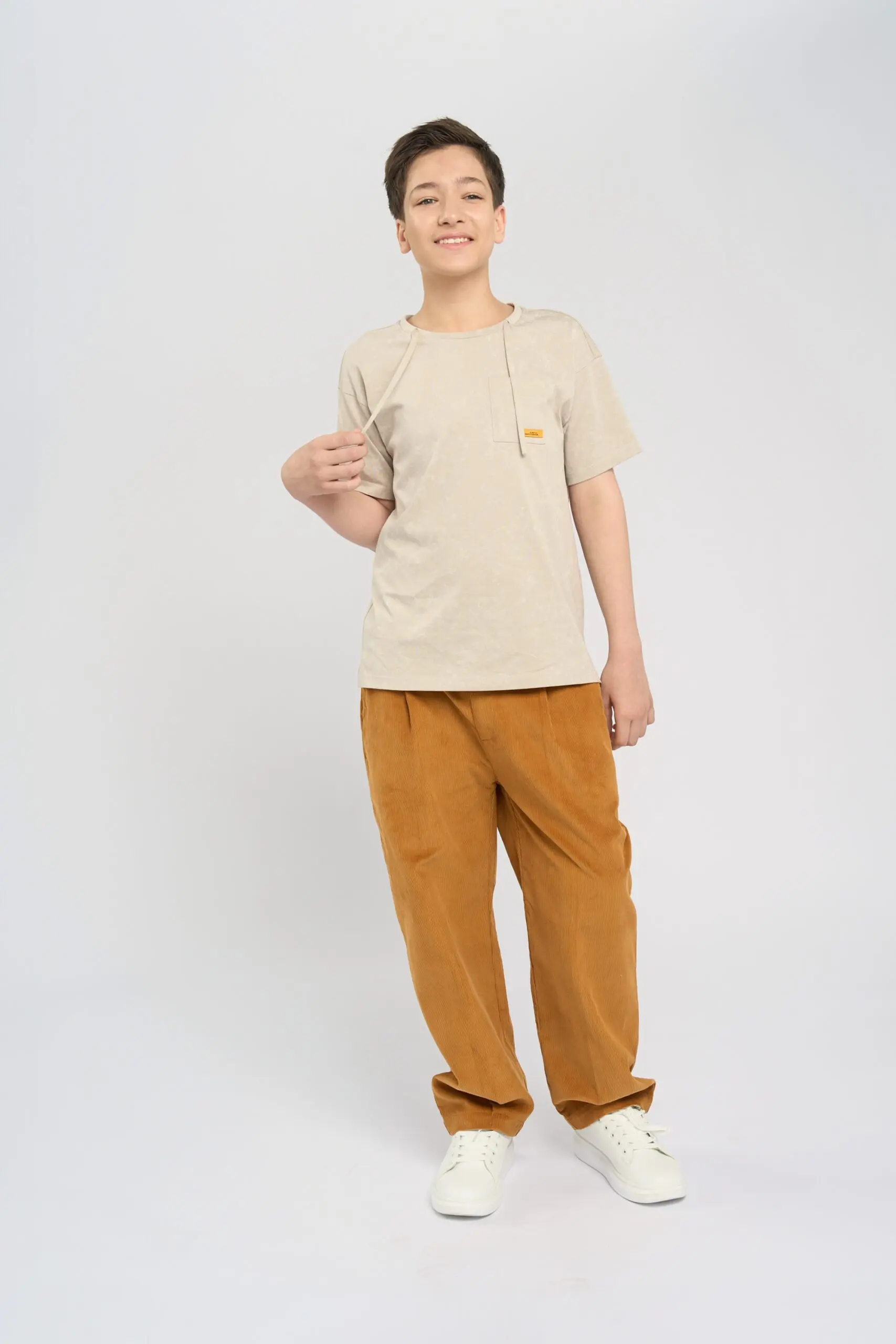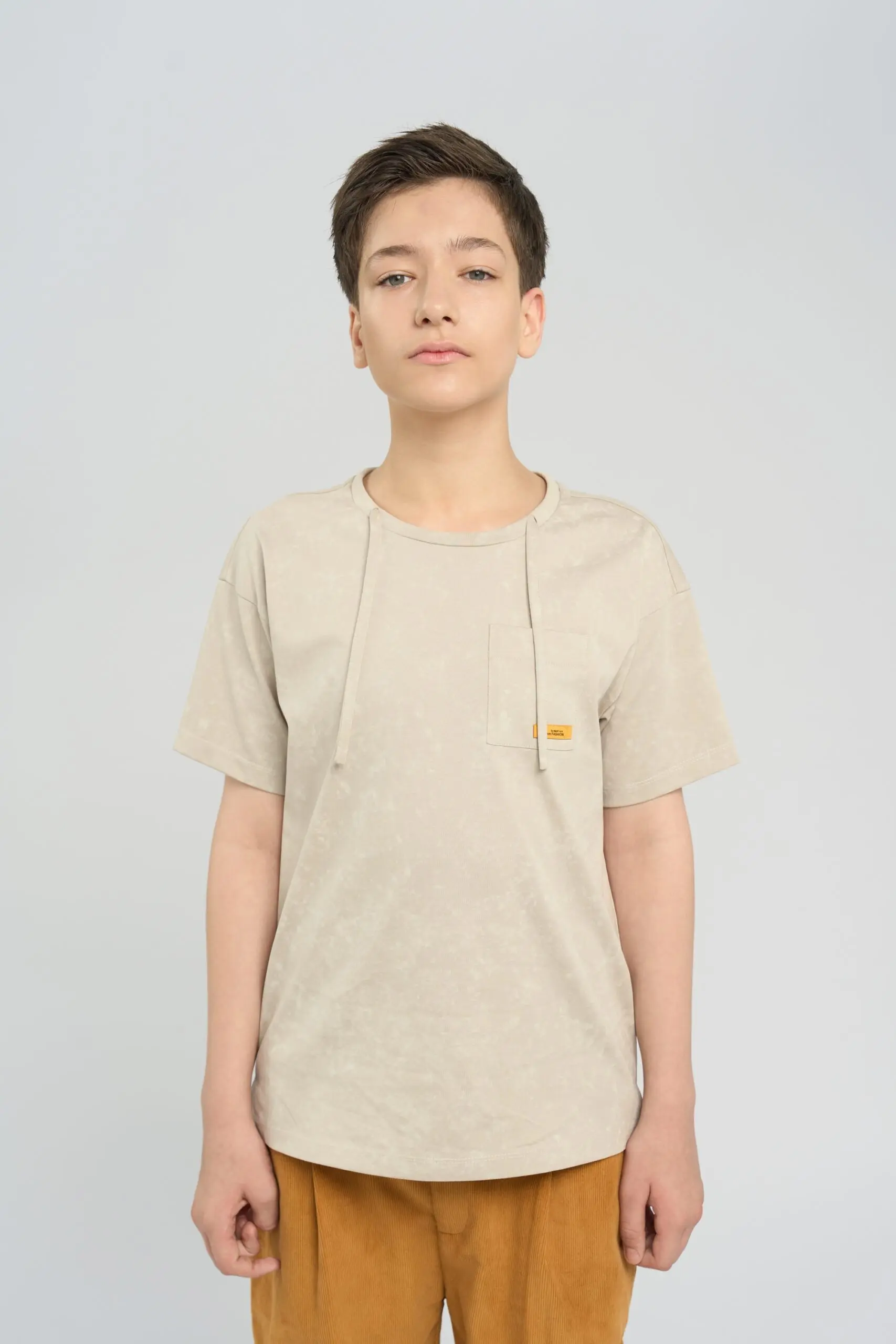 Базовая футболка для мальчика выполнена в универсальном сером оттенке, поэтому отлично сочетается с любой одеждой гардероба. Модель комфортного прямого силуэта с короткими рукавами и круглым вырезом ... горловины, который дополнен утягивающими кулисами. Накладной нагрудный карман дополнительно украшает дизайн. Модель выполнена из ткани с высоким содержанием хлопка.