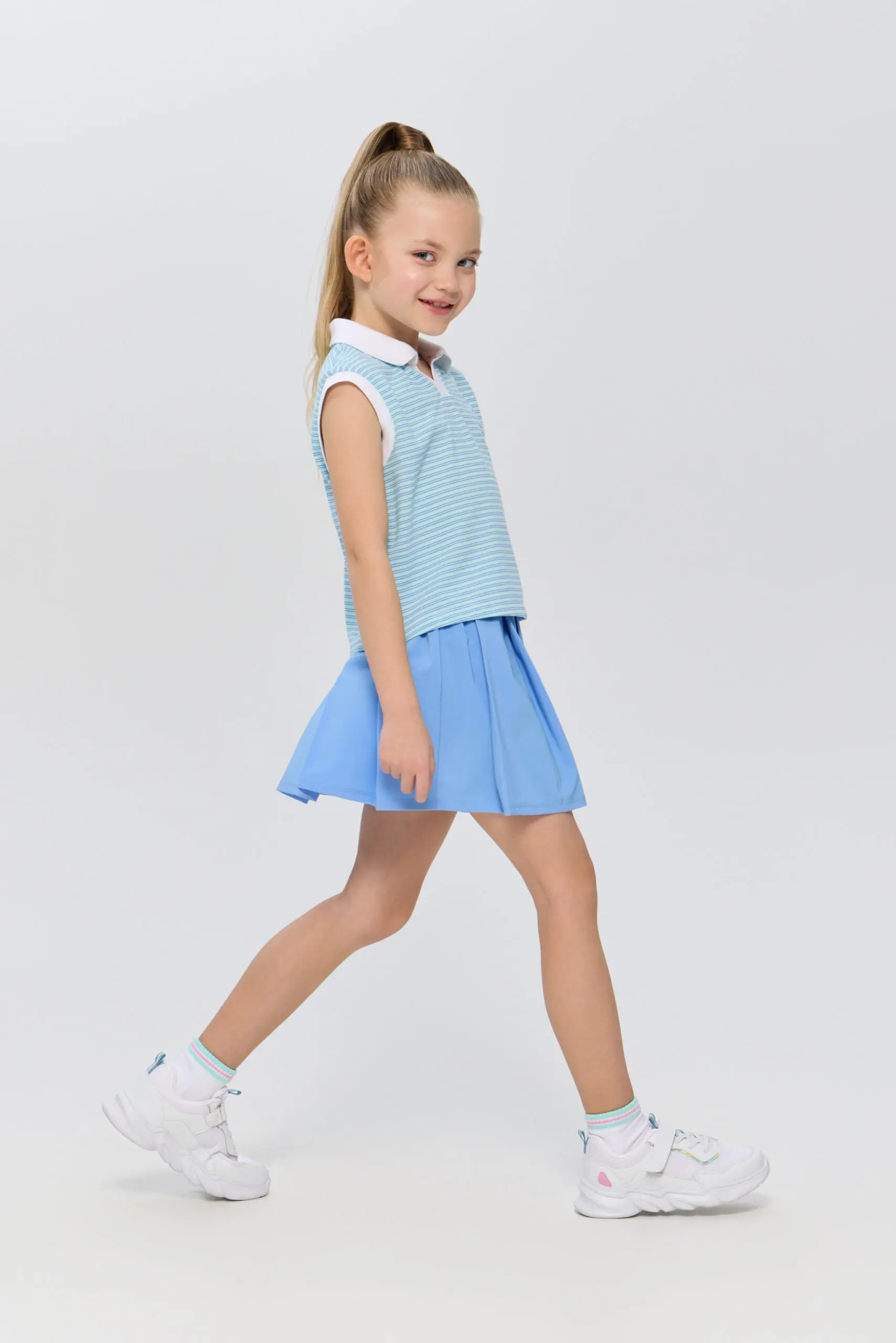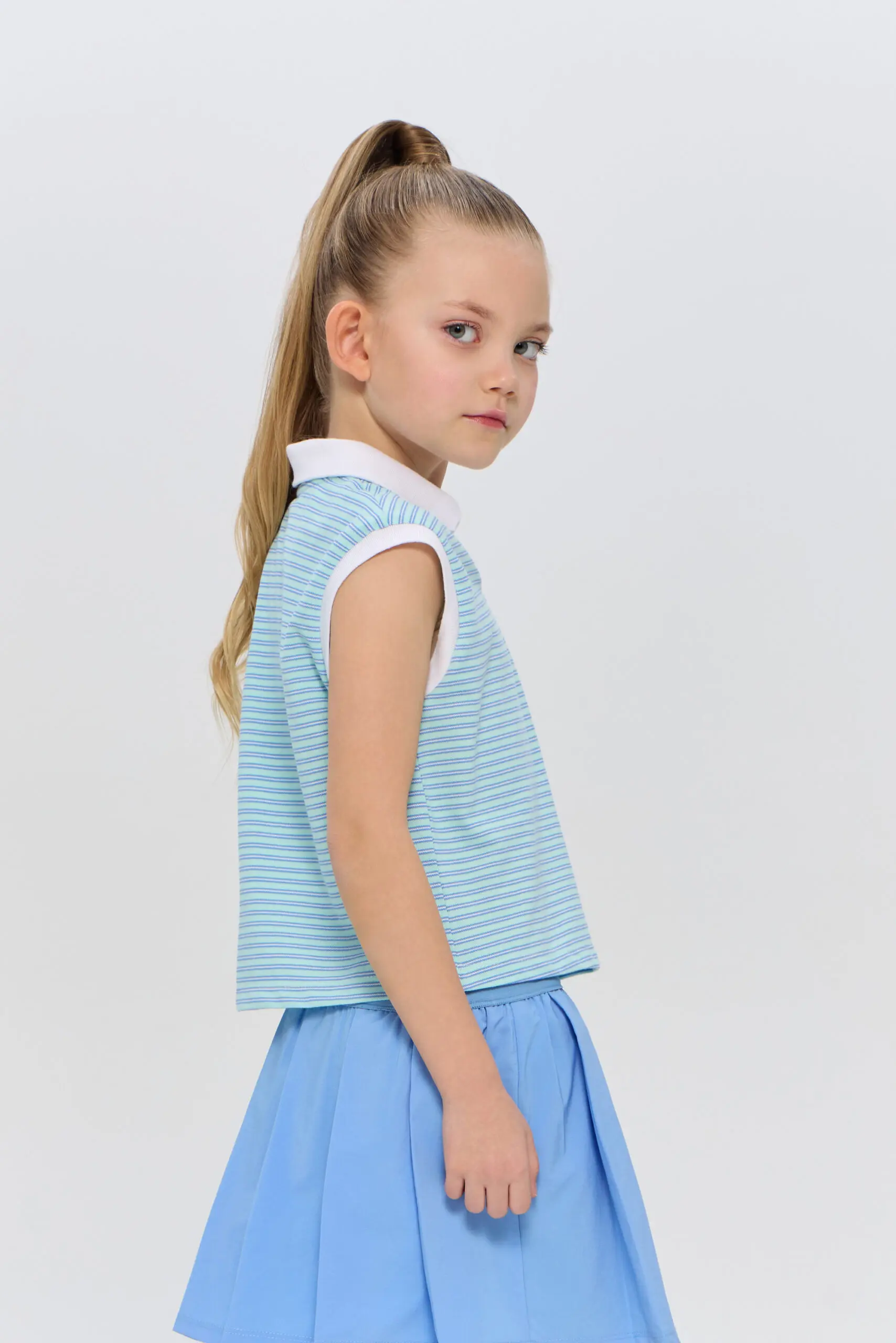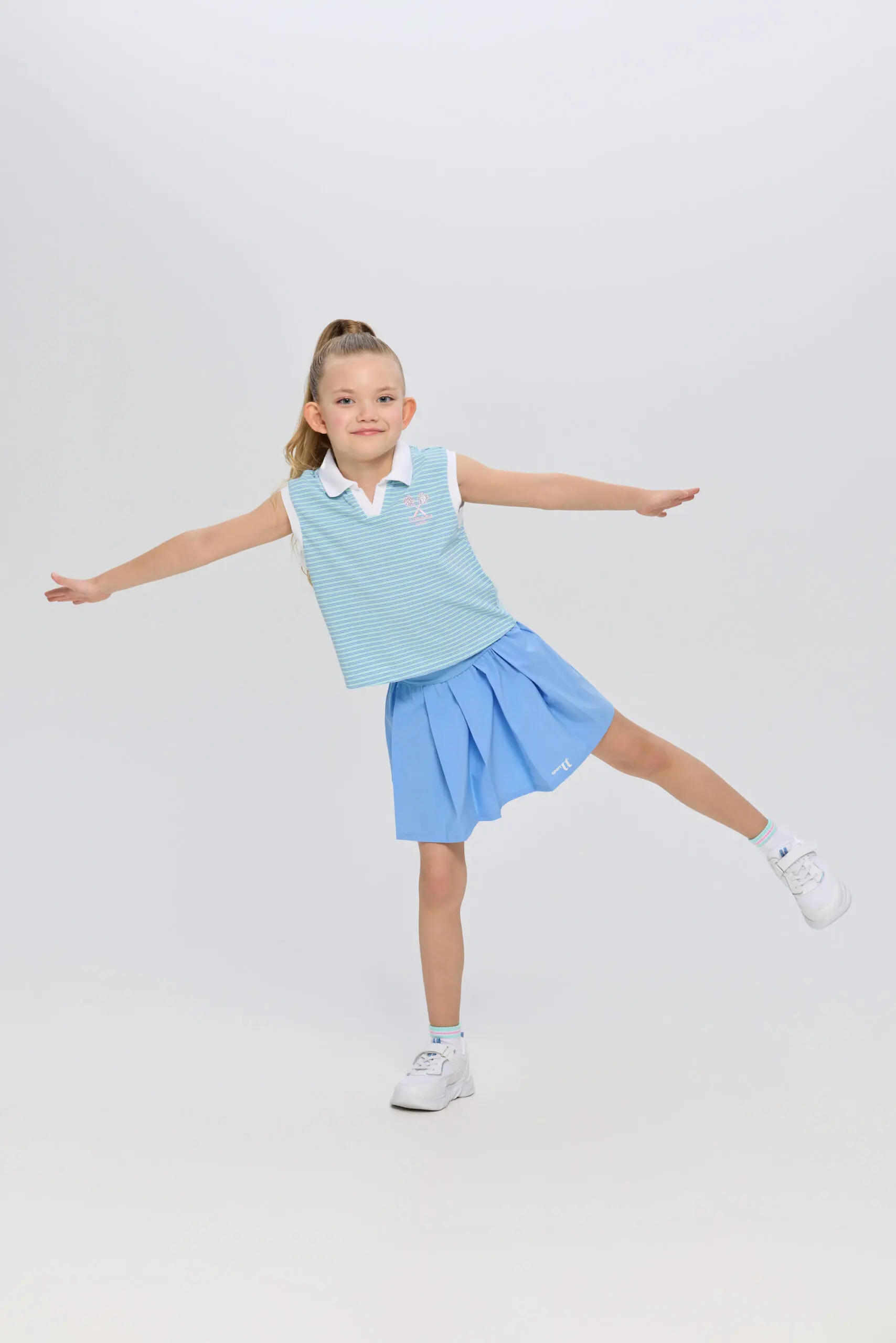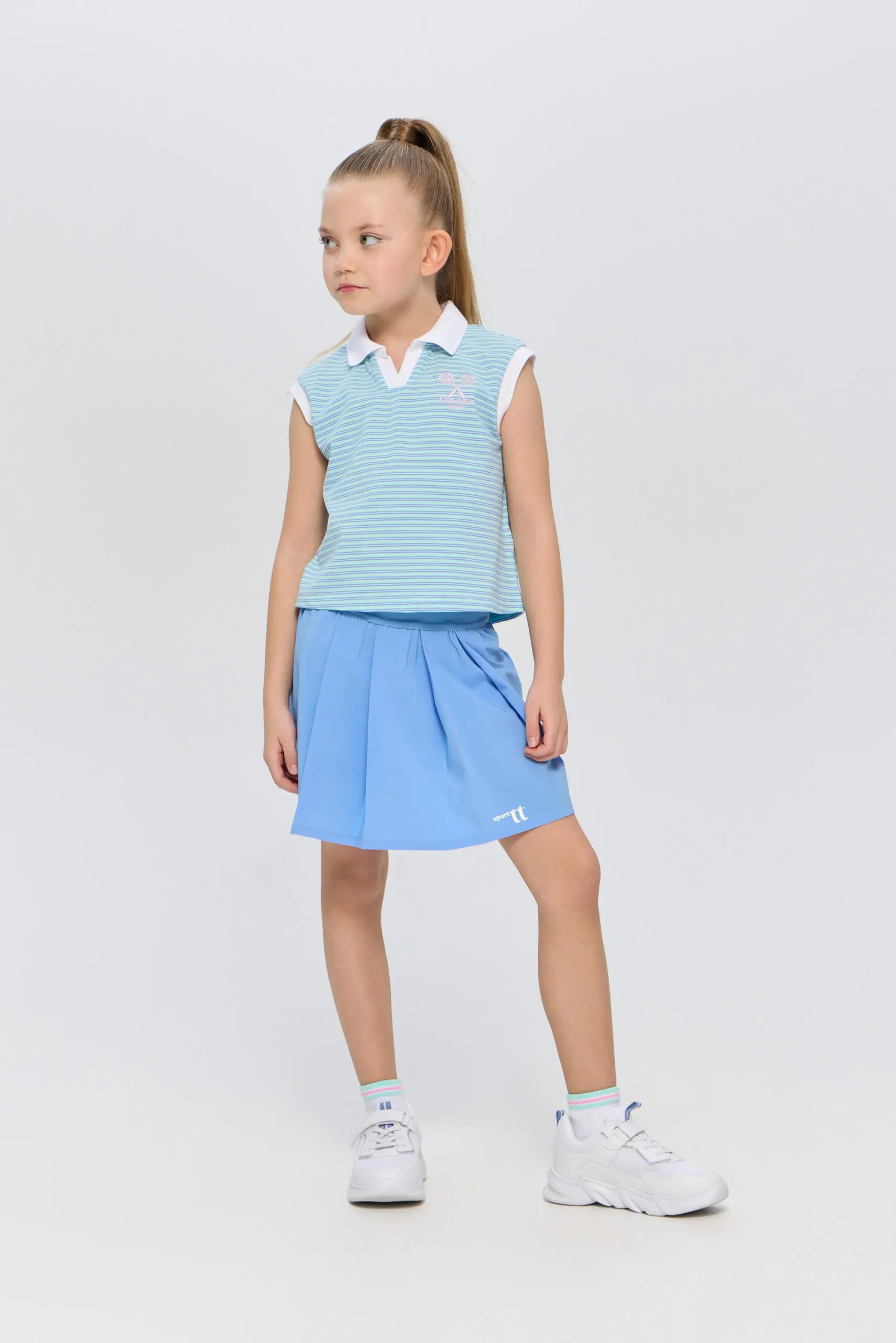 Футболка-поло для девочек без рукавов подходит как для игры в теннис, так и для создания стильных городских комплектов. Это идеальный выбор для активных детей, которые увлекаются ... спортом и ценят комфорт. Модель изготовлена из легкого и дышащего материала на основе хлопка, гарантирующего хорошую циркуляцию воздуха, что особенно важно во время активных игр на корте. Футболка декорирована контрастным воротником-поло и дизайнерской вышивкой в виде ракеток.