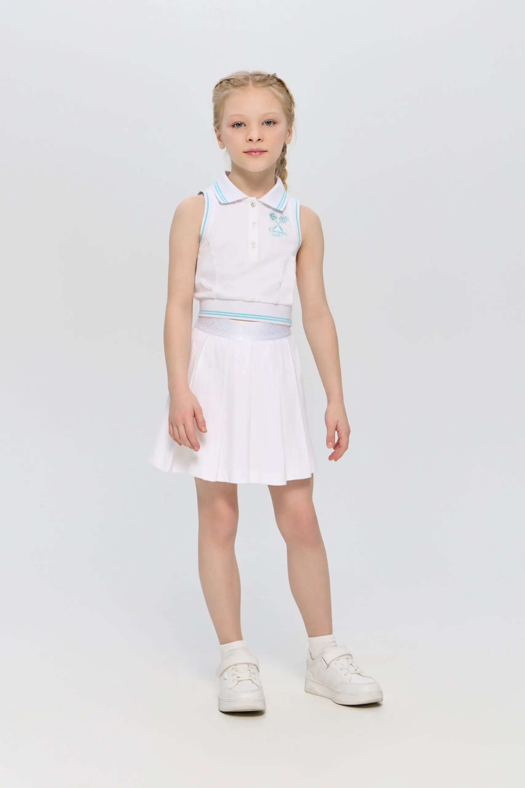 Футболка-поло белого цвета идеально подходит для занятий теннисом. Изготовленная из высококачественного дышащего материала, она обеспечивает отличную вентиляцию, что позволяет сохранять комфорт даже во время активных тренировок. ... Модель украшена стильной вышивкой в виде ракеток, который подчеркивает ее спортивный характер. Футболка-поло имеет классический крой с короткими рукавами и воротником с пуговицами обеспечивая удобство и легкость в носке.