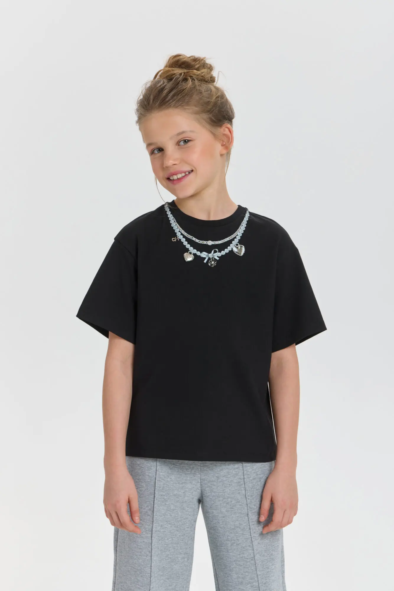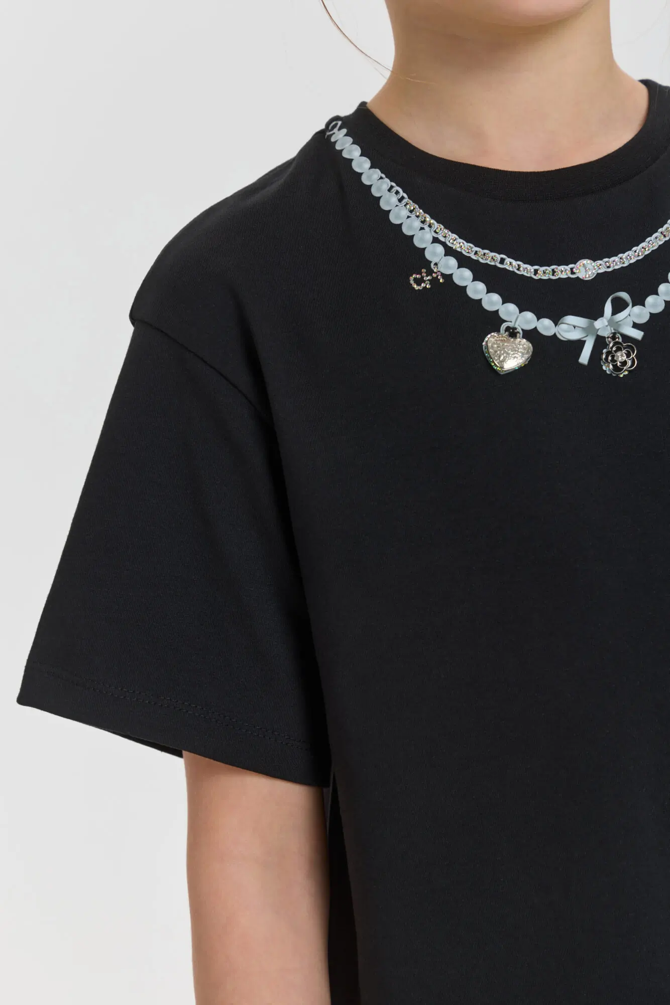 Футболка с декором - стильная и современная модель, превосходно подходящая для формирования запоминающихся луков. Отличительной чертой данной модели является декор, имитирующий колье, который привносит дополнительную выразительность ... в наряд. Эта футболка станет прекрасным выбором для вечерних мероприятий, праздничных событий или ежедневной носки.