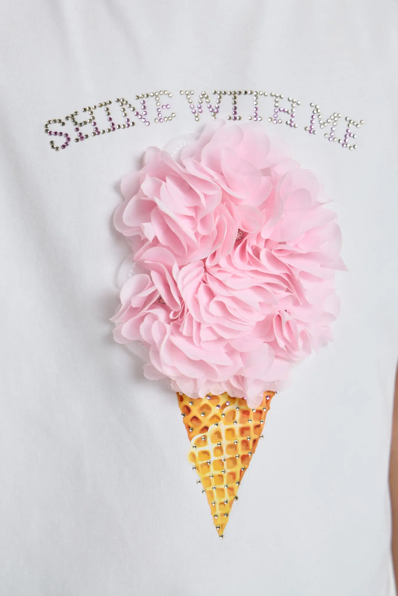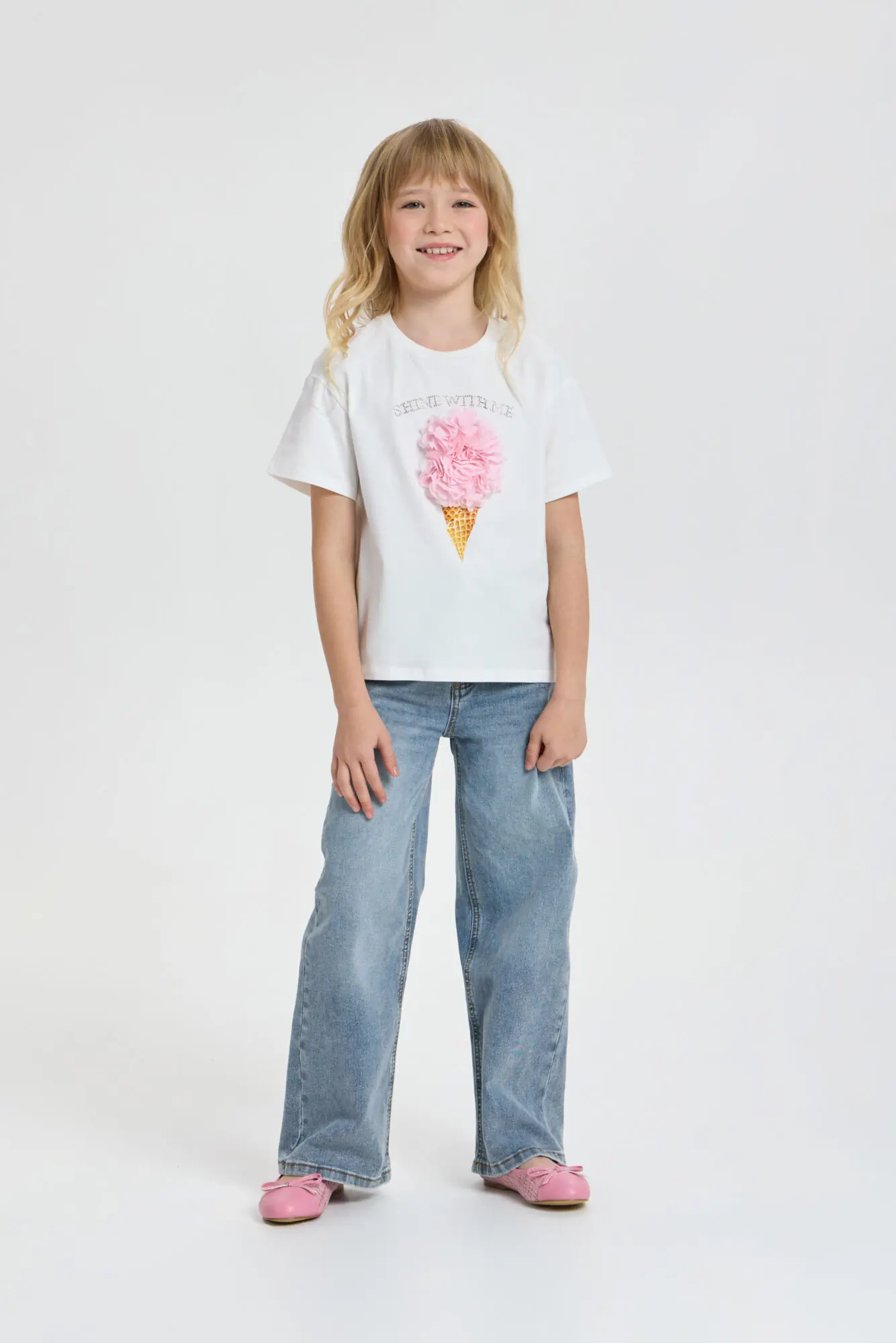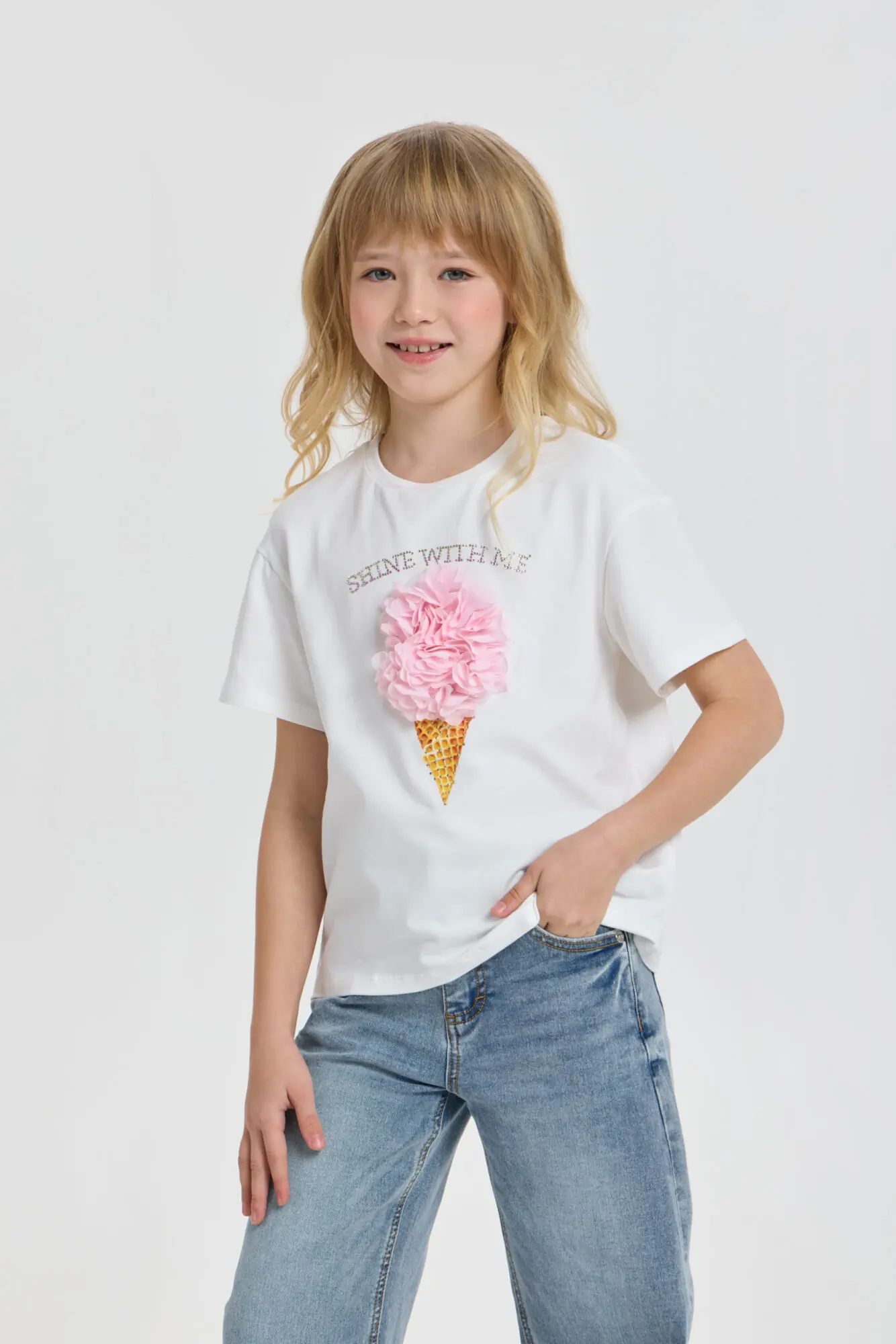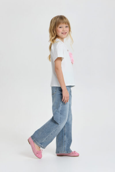 Для летнего образа юной леди отличным вариантом станет футболка с принтом. Нарядная модель свободного силуэта с короткими рукавами не только практичная, но и очень модная. Оригинальный ... принт, дополненный 3D декором, придает изделию неповторимость и особый шарм. Футболка легко сочетается с разной одеждой: идеально смотрится с джинсами, шортами или юбками, позволяя создавать разнообразные красочные ансамбли для прогулок и отдыха. Мягкий и воздушный хлопковый материал обеспечивает удобство даже в жаркую погоду.
