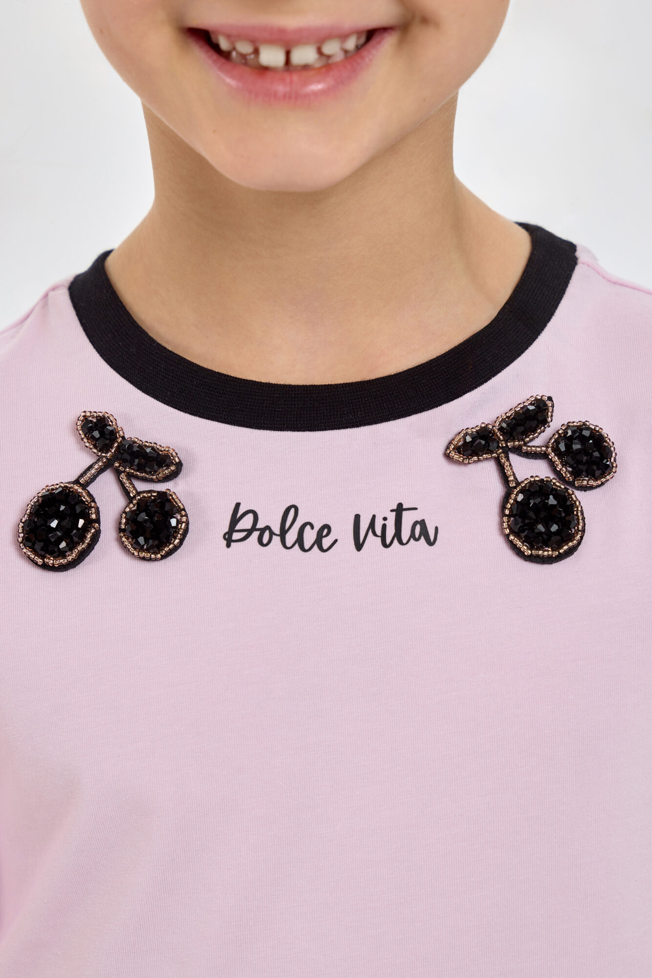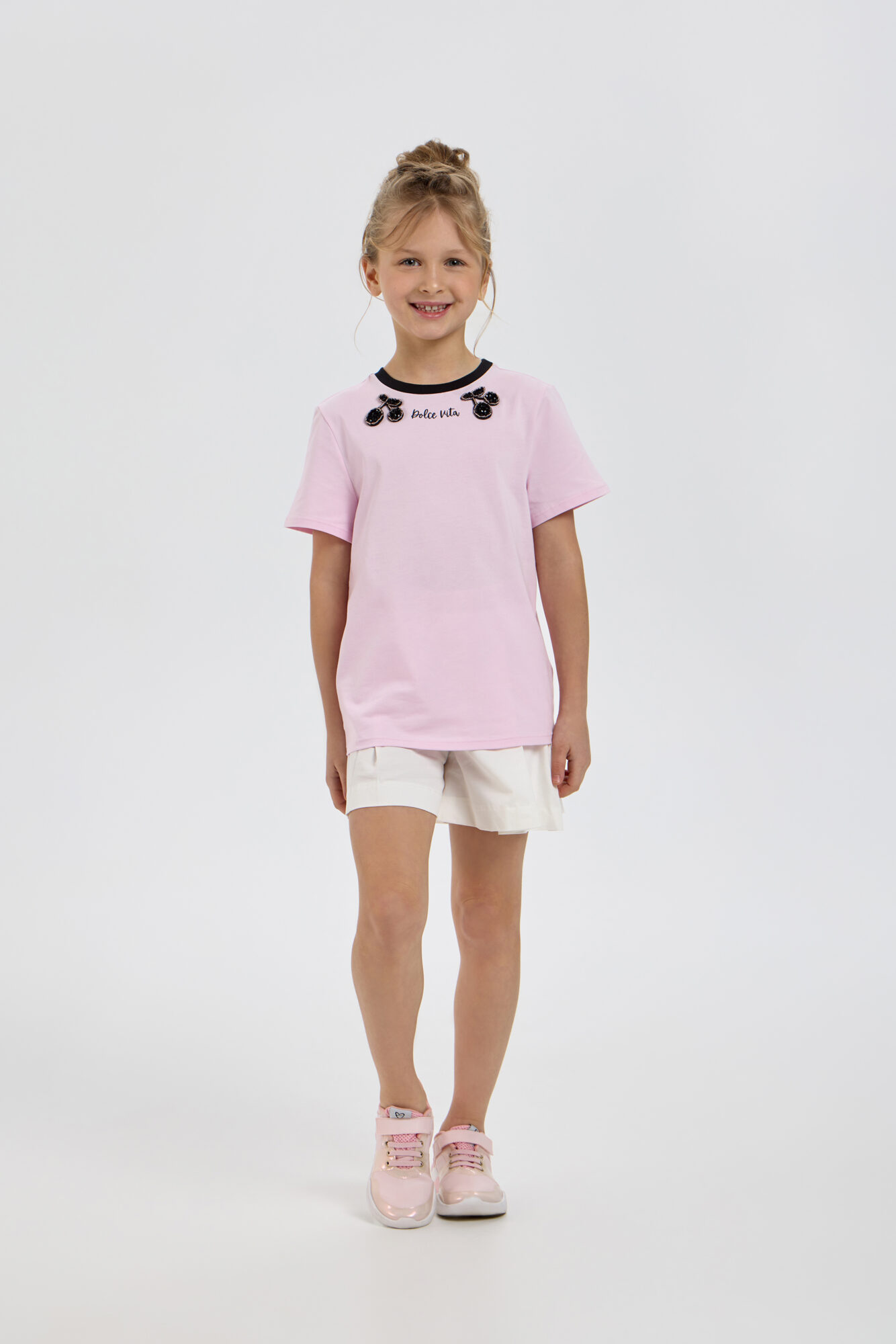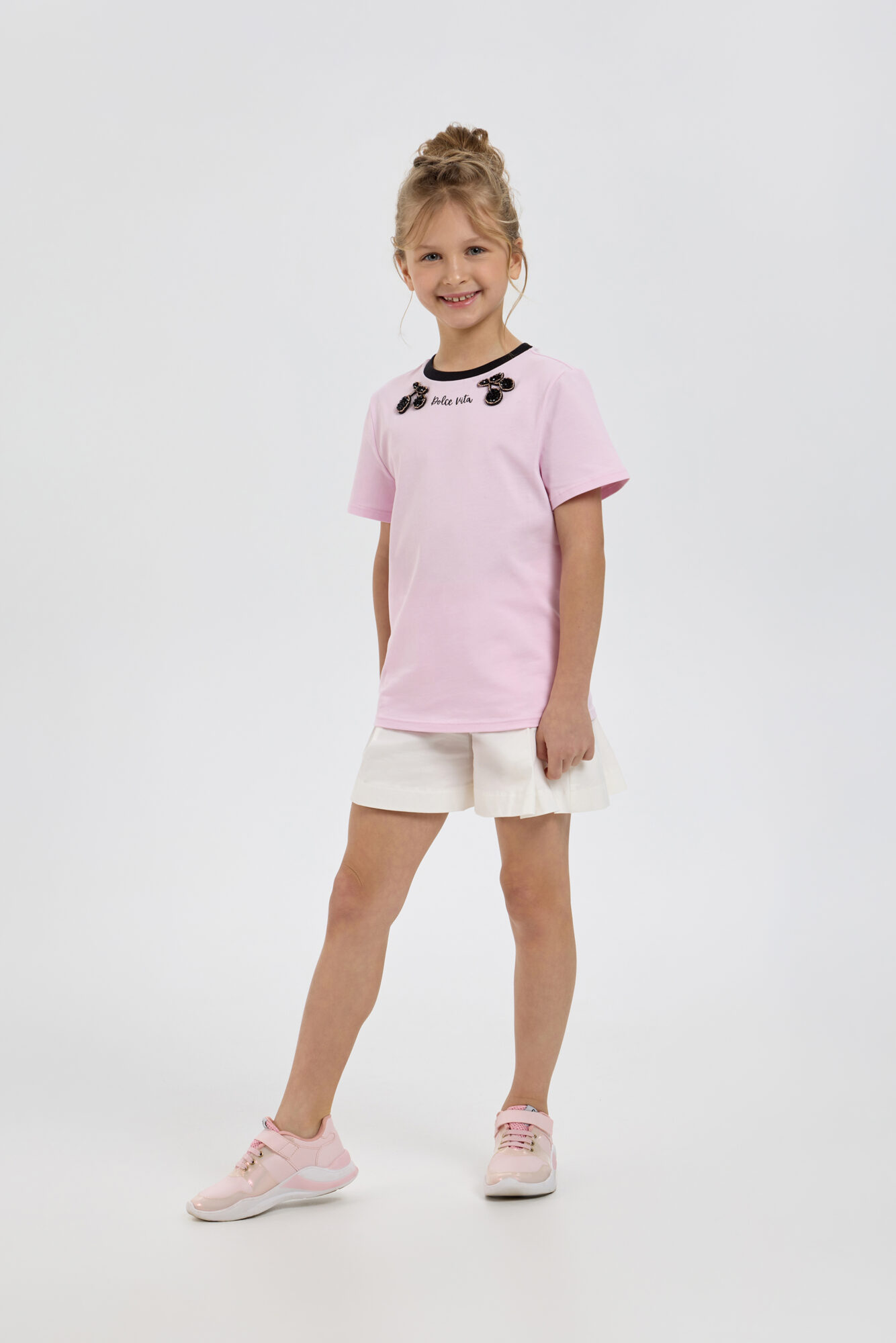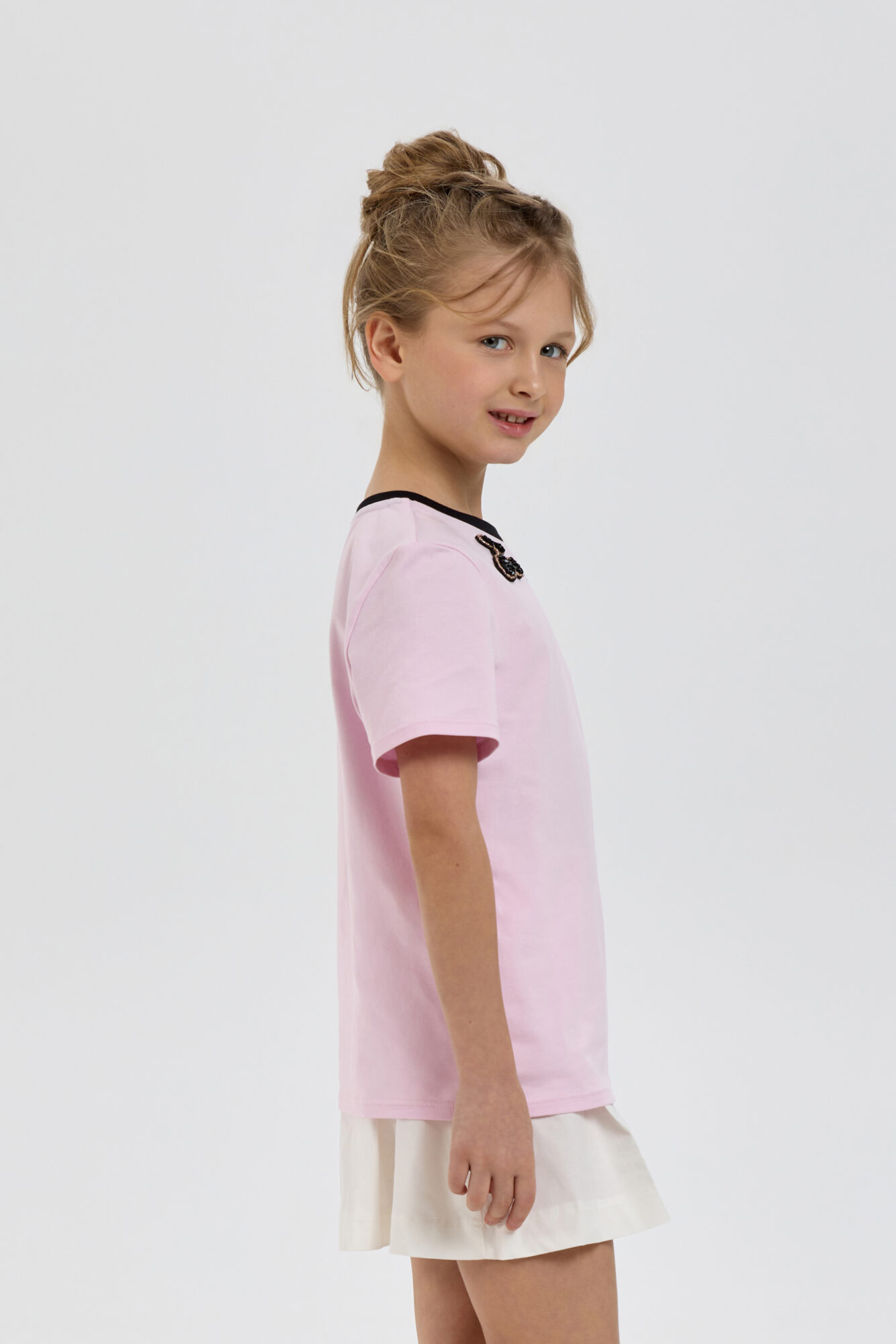 Нежная футболка розового оттенка с декоративными деталями станет стильным и эффектным выбором для различных событий. Она выполнена из мягкой хлопковой ткани, приятной к телу, что гарантирует ... удобство в течение всего дня и не сковывает движений. Модель отличается прямым силуэтом и короткими рукавами. Яркие акценты создаются за счет контрастной окантовки по горловине и оригинального дизайнерского декора. Данная вещь идеальна для повседневной носки и для особых случаев. Ее легко сочетать с юбками, шортами, брюками или джинсами. Создавайте с ней каждый раз незабываемые и выразительные образы.