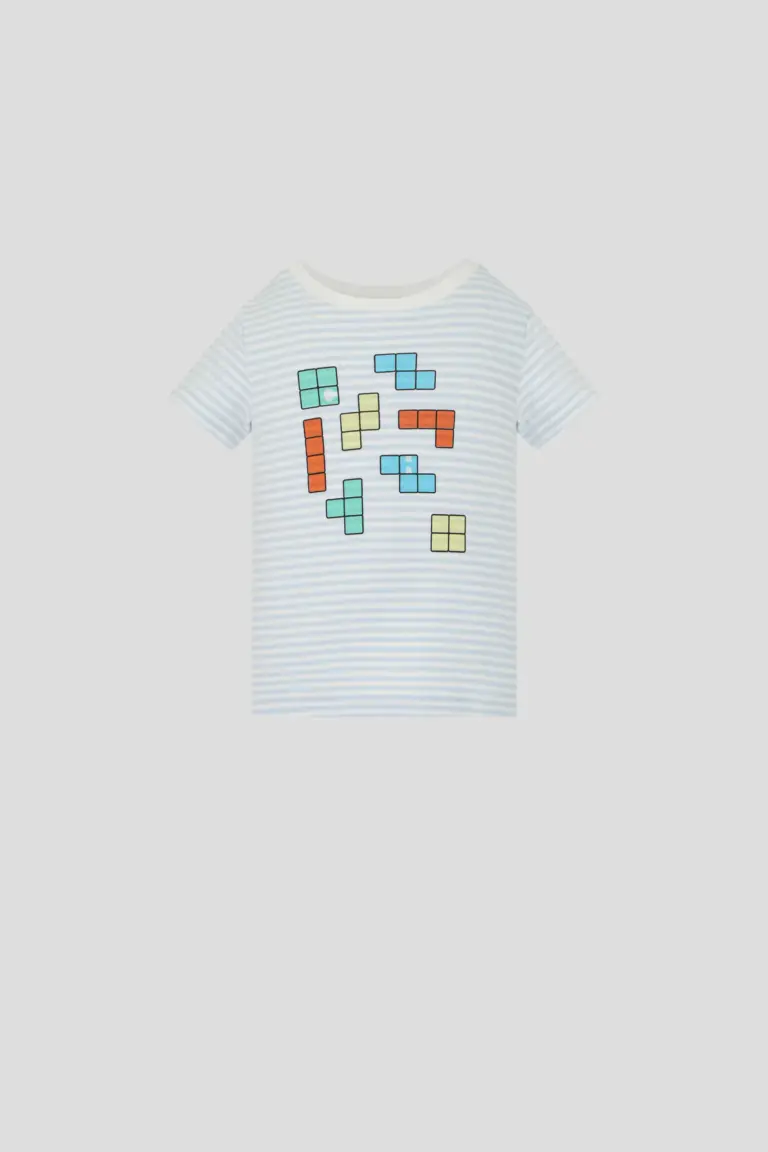 Футболка – базовая вещь в детском гардеробе любого мальчика. Оригинальный принт в виде tetris делает ее интереснее и выделяет среди прочих. Застежка с кнопками на плечевом ... шве позволяет легко переодеть ребенка. Это очень удобно, особенно для самых маленьких, так как позволяет быстро и без проблем снять или надеть футболку. Мягкий, дышащий материал из хлопка обеспечивает комфорт и не раздражает чувствительную детскую кожу.