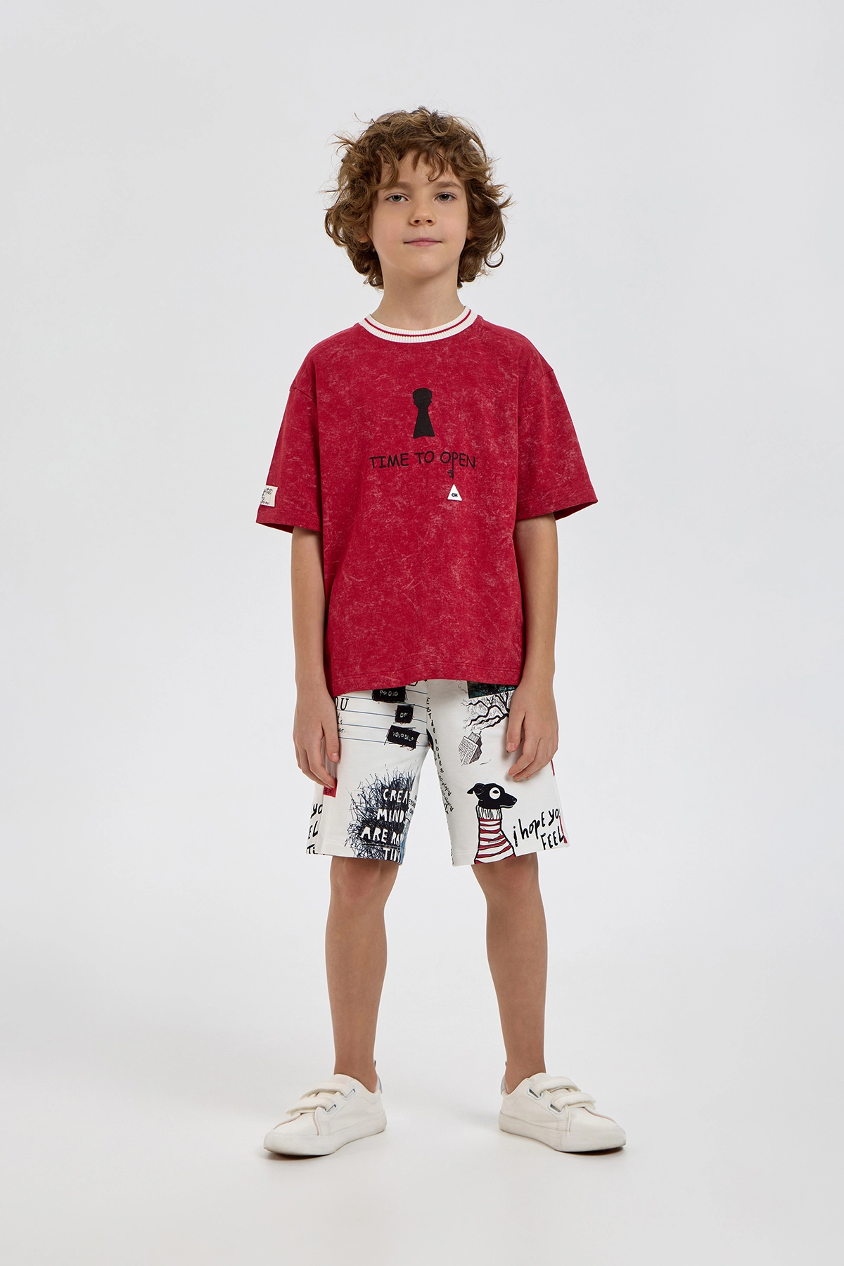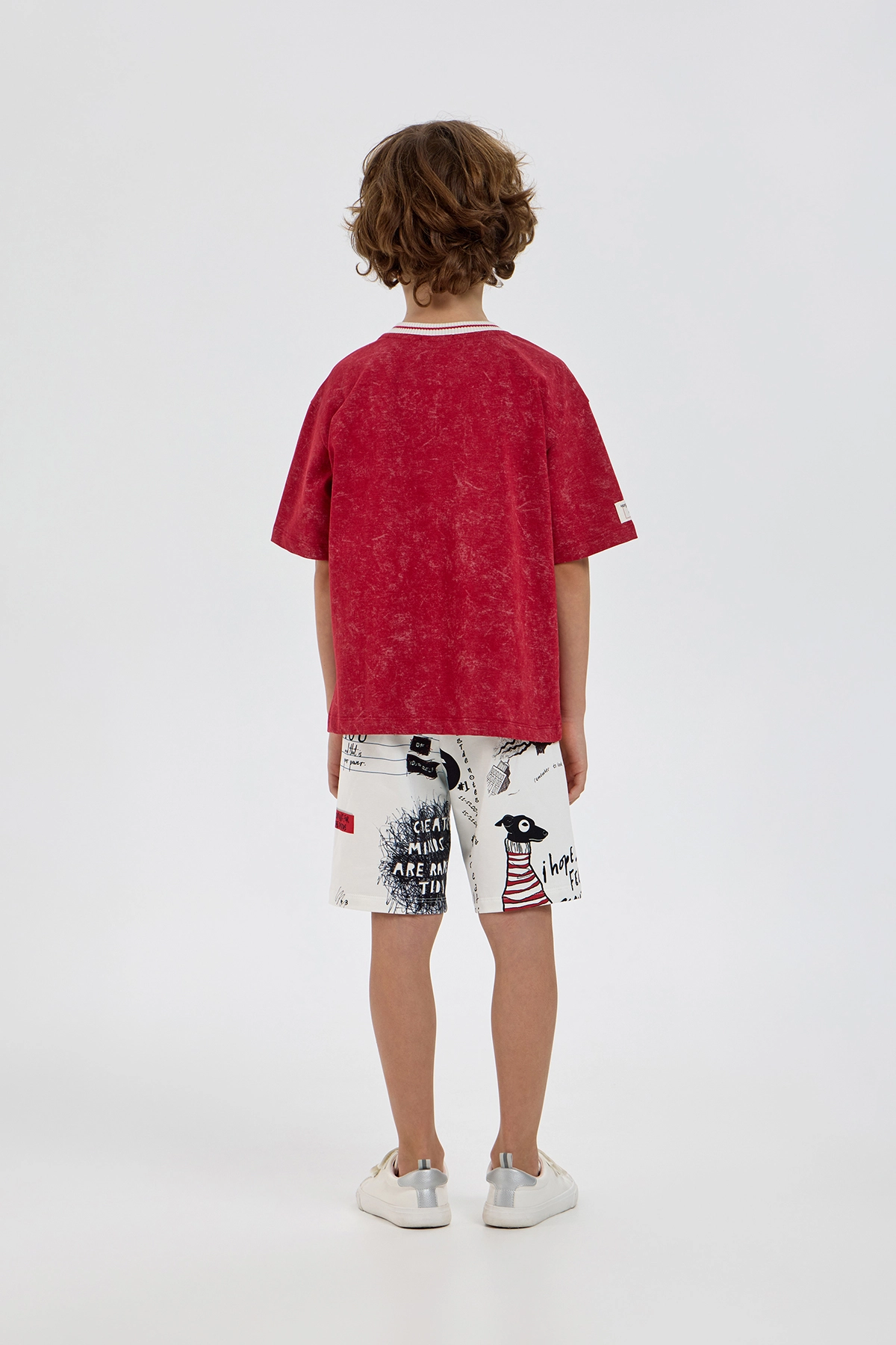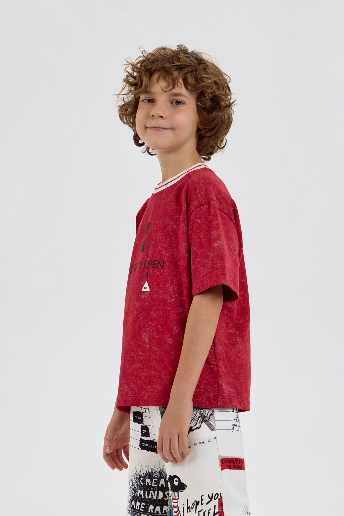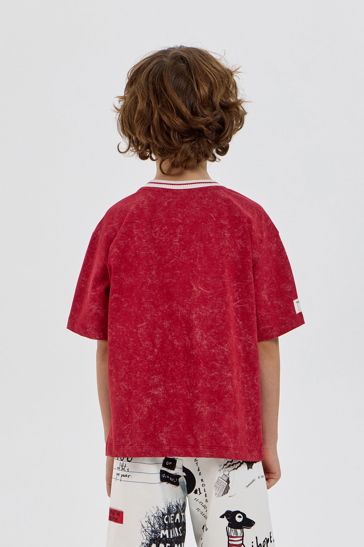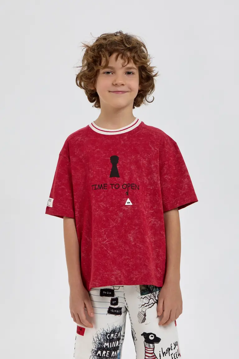 Яркая футболка с эффектом варки непременно займет ключевое место в гардеробе мальчика. Стильная модель изготовлена из приятного к телу хлопкового трикотажа, который обеспечивает отличную воздухопроницаемость. Свободный ... крой, горловина с контрастным подвязом и короткие рукава с опущенной линией плеча создают комфортную посадку. Изделие украшено оригинальными дизайнерскими элементами. Футболка отлично сочетается с брюками, джинсами или шортами любого фасона.